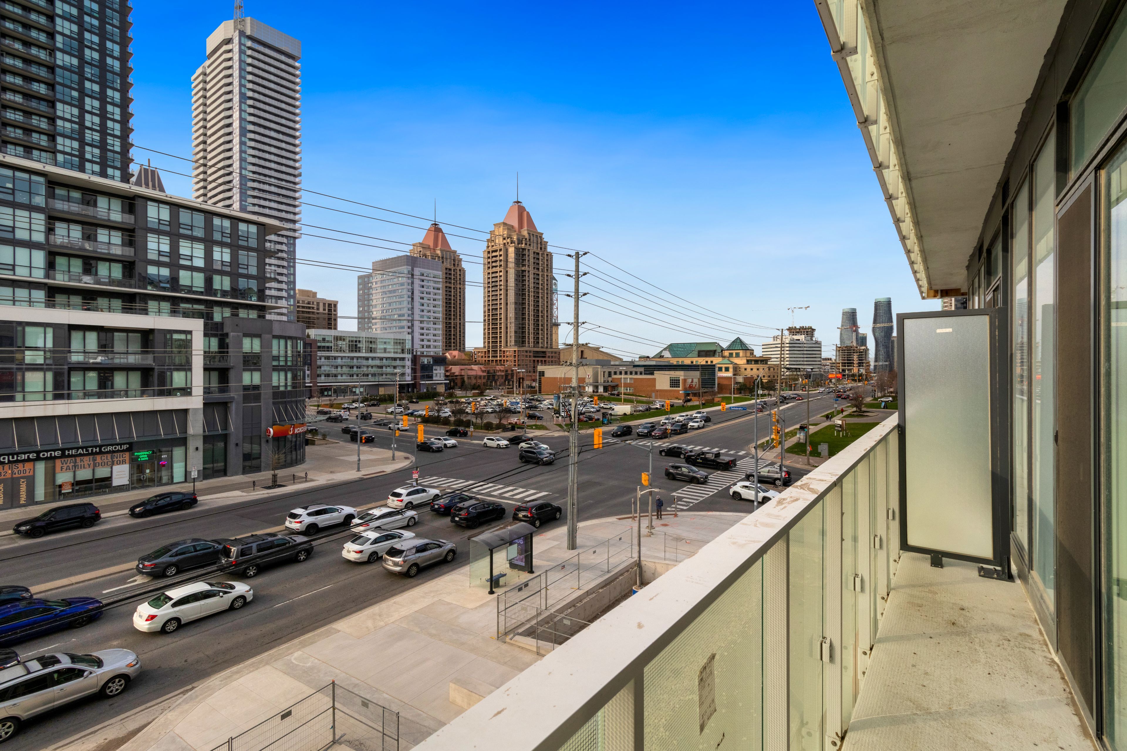 Bright 2-bedroom + den, 2 full bath suite featuring high ceilings, laminate flooring, and a modern kitchen with stainless steel appliances. Enjoy a large northwest-facing balcony (314 sq ft). Prime location in the heart of square one with easy access to hwy 403 & qew, steps to shopping, sheridan college, central library, ymca & more. Luxury building amenities include outdoor saltwater pool, rooftop terrace, skating rink, steam room, yoga studio, gym, games room, 24-hour security, smart technology & hotel-style lobby.