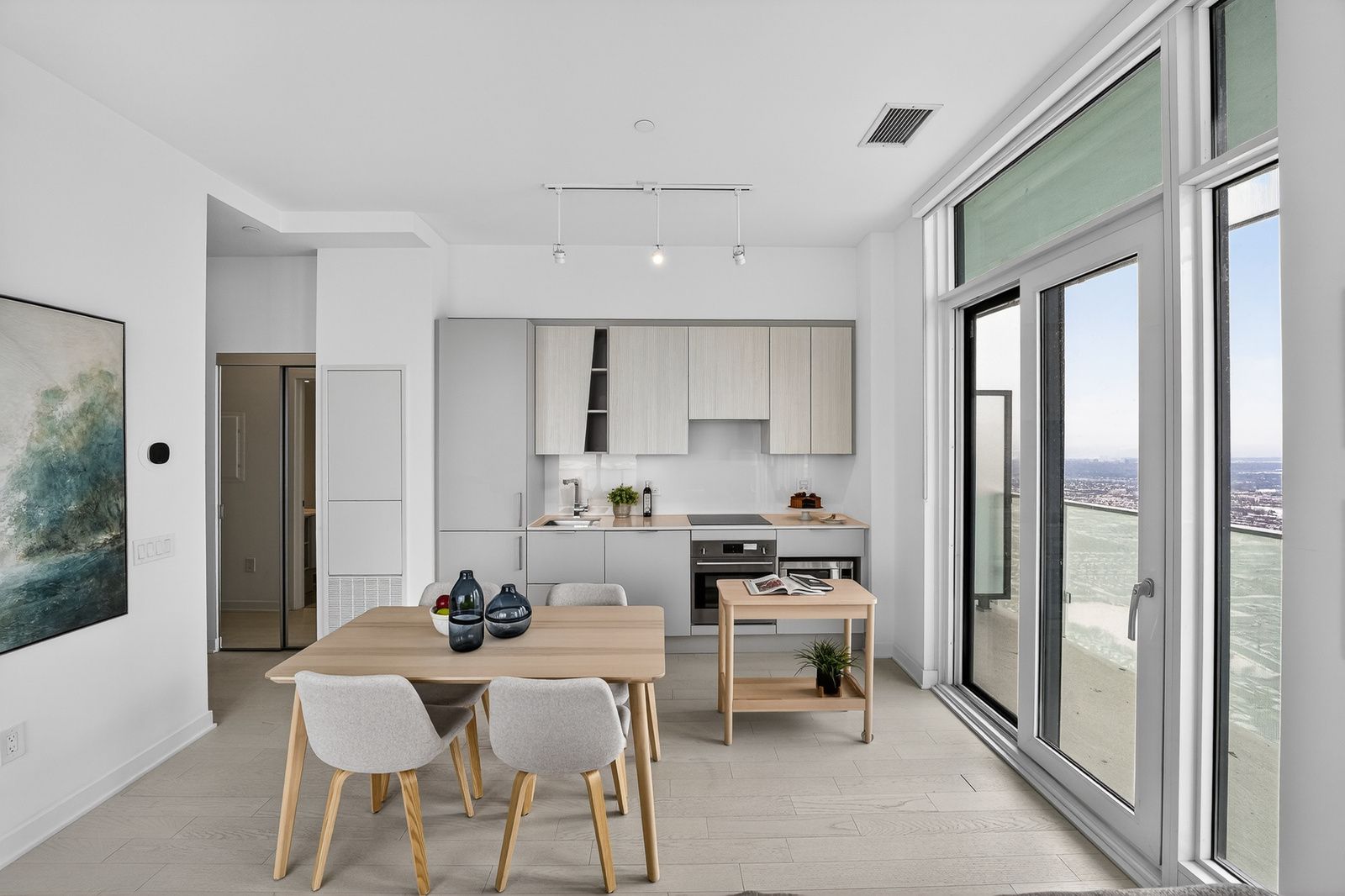 This contemporary 2-storey 2bed+media/2. 5 bath penthouse is located in the award-winning luxurious residence of m city 1. Elegant kitchen with built-in appliances. Quartz countertops in the kitchen and bathrooms. The bright living room area flows seamlessly into the expansive private wrap around balcony with a lake ontario and city center mississauga view. The primary bedroom includes a large walk-in closet and a 3pc ensuite. Enjoy world-class amenities including a state-of-the-art fitness center, outdoor pool, party rooms, indoor/outdoor playgrounds for kids, saunas, sports bar, rooftop terrace with bbq and dining area and much more. Located in the heart of mississauga, steps away from square one, dining, entertainment and public transit. Close to sheridan college and utm. Easy access to major highways. Parking is included. Locker is available for purchase. Don't miss this opportunity to make this luxury suite your new home. Parking maintenance fees is included in the maintenance fee.