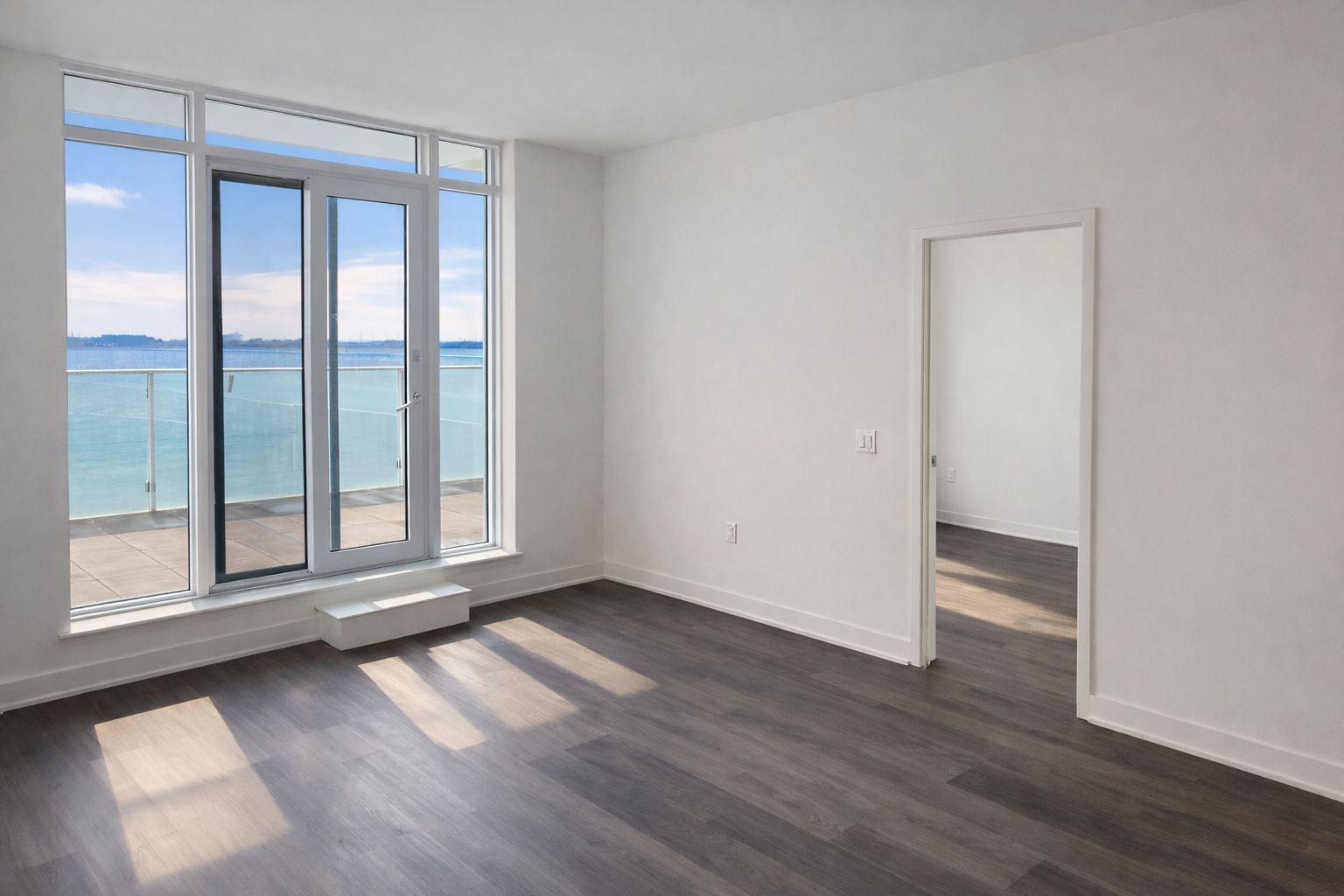 • Private terrace offers beautiful views of the lake and pool.