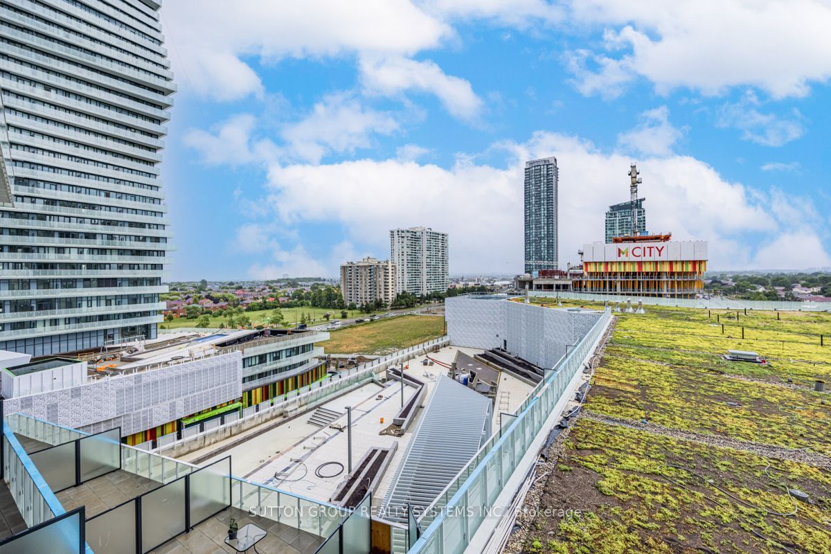 Sunfield - west exposure! Modern & elegant 1 bed + den, 1 bath at m city 1 by rogers development. Located in the heart of central mississauga, just steps from square one, this suite features floor-to-ceiling windows with stunning west-facing views and an open-concept layout with modern, elegant finishes throughout. The contemporary kitchen is equipped with high-end built-in appliances. The spacious primary bedroom includes a mirrored closet and access to a 4-piece bath. The large den can serve as a second bedroom or home office. Enjoy premium building amenities: 24-hour concierge, fully equipped fitness centre with cardio and weight machines, spinning and yoga studios, outdoor saltwater pool with shallow deck, skating rink, bbq stations, and more. Prime location with easy access to major highways (401, 403, 407, 410 & qew), the future hurontario lrt, sheridan college, celebration square, and the central library. Very clean unit!