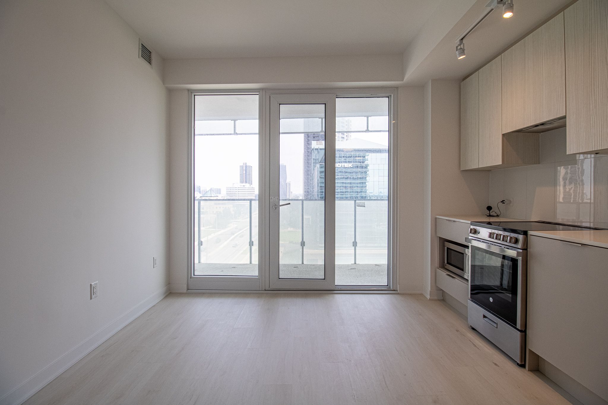 • Bright corner suite with large wrap-around balcony offering city views.