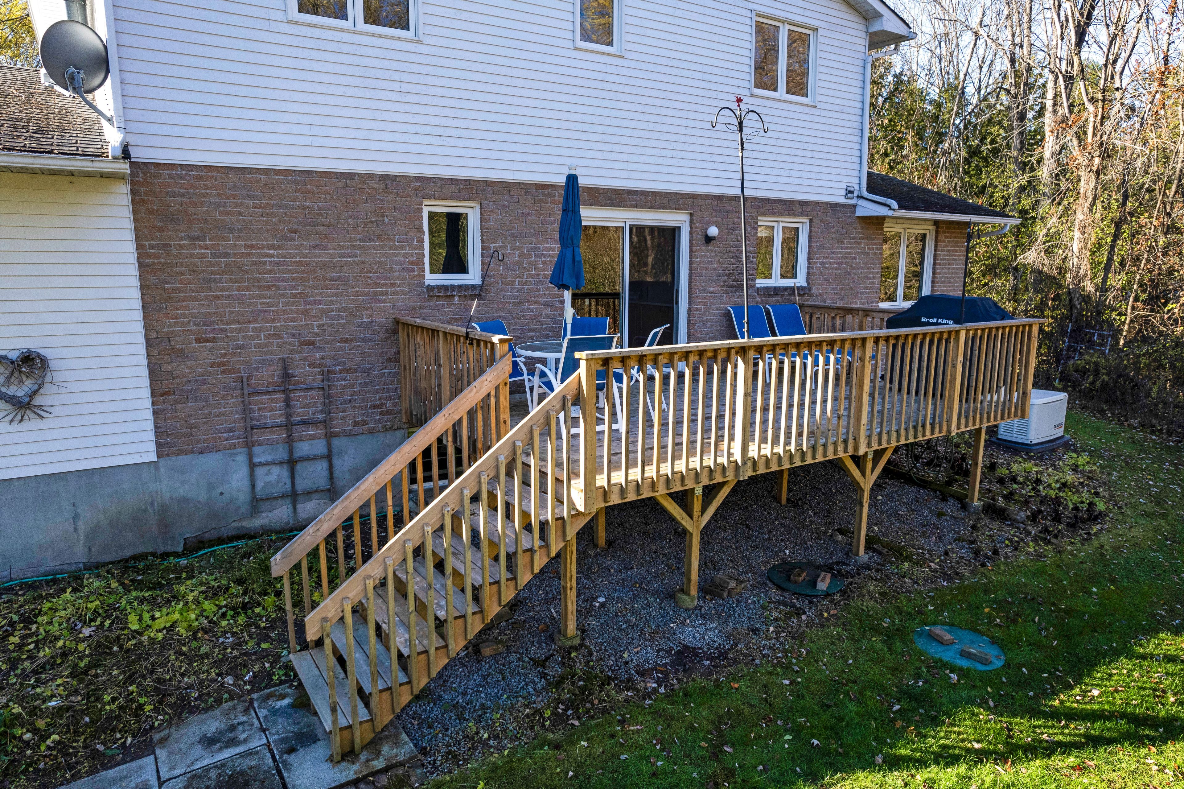 • Large kitchen with quartz countertops and new deck for outdoor dining.