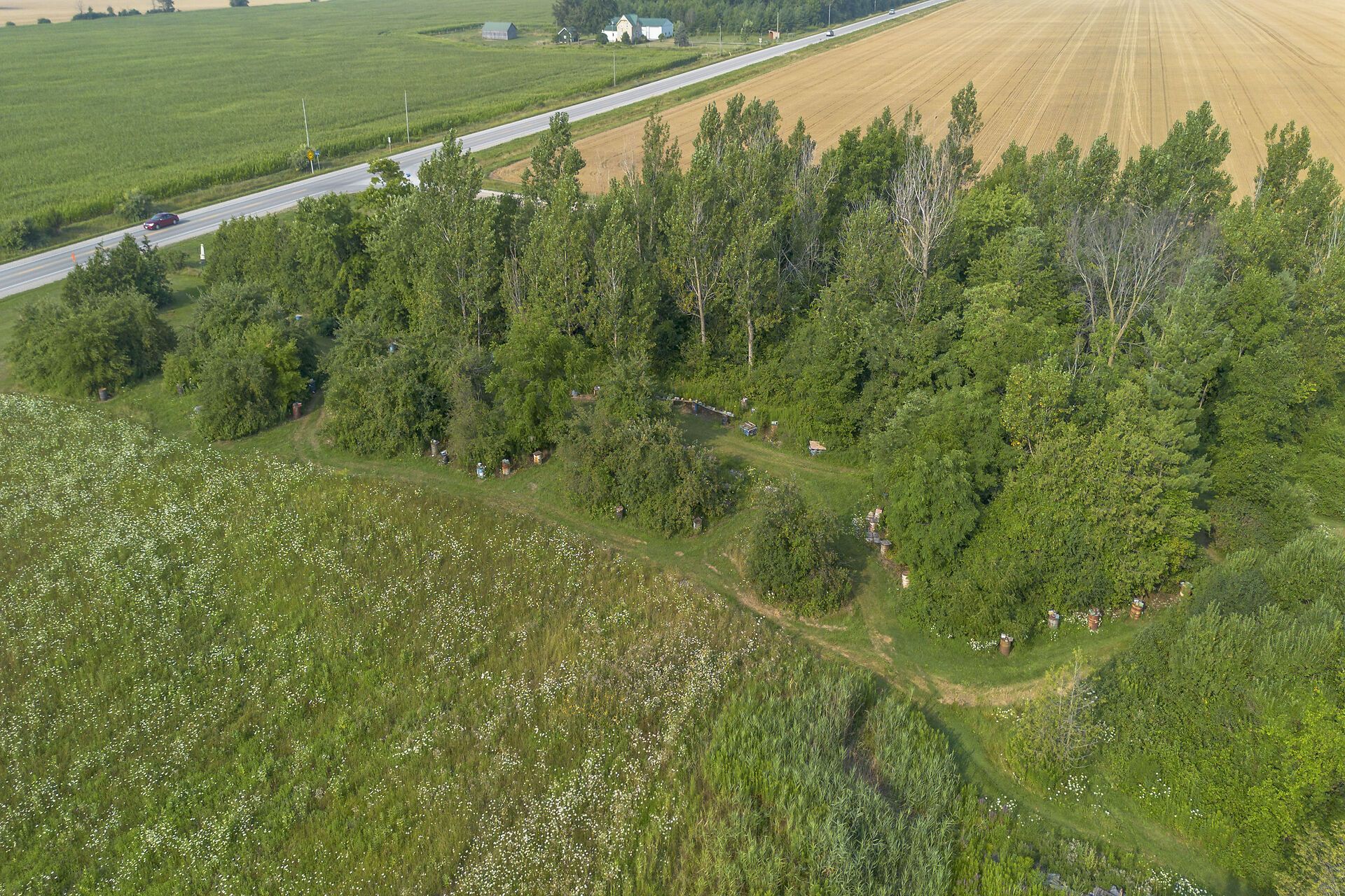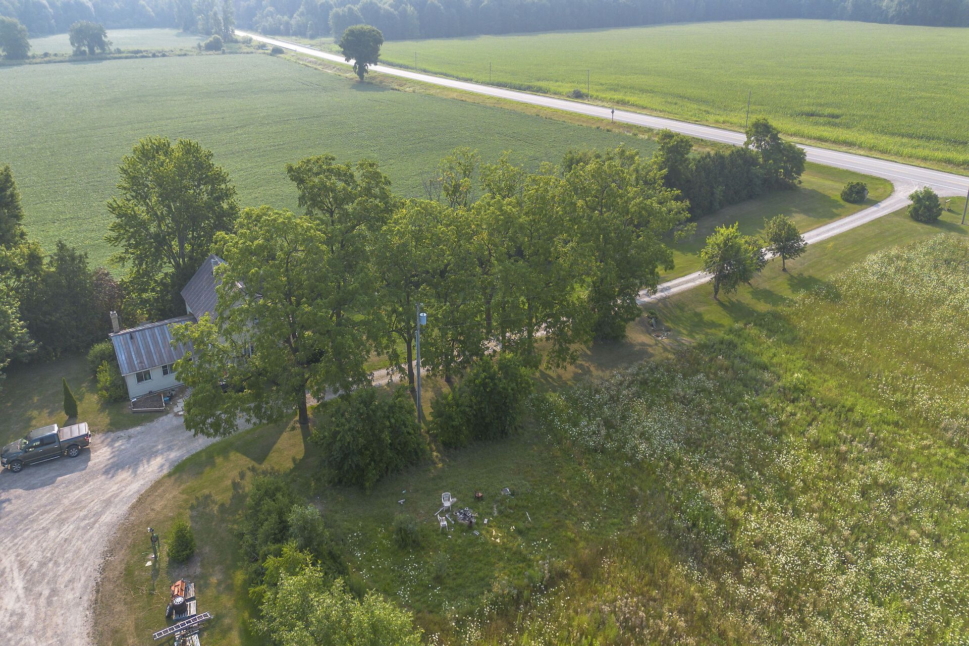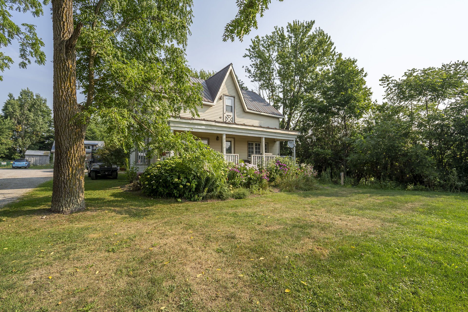 • 3 bedroom farmhouse accompanied by large cedars and mature trees.