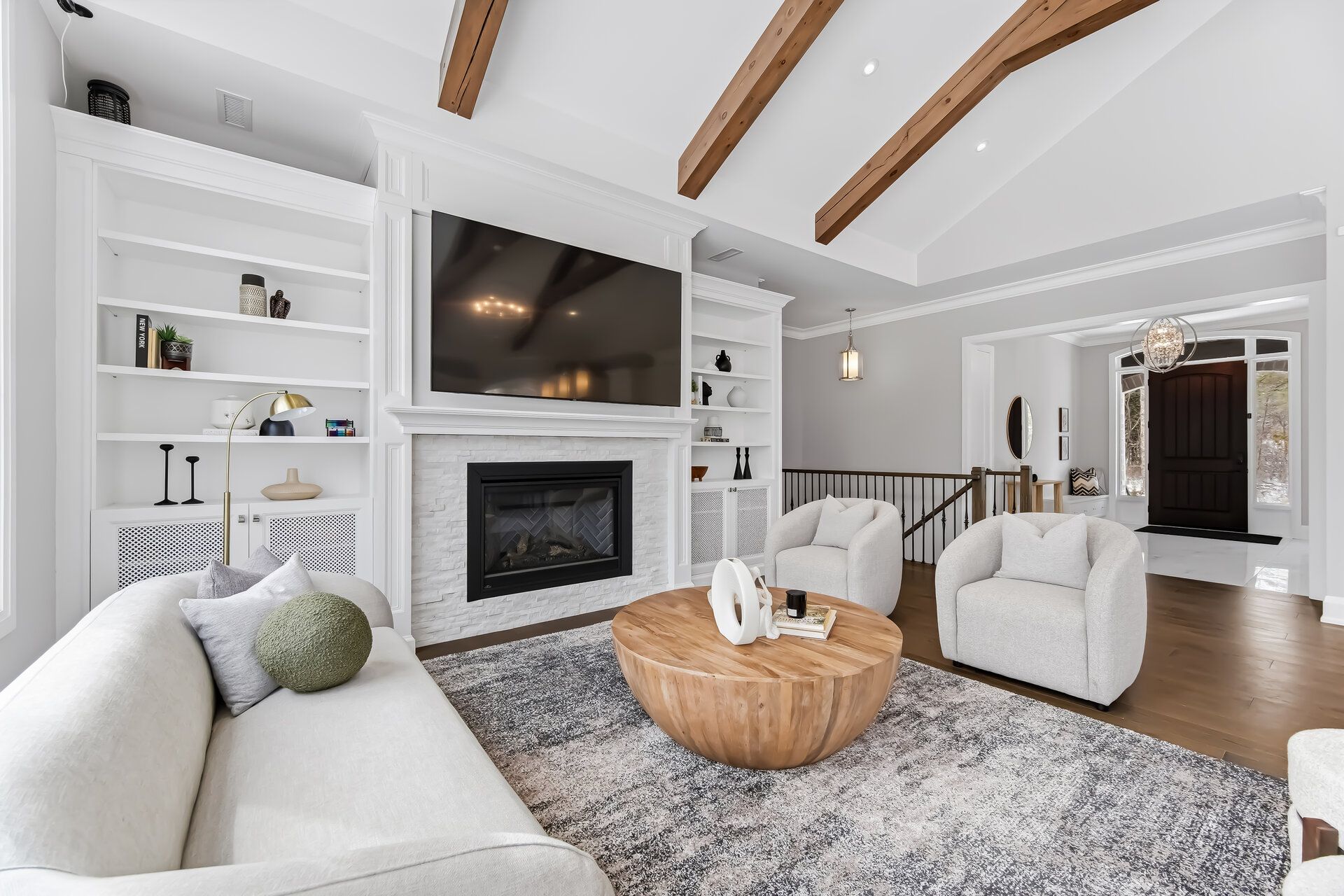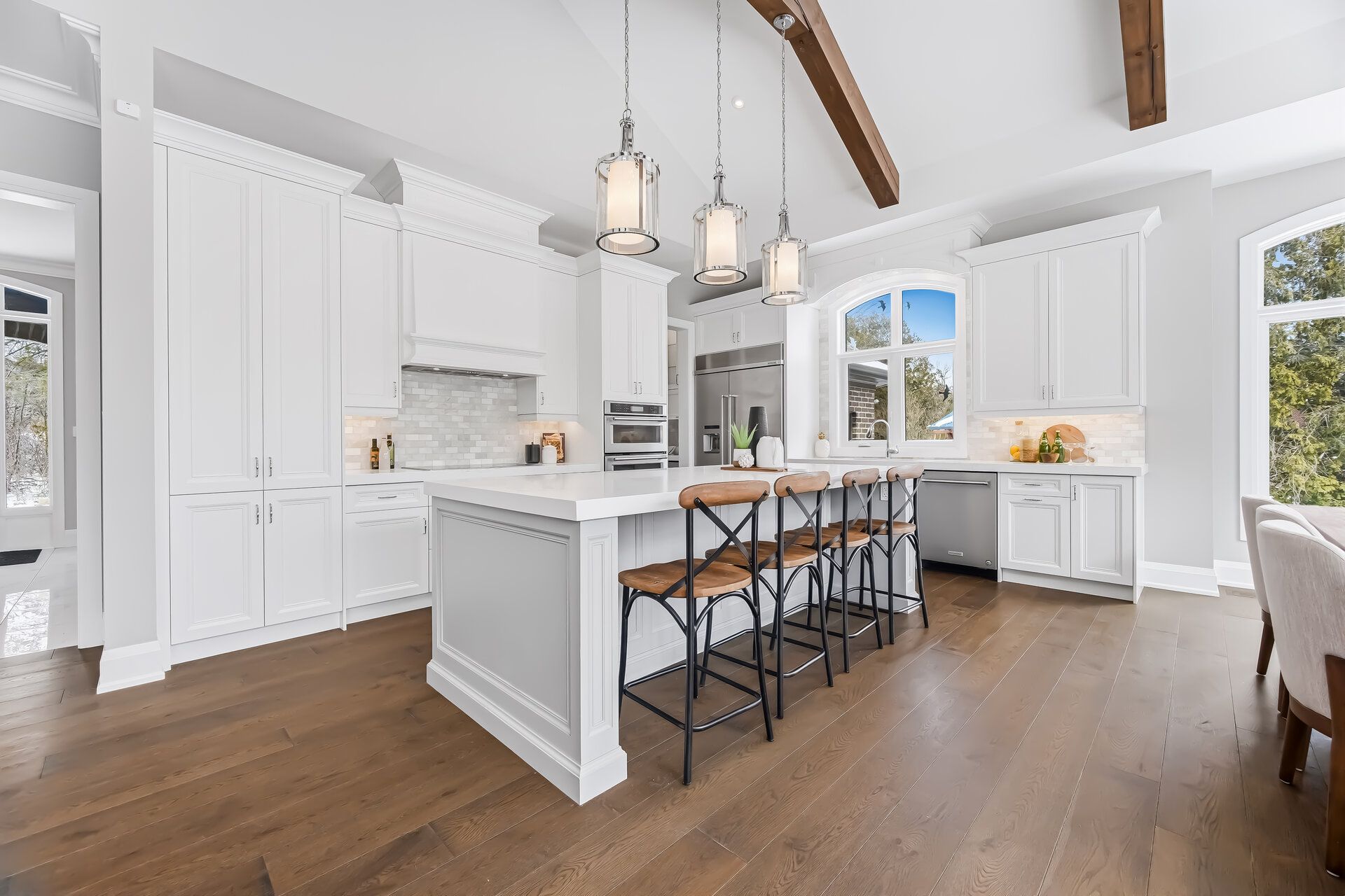 Custom-built 5 year old luxury bungalow * rare 2 acre lot * 4+1 bedrooms * 5 baths * 3 car garage with total 19 parking spaces * heated 6'8" deep 15 x 40 ft. Fenced fibreglass pool with integrated hot tub and splash pad * 17'6" cathedral ceiling in open area and 10 ft. Ceilings in other areas on main floor * 9 ft. Coffered ceiling in basement * crown moulding * hardwood floors on main * living room with gas fireplace & built-in book shelves * modern kitchen with quartz counters, butler's and built-in pantry, induction stove & warming drawer * custom cabinets thru-out * spacious primary bedroom with spa-inspired 7 pc ensuite featuring steam shower & his & hers closets * built-in closets in bedrooms * skylight in laundry room * finished walk-out basement featuring family room with gas fireplace, home theatre with built-in wall & ceiling speakers, 150" projector screen & projector and sauna * oversized deck and covered porch with built-in seating * professionally landscaped yard (2023) with smart irrigation system (2024) & landscape lighting * leaf guard on eavestrough * playground, sandbox & fenced vegetable garden * stream at side of property * 22kw whole home propane generator * heat pump (2024) * new starlink high-speed internet * water filtration system with water softener, uv & reverse osmosis * tankless hot water system * 200 amp electrical panel * minutes to hwy 407