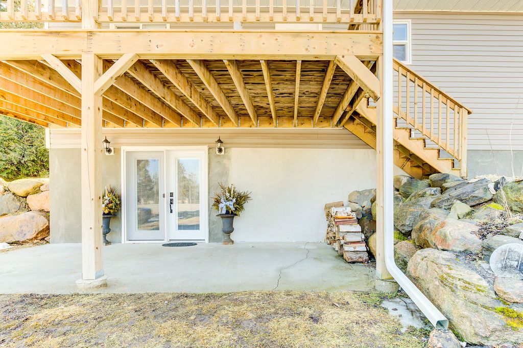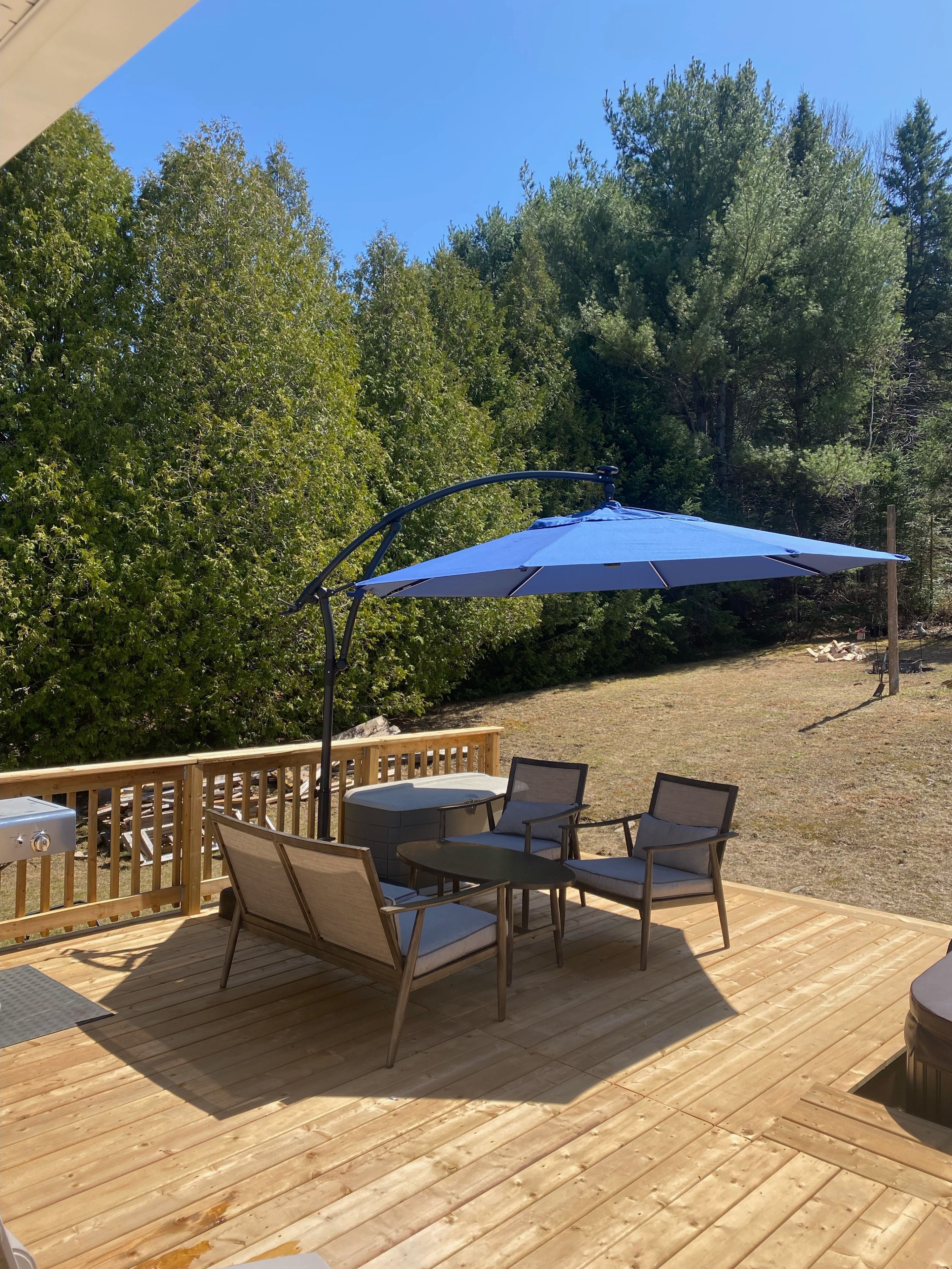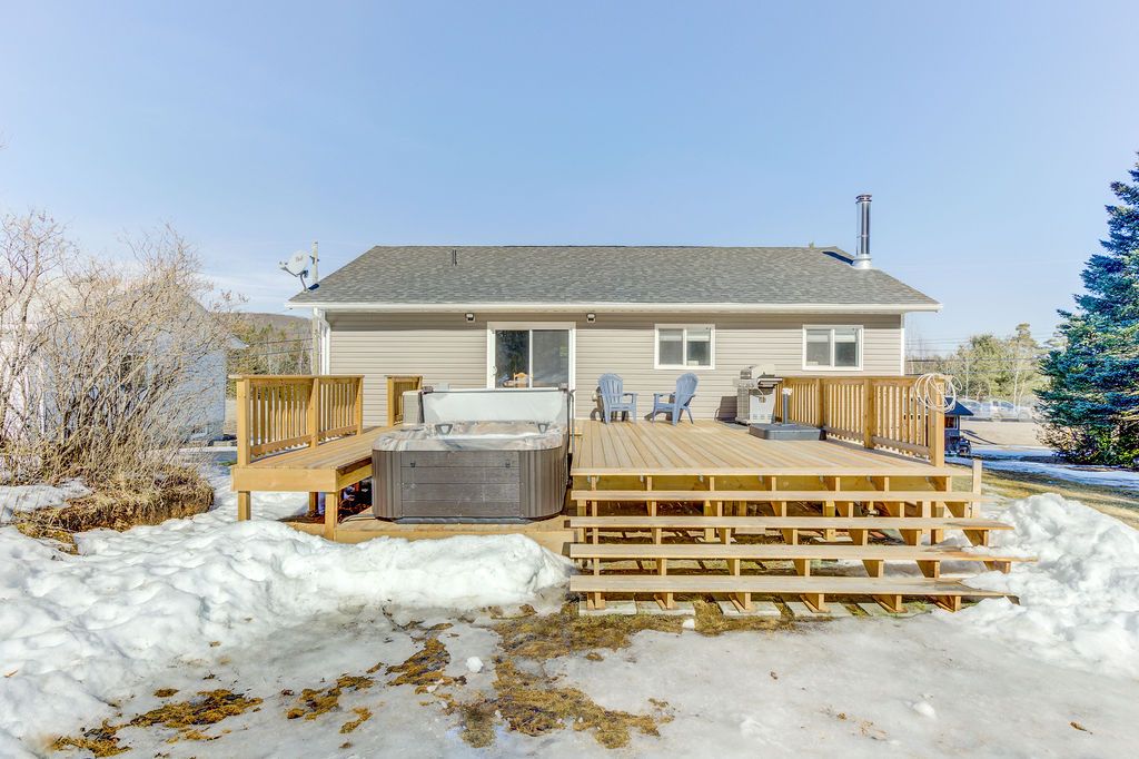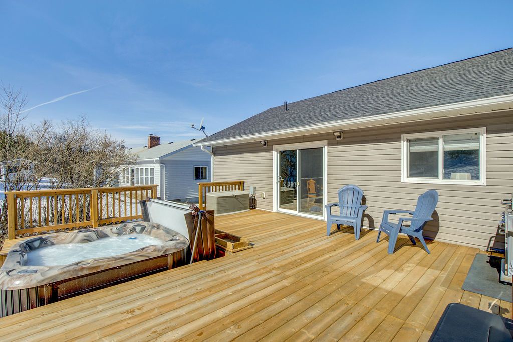 • Newly fenced yard with a large deck and private hot tub for relaxation.
