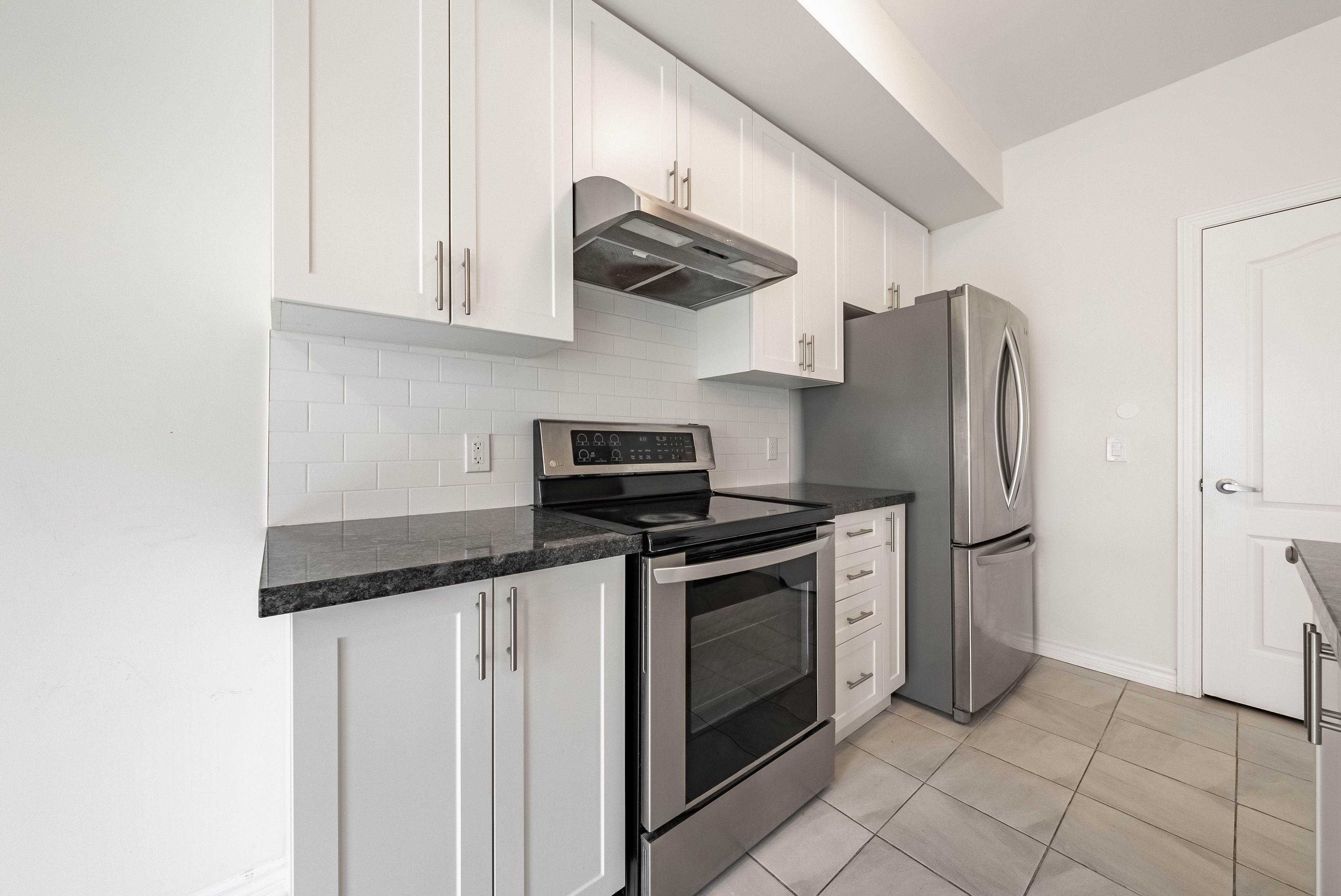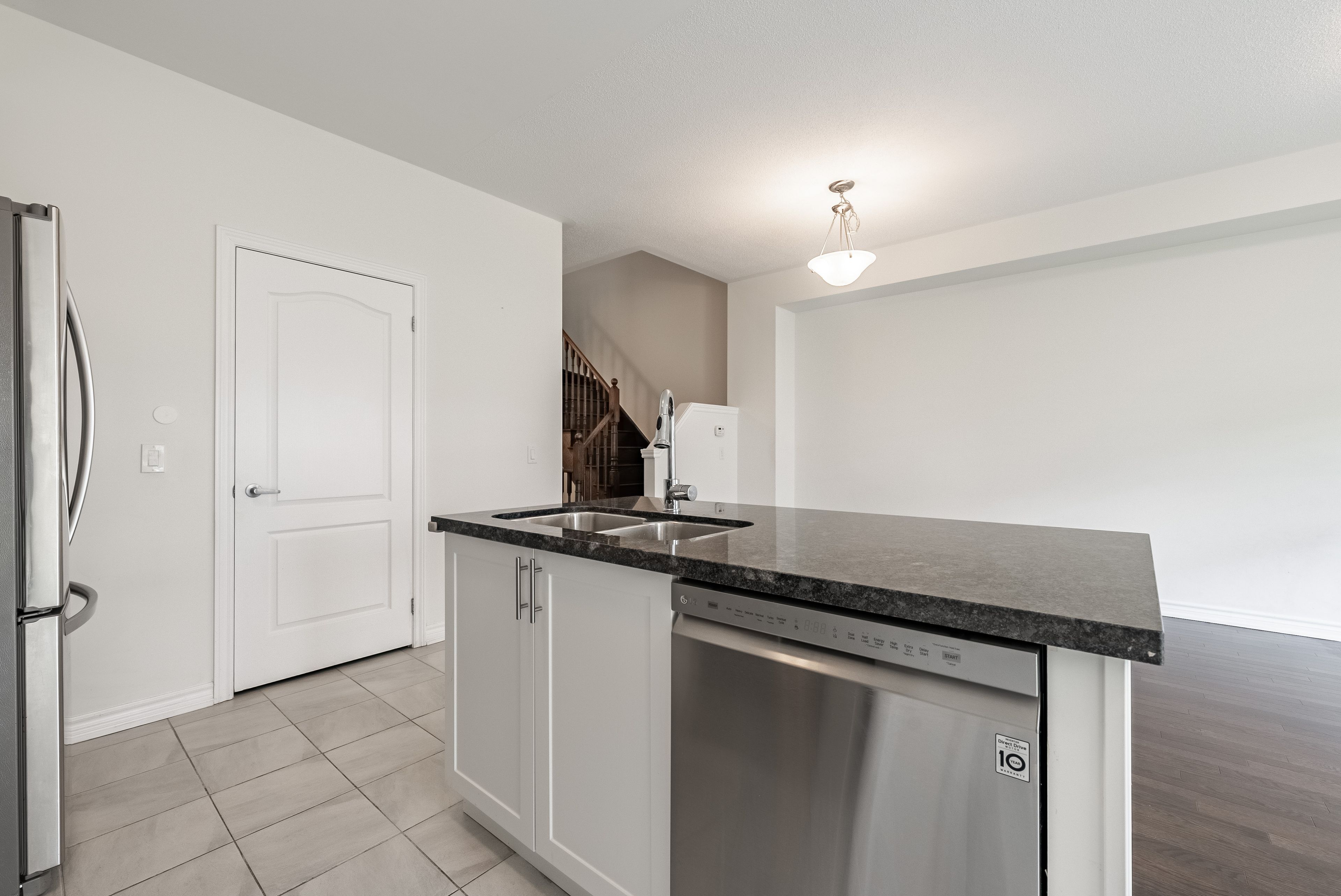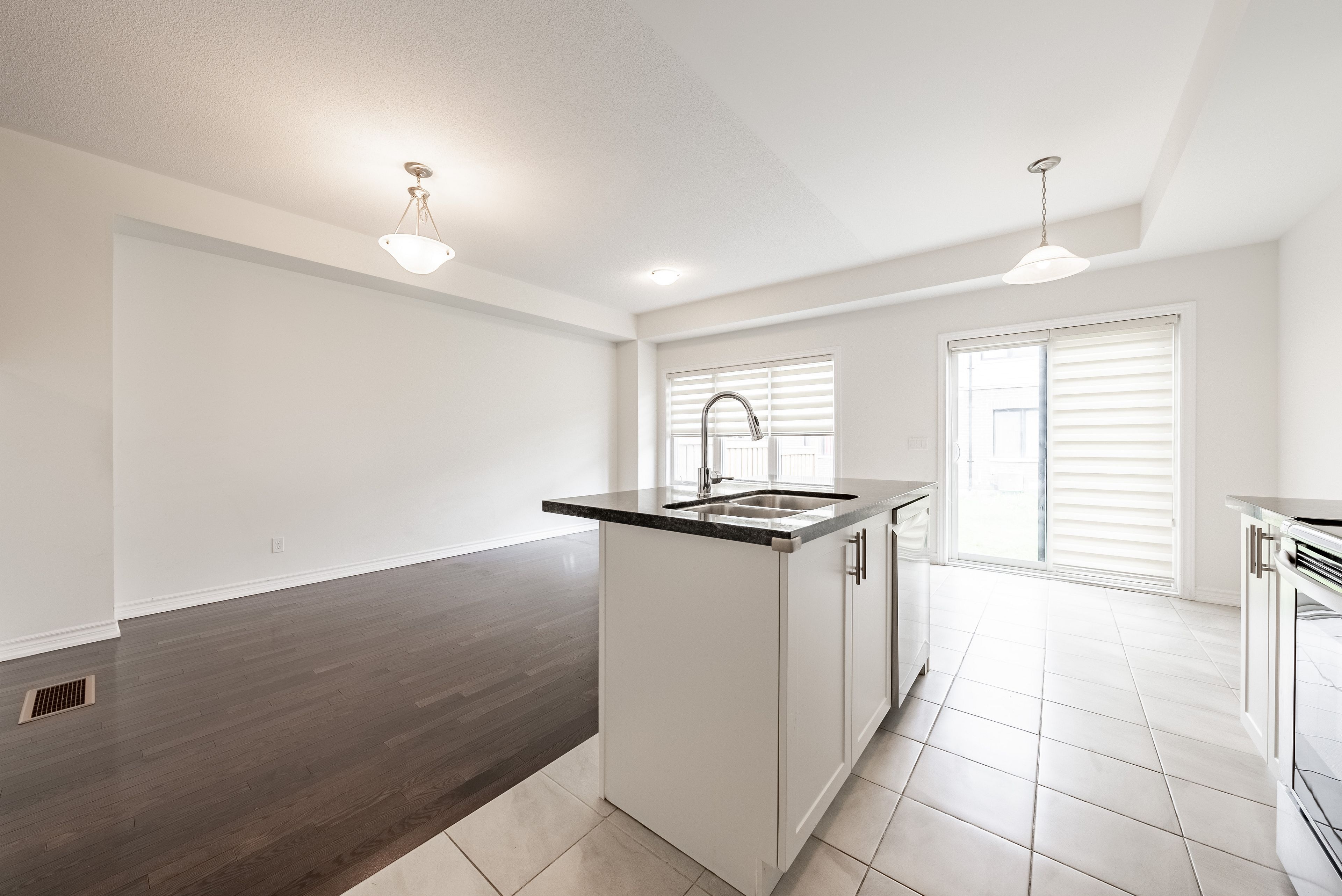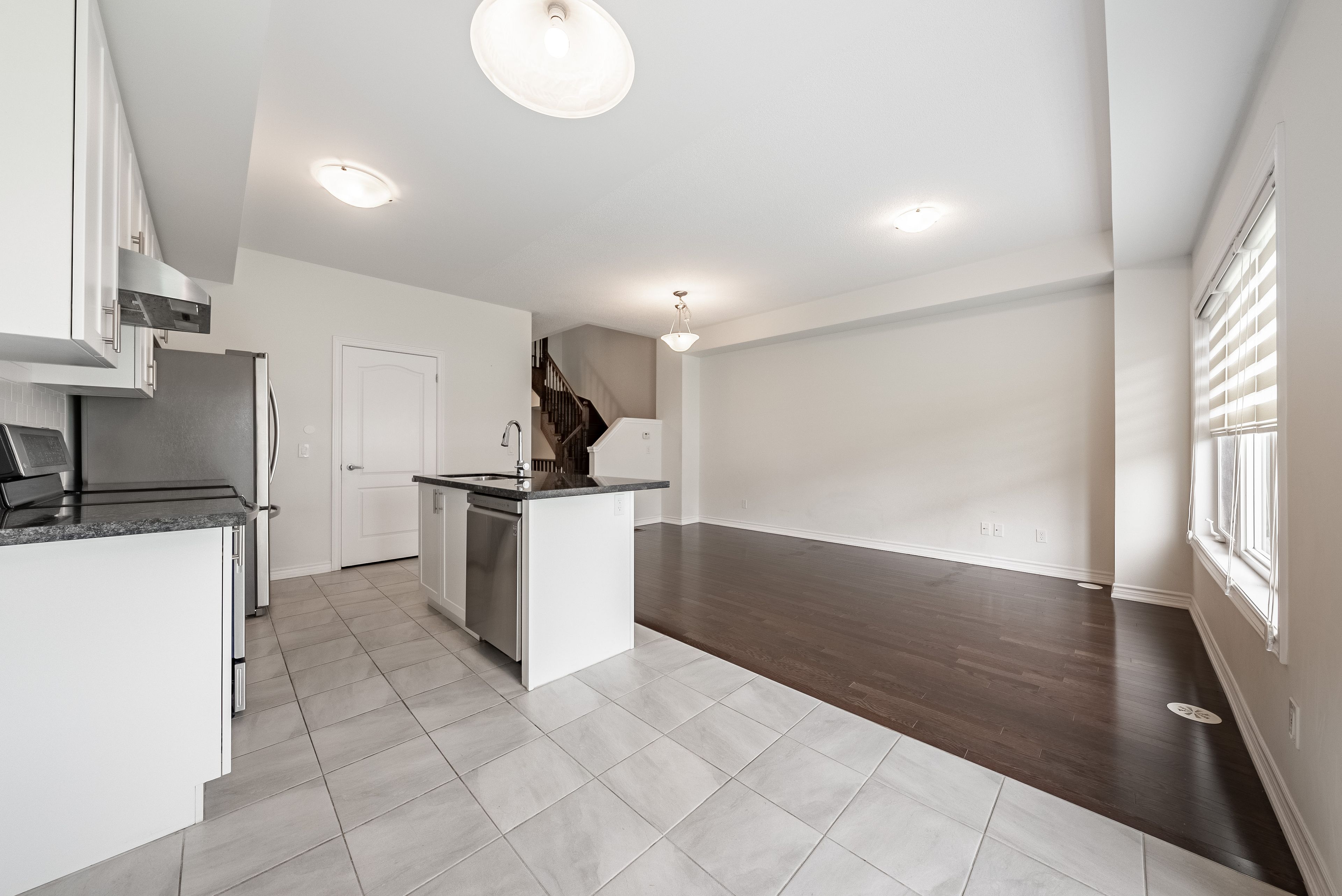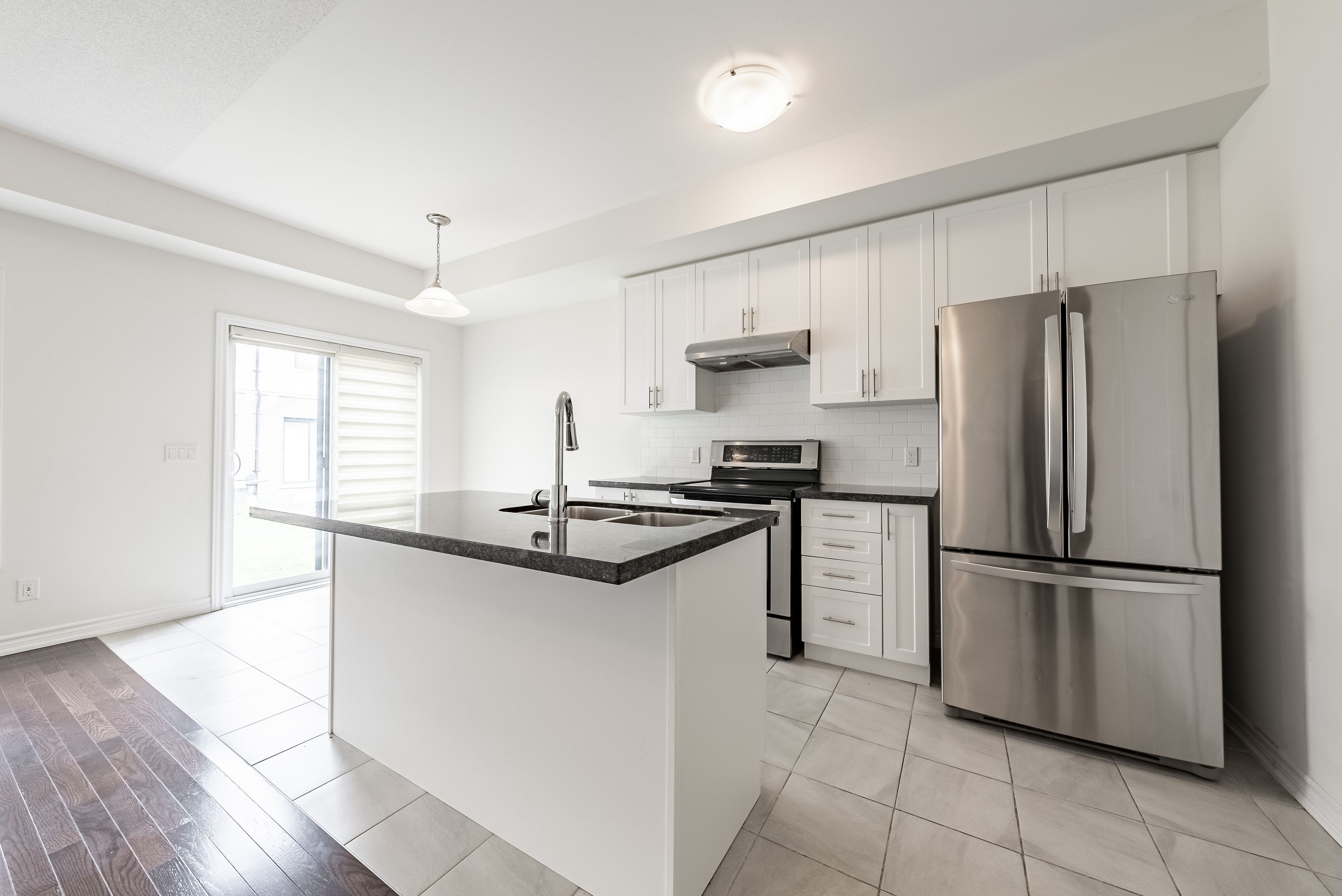 Gorgeous 2 storey freehold town-home, sun drenched south facing beautiful home in most convenient location in oakville. 3 bedroom, 3 bathroom, finished basement, upgrades dark hardwood floor and sheer zebra shades blinders, one of a kind modern design layout. Open concept delightful living & dining area, gourmet kitchen with granite counters, island, backsplash, breakfast bar & s/s appliances and sliding door to the backyard, large mudroom with access to the garage, master retreat with luxury ensuite includes sleek freestanding soaking bathtub, glass enclosed shower & large vanity & walk-in closet. Private 2nd bedroom with walk--out to glass paneled balcony, 9ft ceilings, large rec. Room, rough-in bathroom and lots storage space in the basement. Close to a++ schools, community centre, parks, restaurants, major shops, trails, quick access hwy 407 & 403, qew and go transit, move-in ready!!