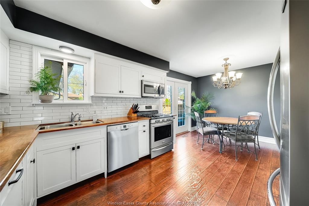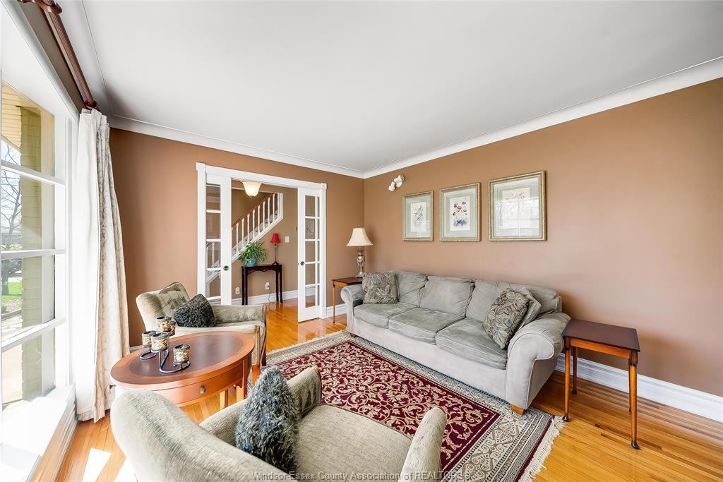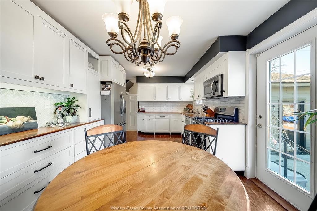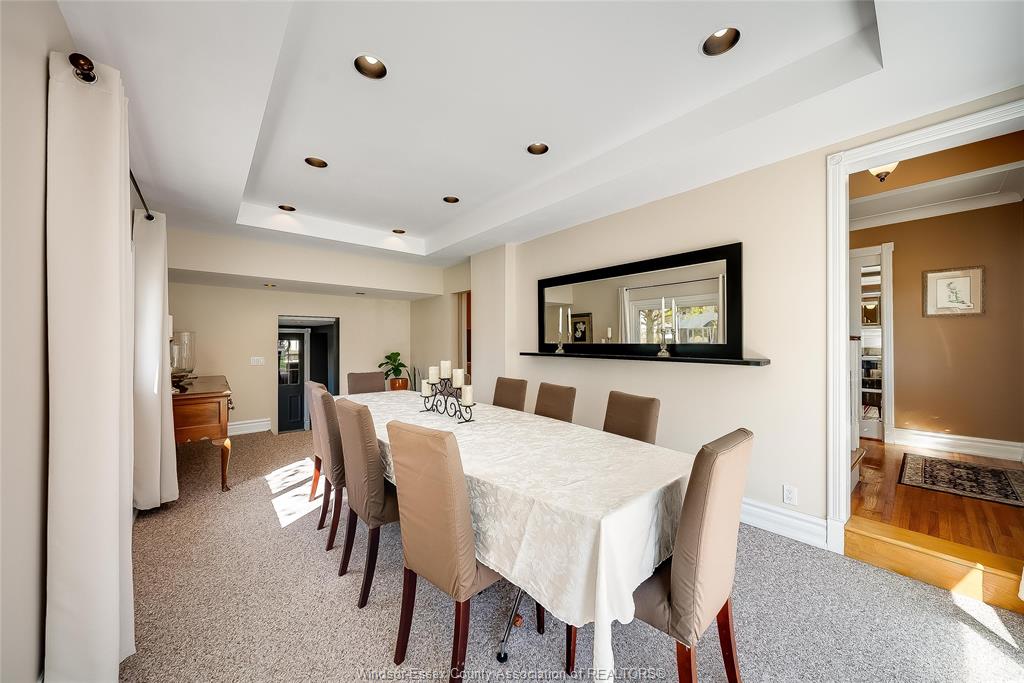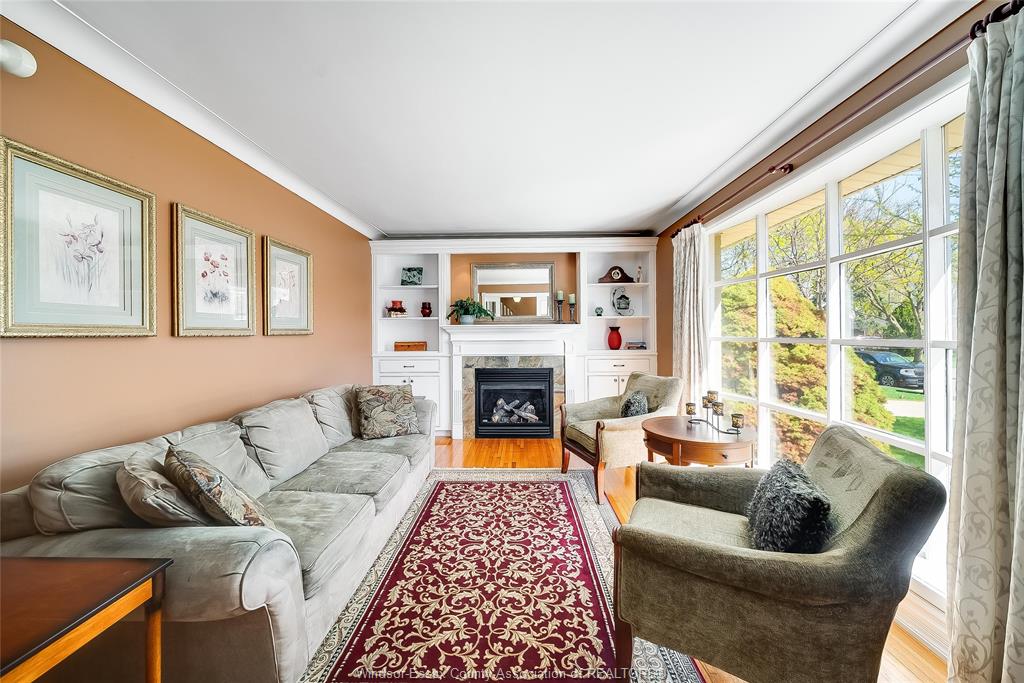 This is the one that truly feels like home. Situated on a premium corner lot in a family-friendly riverside neighbourhood, within walking distance to st. John vianney school, this impressive 2-storey home offers 4 beds and 3 baths, including a primary ensuite. The sophisticated living room, featuring a gas fireplace, is framed by grand front-facing windows that fill the space with natural light and create a warm, serene atmosphere. The heart of this home is a beautifully updated modern kitchen featuring striking walnut countertops, complemented by an oversized dining room—perfect for enjoying quality time with family and friends. Main floor laundry adds everyday convenience, while the single-car garage with a loft workshop offers an exceptional space for hobbyists. Enjoy your own private backyard retreat, complete with an on-ground pool—ideal for summer relaxation and entertaining. Just one block from the ganatchio trail, windsor yacht club and lakeview marina, this property gives you easy access to waterfront living; all tucked away on a quiet & safe street.