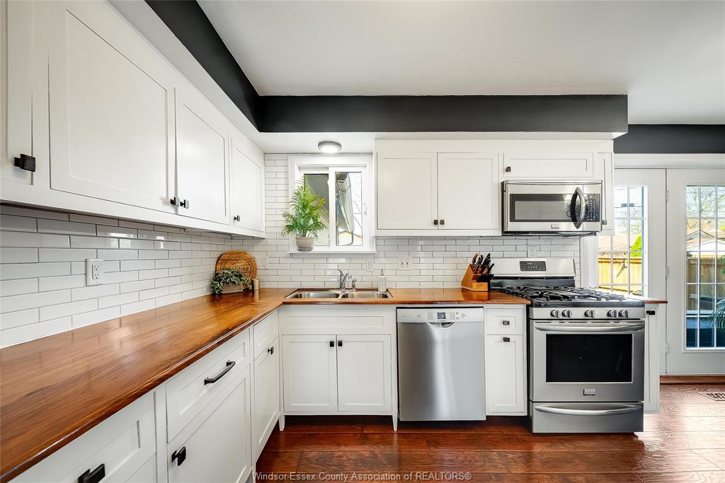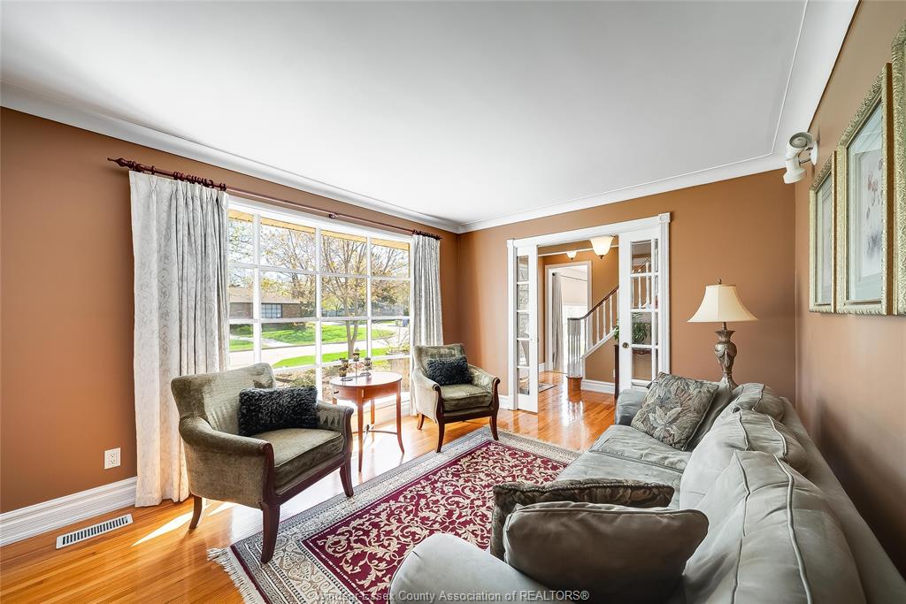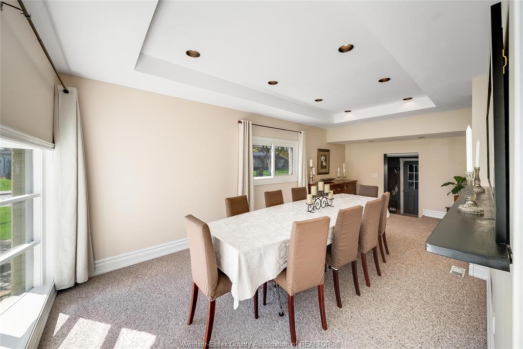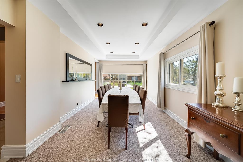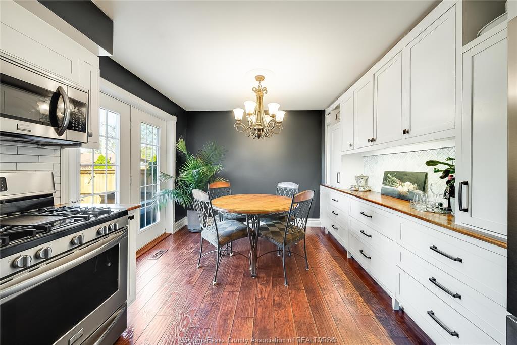 This is the one that truly feels like home. Situated on a premium corner lot in a family-friendly riverside neighbourhood, within walking distance to st. John vianney school, this impressive 2-storey home offers 4 beds and 3 baths, including a primary ensuite. The sophisticated living room, featuring a gas fireplace, is framed by grand front-facing windows that fill the space with natural light and create a warm, serene atmosphere. The heart of this home is a beautifully updated modern kitchen featuring striking walnut countertops, complemented by an oversized dining room—perfect for enjoying quality time with family and friends. Main floor laundry adds everyday convenience, while the single-car garage with a loft workshop offers an exceptional space for hobbyists. Enjoy your own private backyard retreat, complete with an on-ground pool—ideal for summer relaxation and entertaining. Just one block from the ganatchio trail, windsor yacht club and lakeview marina, this property gives you easy access to waterfront living; all tucked away on a quiet & safe street.