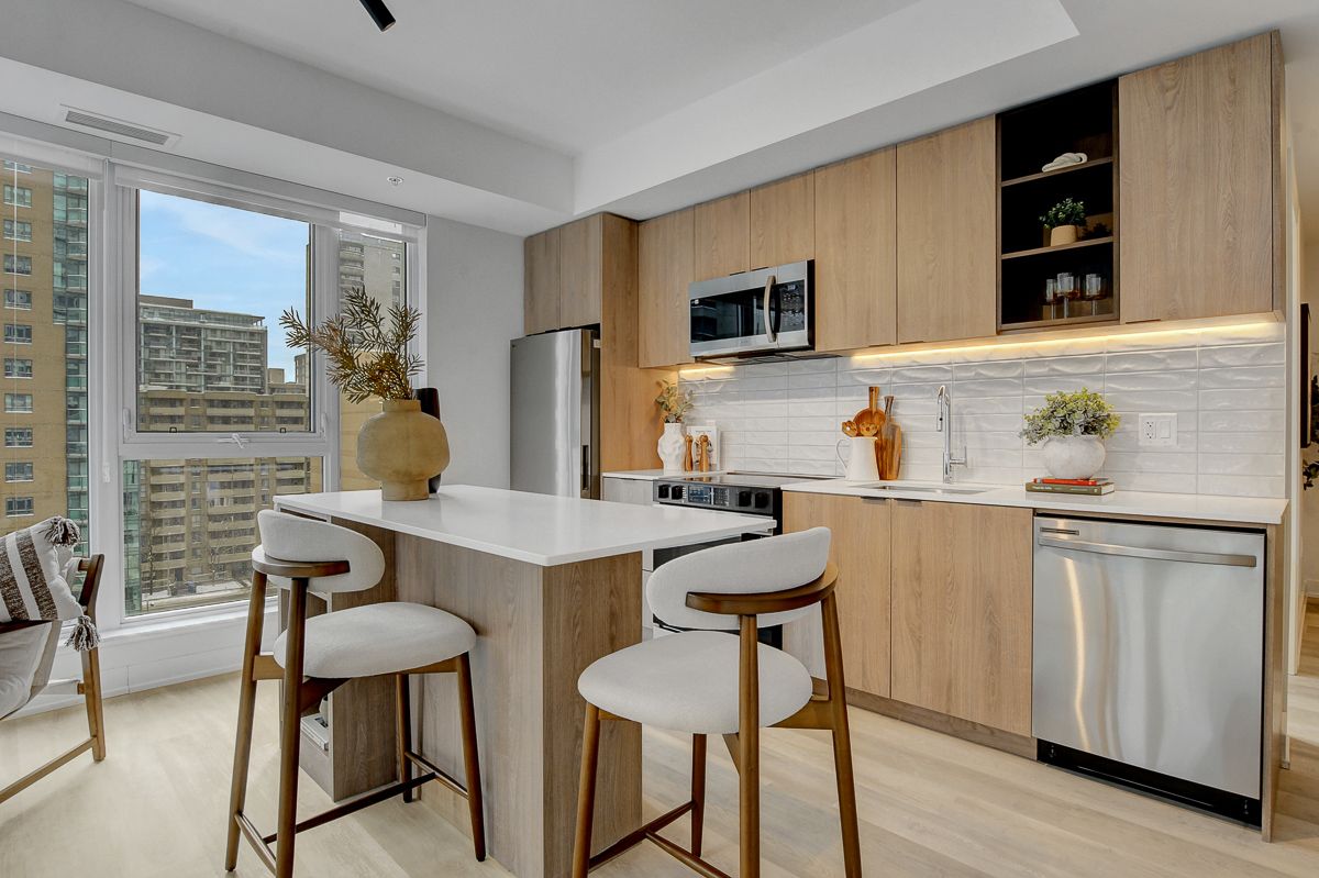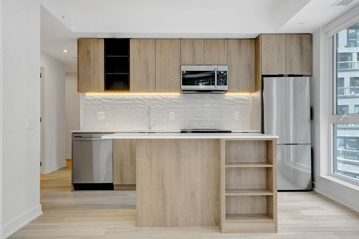 Experience refined urban living at relevé, a newly built luxury rental community in the heart of downtown ottawa. This exceptional corner two-bedroom, two-bathroom residence offers a rare combination of space, light, and design, ideal for those seeking both comfort and sophistication in a premier location. Perfectly positioned just steps from transit, dining, business hubs, and cultural attractions, relevé places the city at your doorstep while offering a calm, elevated living experience above it all. This thoughtfully designed 801 sq ft layout features a beautiful open-concept living and dining area, enhanced by expansive windows that wrap the corner of the suite and deliver stunning open views and abundant natural light throughout the day. The modern kitchen anchors the space with clean lines, quality finishes, and seamless flow, making it equally suited for everyday living or entertaining. Both bedrooms are generously proportioned, with the primary suite offering a private ensuite and excellent separation for added privacy. Contemporary bathrooms, in-suite laundry, and smart storage solutions complete a layout that feels both functional and refined. Residents of relevé enjoy access to over 20,000 square feet of premium amenities, designed to support a balanced and elevated lifestyle. Wellness, fitness, entertainment, and social spaces are complemented by outdoor terraces and resort-inspired features, creating a true extension of your living space. Optional concierge-style services and 24-hour security further enhance the experience, offering convenience and peace of mind rarely found in downtown rental living. This is a standout opportunity to enjoy luxury, space, and views in one of ottawa's most exciting new developments. Schedule your private viewing and experience the difference firsthand. Max 1 parking space ($250 standard, $275 standard + bike rack combo)