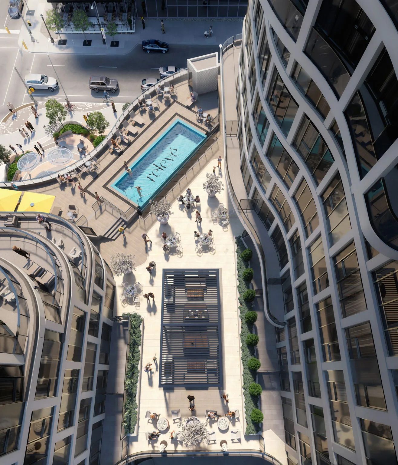• Stunning rooftop Aqua Terrace with pool and lounge seating.