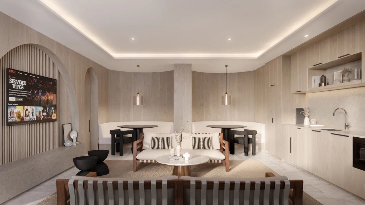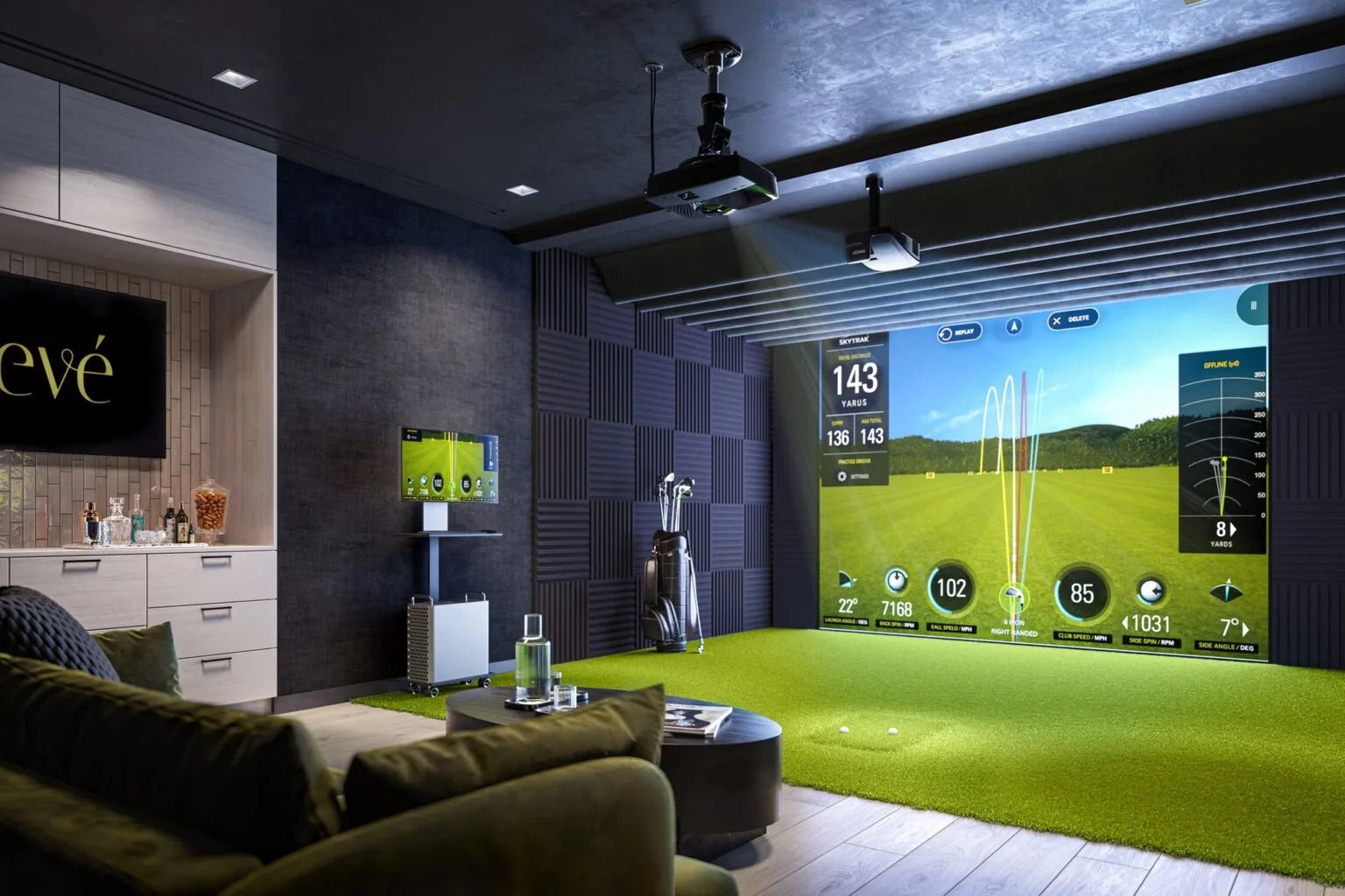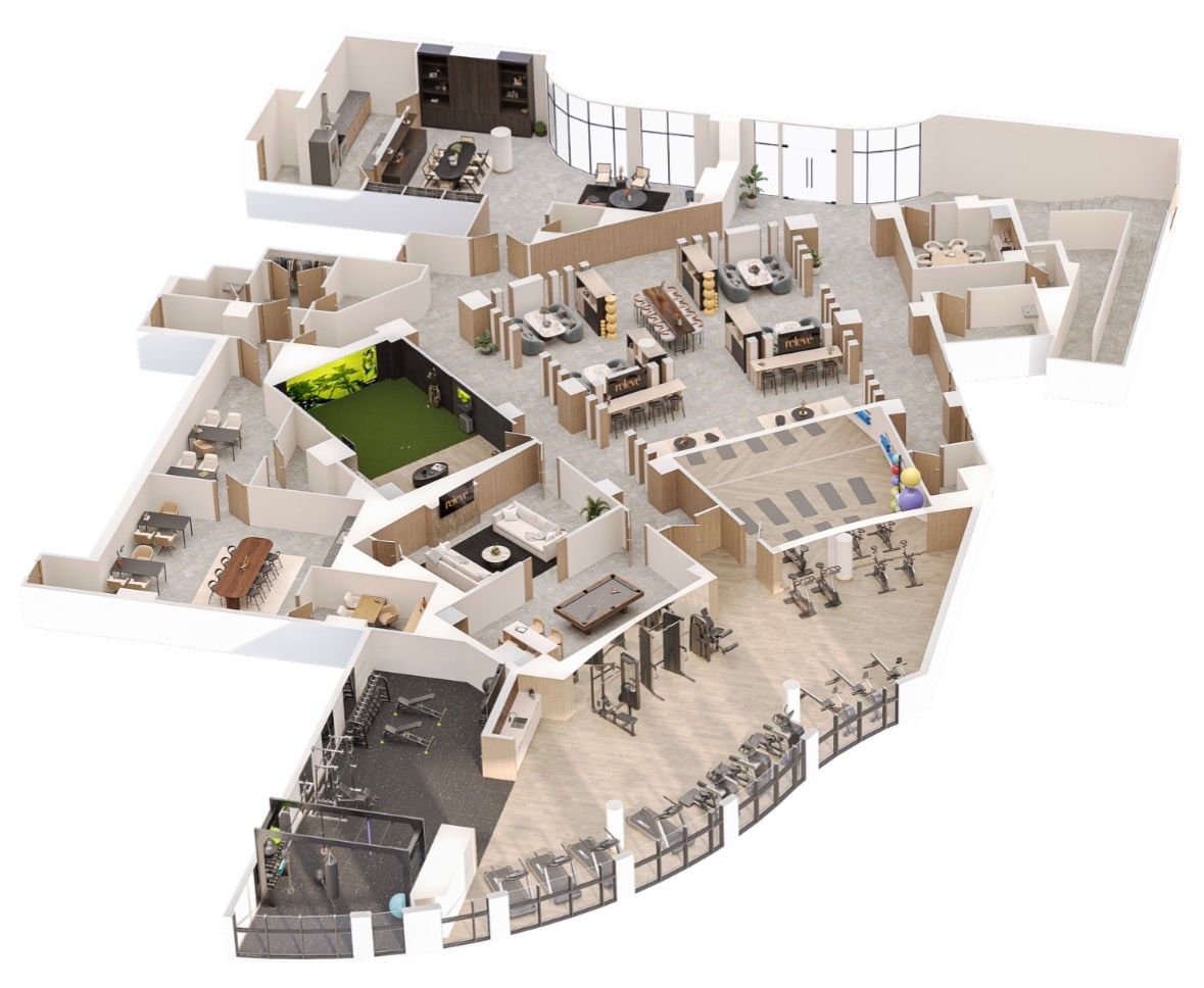 • Entertainment zone with virtual golf simulator and karaoke lounge.