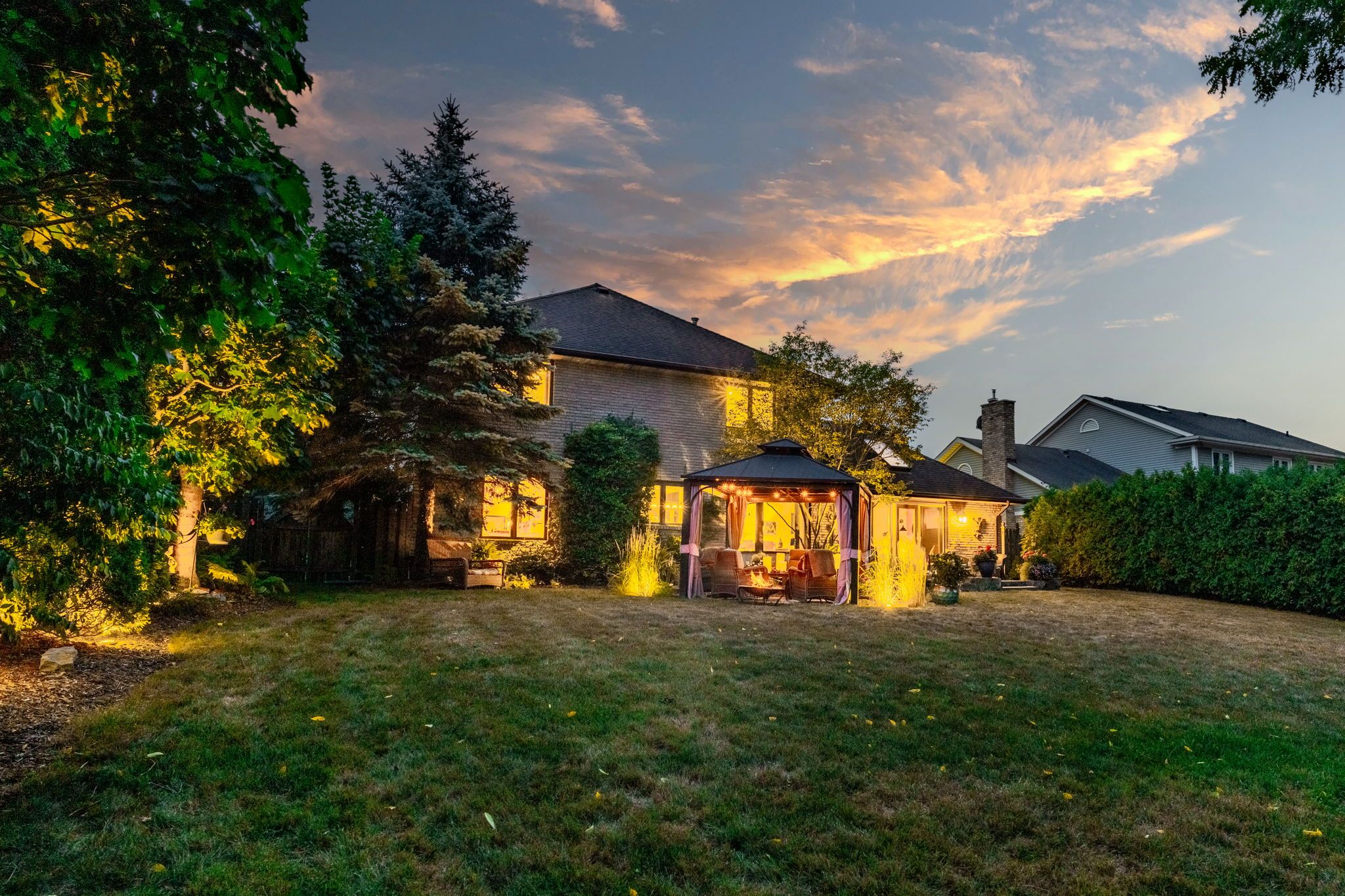 Welcome to 3914 carolynn court, a warm and refined 4-bedroom home backing onto a private ravine in one of vineland's most coveted pockets. The main floor blends an open kitchen with a sun-filled living space, framed by a full wall of windows that pull the outdoors in. Vaulted ceilings, rich finishes, and a calm, natural flow make the home feel both grounded and elevated at the same time. Upstairs offers four oversized bedrooms, including space for guests, teens, or that future expansion every growing family quietly prepares for. You'll also find a dedicated parlour and a formal office, giving professionals the room they need to think, host, and work in peace. Downstairs? A massive unfinished basement-clean, open, and ready for whatever your life becomes next. With a double-car garage, a quiet neighbourhood setting, and a backyard that feels like a private retreat, this is the kind of home that doesn't just check boxes-it sets a new bar.