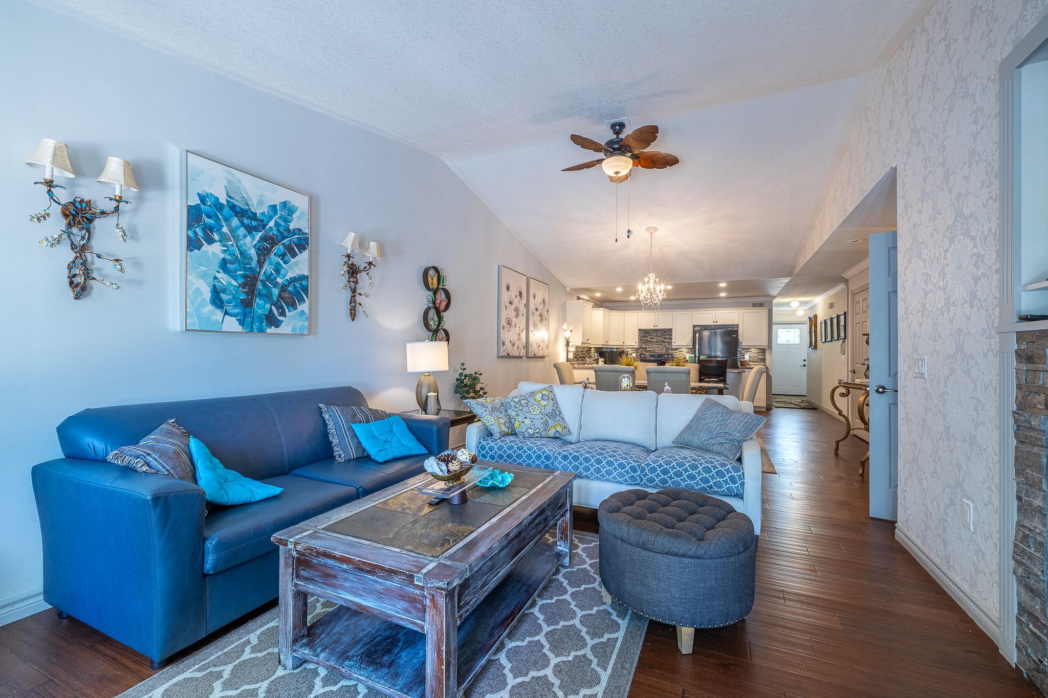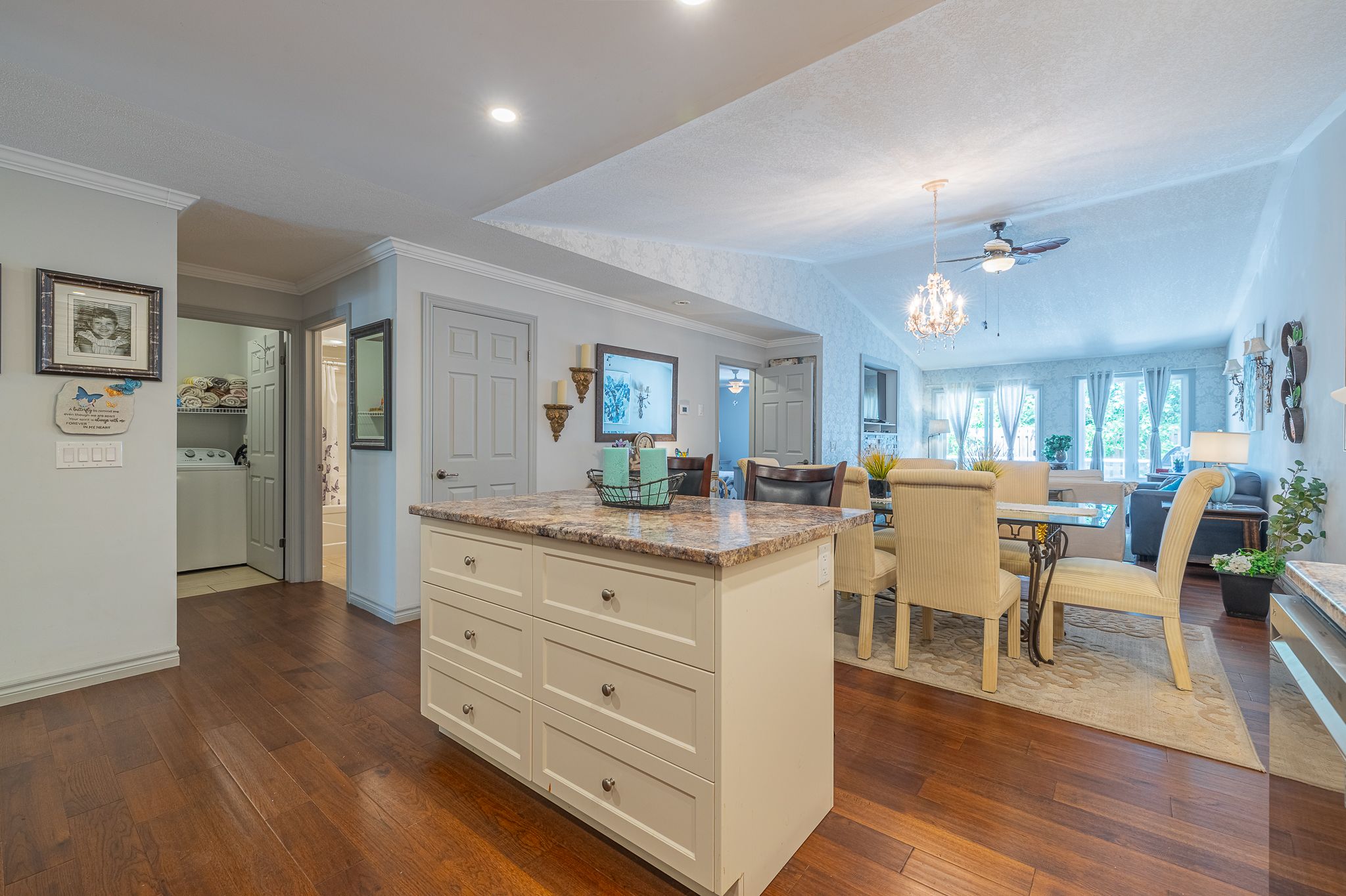 Your dream retirement awaits! Imagine waking up every morning in your own charming bungalow town, surrounded by the tranquility of cherry hill's beautiful community. This stunning 1200 sq ft home is designed with your comfort and convenience in mind, featuring a covered front porch to enjoy your morning coffee. Spacious foyer to make a great first impression. Attached garage with inside entry and access to crawl space. Convenient on-demand water heater. Large kitchen with central island for food prep and socializing. Glass backsplash and stainless steel appliances. Pots and pans drawers and loads of storage. Dining room with console and beautiful crystal chandelier dining room table with glass top and 6 chairs. Cathedral ceiling over dining room and living room for an airy feel. Living room with gas fireplace with custom stone facade. Slider patio doors to composite private back deck. Hardwood floors for warmth and elegance. This 1200 sq ft bungalow town boasts 2 full bathrooms, including a 4-piece main bathroom and a 3-piece ensuite with walk-in shower, both with ceramic floors. The primary bedroom is a retreat in itself, featuring: large walk-in closet additional closet for extra storage alcove for your dresser, 3-piece ensuite bathroom with walk-in shower. With everything on one floor, this move-in ready bungalow town is perfect for retirement living. With oodles of activities in the club house(equipped with kitchen, library, pool/billiard room, craft room, exercise room, patio with bbq and exterior salt water pool!) don't miss out on this incredible opportunity to make cherry hill your home! This is your dream retirement home!