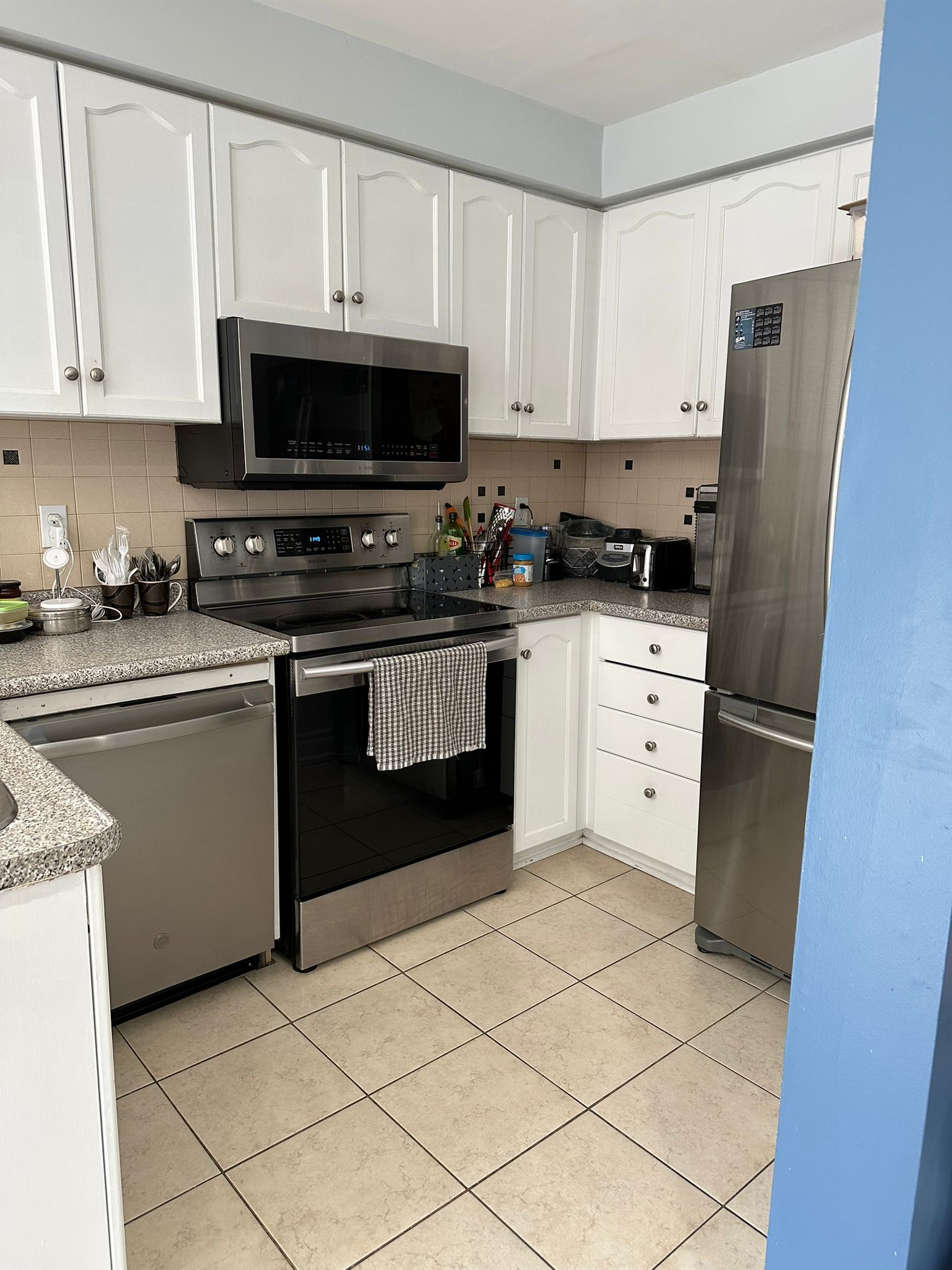 • Modern kitchen featuring stainless steel appliances and updated plumbing.
