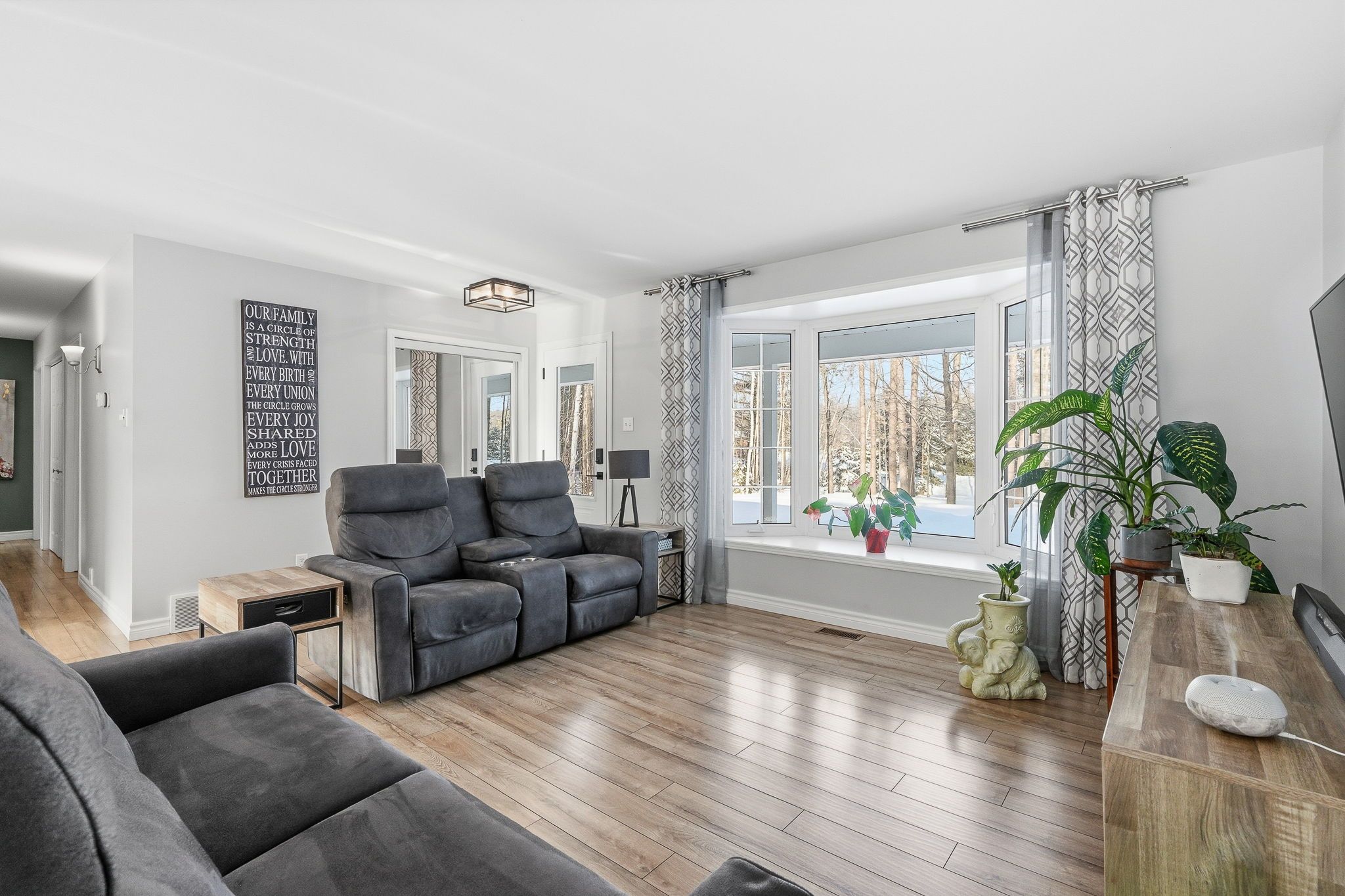 Nestled on a private 0. 92-acre wooded lot, this beautiful property at 392 concession 4 rd, plantagenet offers exceptional privacy where nature and tranquility truly shine. Step inside and immediately appreciate the seamless flow of the main living space, featuring a welcoming living room with a charming bay window, a dining area, and a stunning kitchen. The kitchen boasts floor-to-ceiling white cabinetry, quartz countertops, a large island, and a modern backsplash, perfect for both everyday living and entertaining. Large windows throughout this space flood the home with natural light, creating a bright and airy atmosphere. The primary bedroom offers the convenience of direct access to a 3-piece ensuite bathroom. Two additional generously sized bedrooms, a second full bathroom, and a main-floor laundry area are complemented by direct access to the oversized single garage and complete this level. Downstairs, the expansive basement provides endless possibilities with its large family room. The basement also features an office, a bonus room and plenty of storage. Outside, the backyard truly completes this private oasis. Enjoy a spacious deck with a gazebo and a practical stand-alone generator, all surrounded by mature trees, an ideal setting for relaxing, entertaining, or simply soaking in the peaceful surroundings.