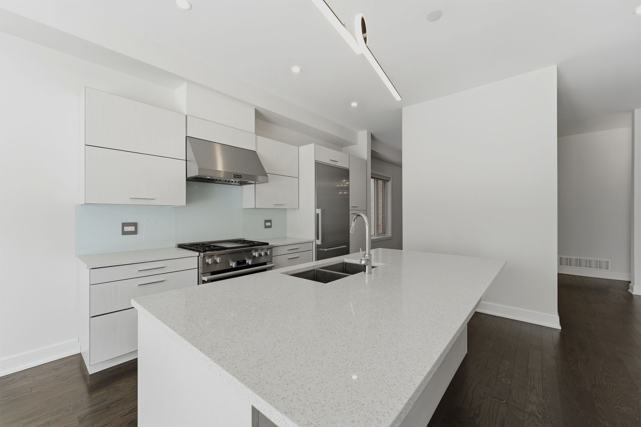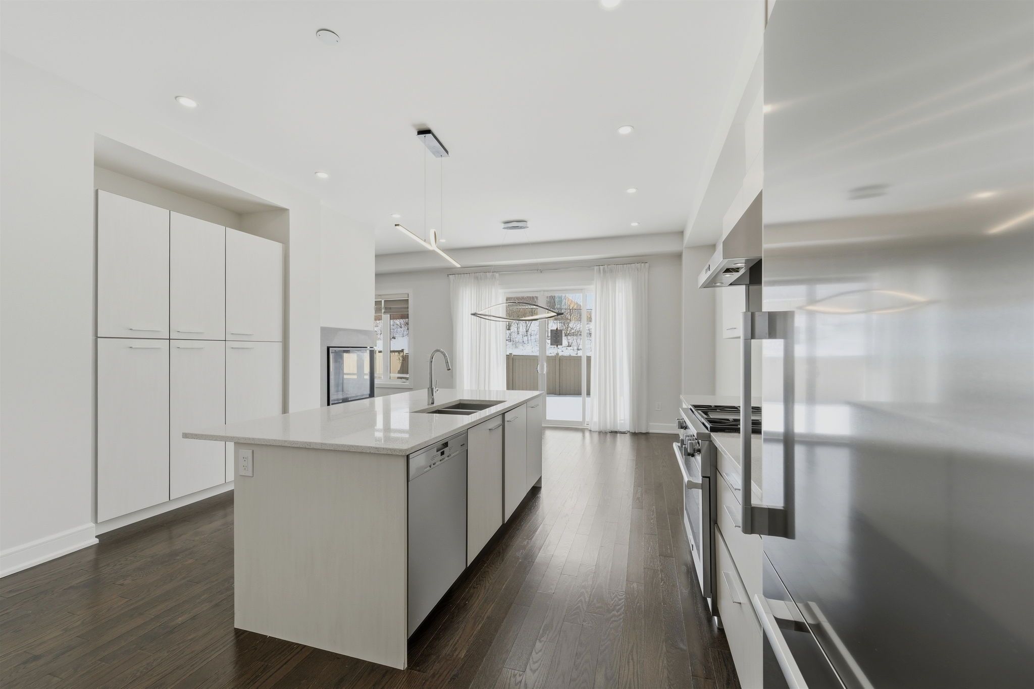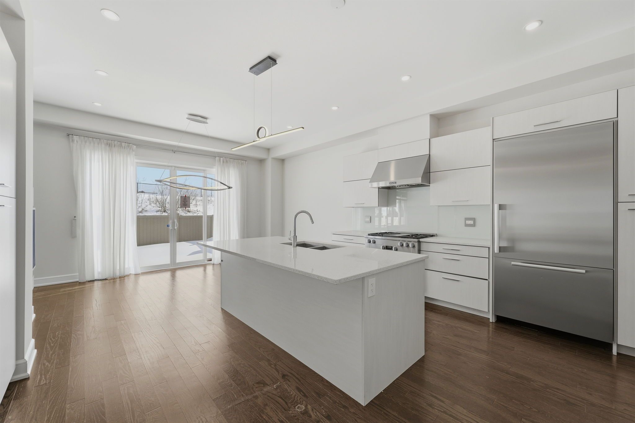 • Open-concept main level with a custom chef's kitchen and high-end appliances.