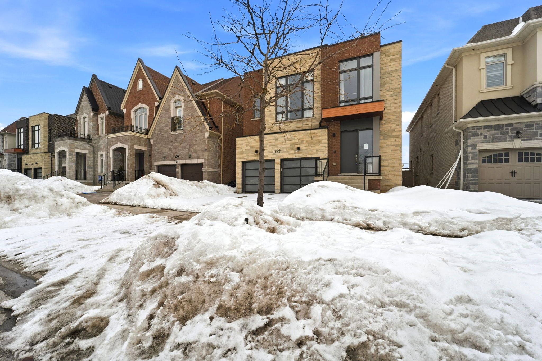 Welcome to 392 farrell road, an exceptional three-storey home in the prestigious upper thornhill estates. This stunning 4+1 bedroom, 5-bathroom residence offers approximately 4,254 sq. Ft. Above grade, featuring 10-ft ceilings on the main floor and 9-ft ceilings on the second, with elegant designer finishes throughout. The bright, open-concept main level showcases spacious principal rooms, a custom chef's kitchen with high-end stainless steel appliances, granite countertops, oversized centre island, custom cabinetry, and a walkout to a private backyard. A striking double-sided fireplace seamlessly connects the living/dining area with the family room. A functional mudroom with built-ins provides direct access to the two-car garage. The second floor offers an office/media nook and four generously sized bedrooms, each with its own ensuite bathroom. The luxurious primary suite features soaring ceilings, floor-to-ceiling windows, a spa-inspired five-piece ensuite, and a large walk-in closet. The third-floor loft includes a full bathroom and walkout to a private rooftop terrace with composite decking and glass railing. The partially finished basement offers a laundry room, high ceilings, walk-up to the backyard, and excellent future potential. Ideally located steps to top-rated schools, parks, nature trails, and vaughan's finest amenities-this home delivers upscale living in one of the area's most sought-after communities.