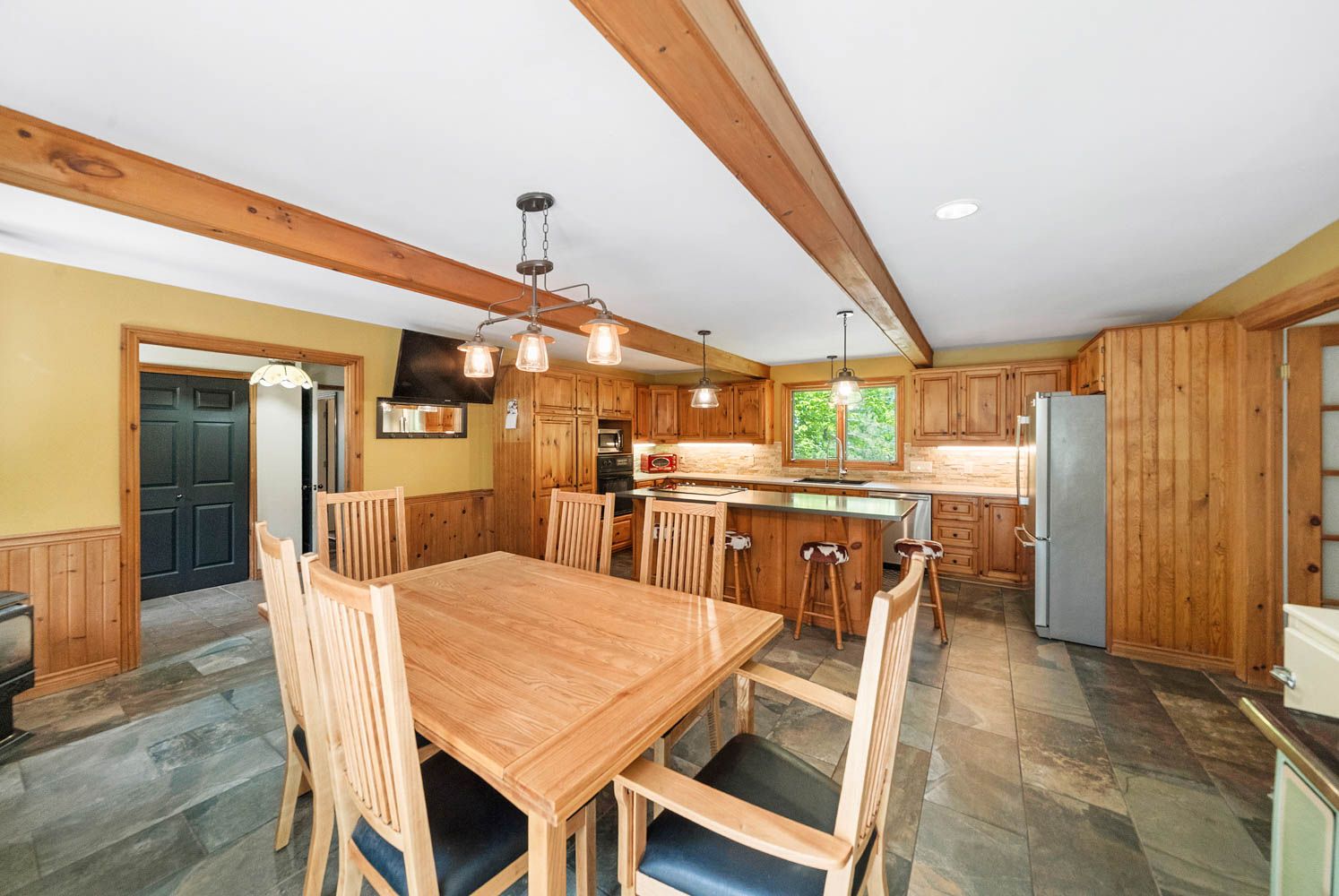 • Open-concept layout with a bright eat-in kitchen and large island.