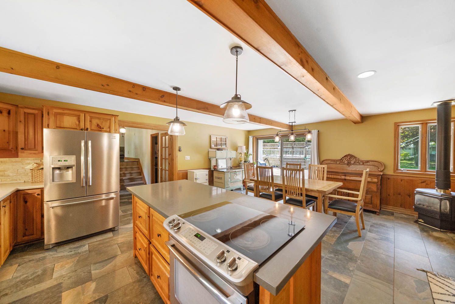 Nestled in the heart of innisfil, this spacious 4-bedroom, 3-bathroom sidesplit home sits on a generous 120 x 200 lot with stunning views of lake simcoe. The home boasts an open-concept layout with a bright eat-in kitchen featuring a large island and fireplace, perfect for family gatherings. The master retreat offers a 4-piece ensuite, fireplace, and private walkout to the deck. A fully finished basement adds extra living space, while the backyard showcases a 24-ft above-ground pool and a detached workshop. Located just steps to the lake, this property combines tranquility with convenience, offering easy access to amenities and highways.