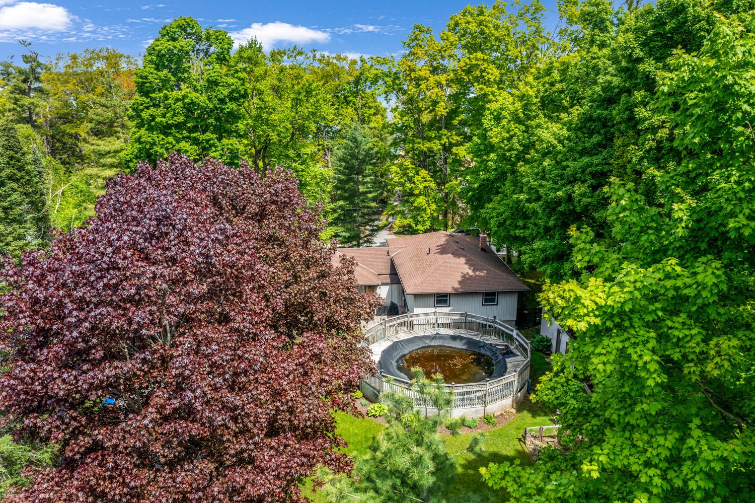 • Backyard features a 24-ft above-ground pool and detached workshop.