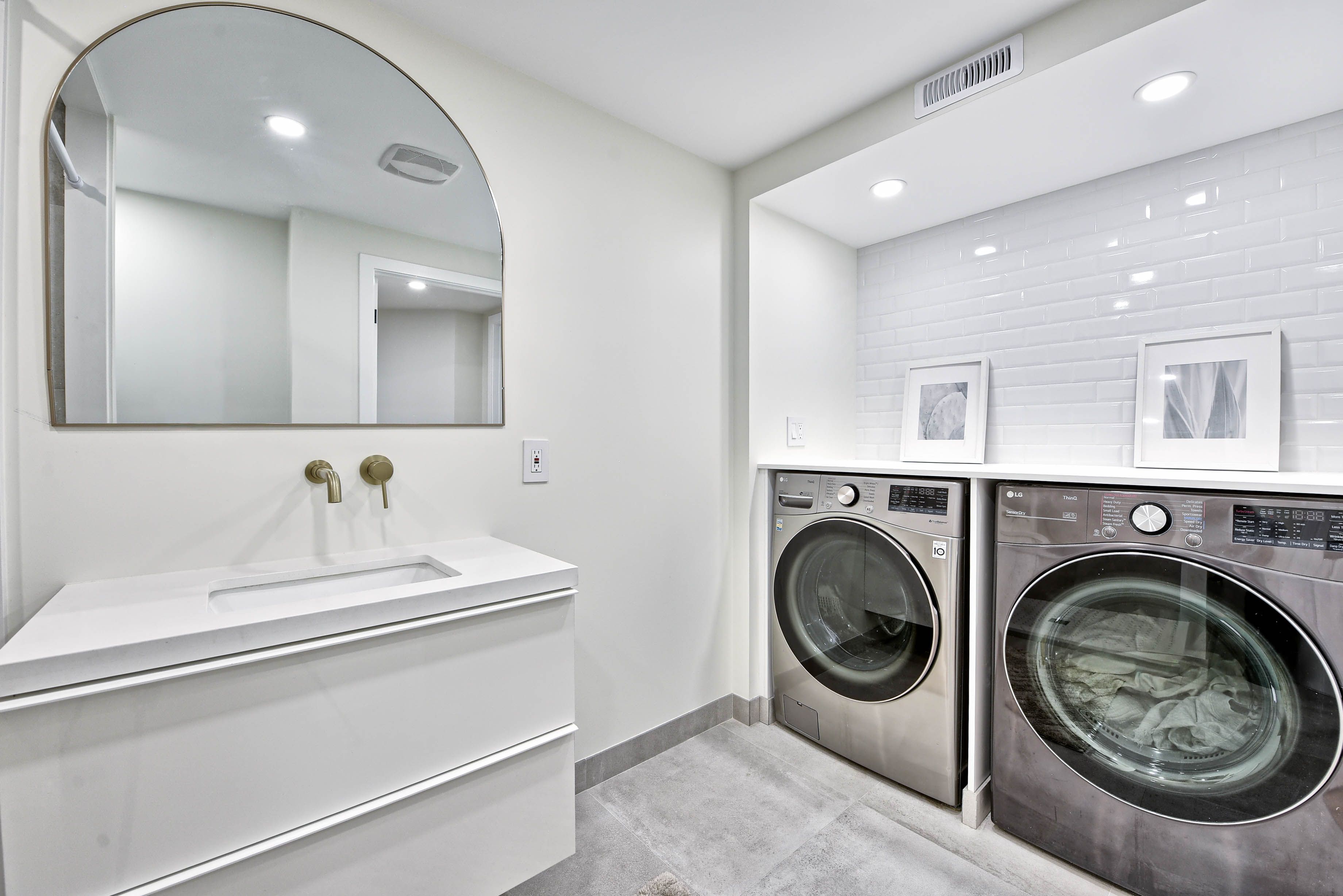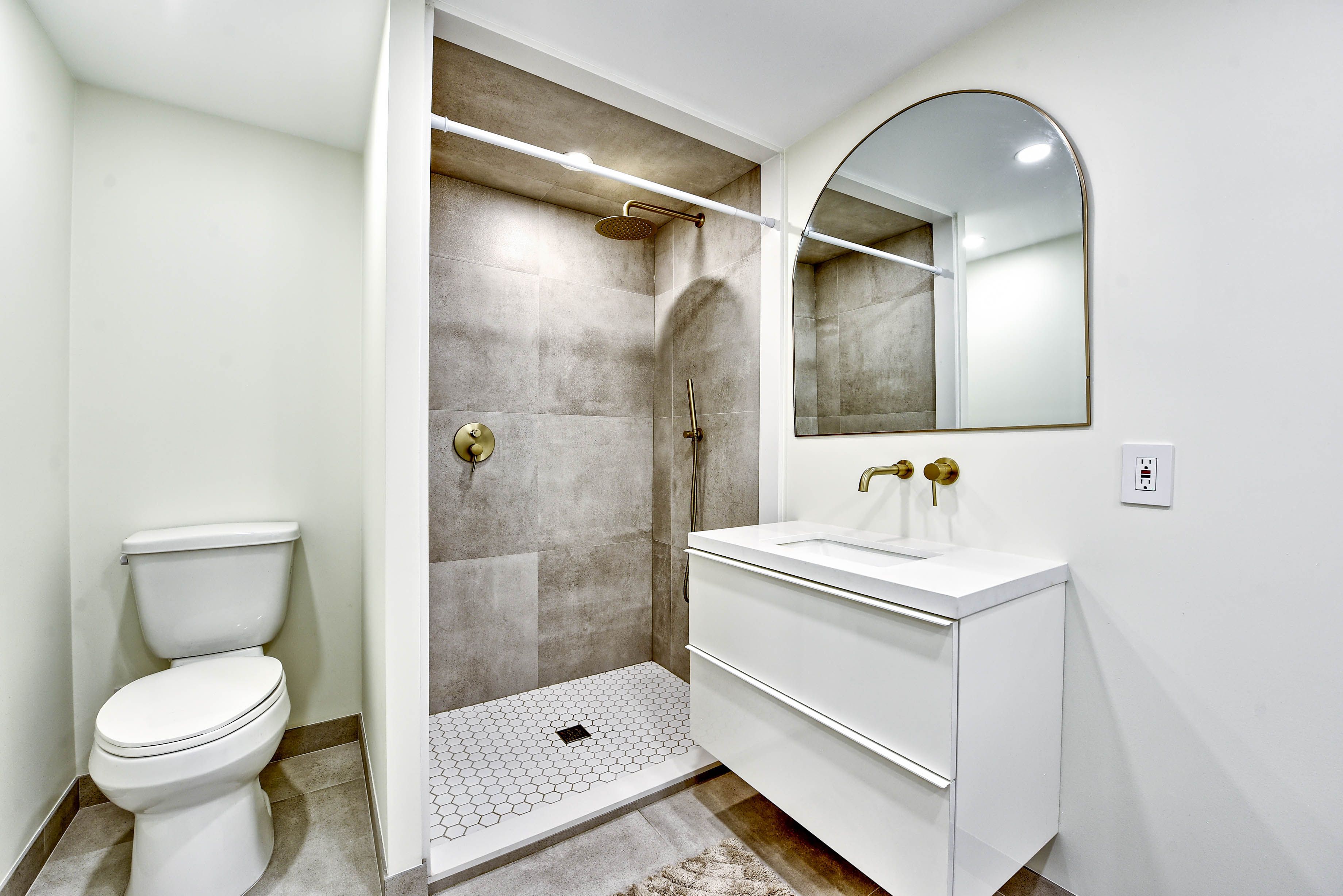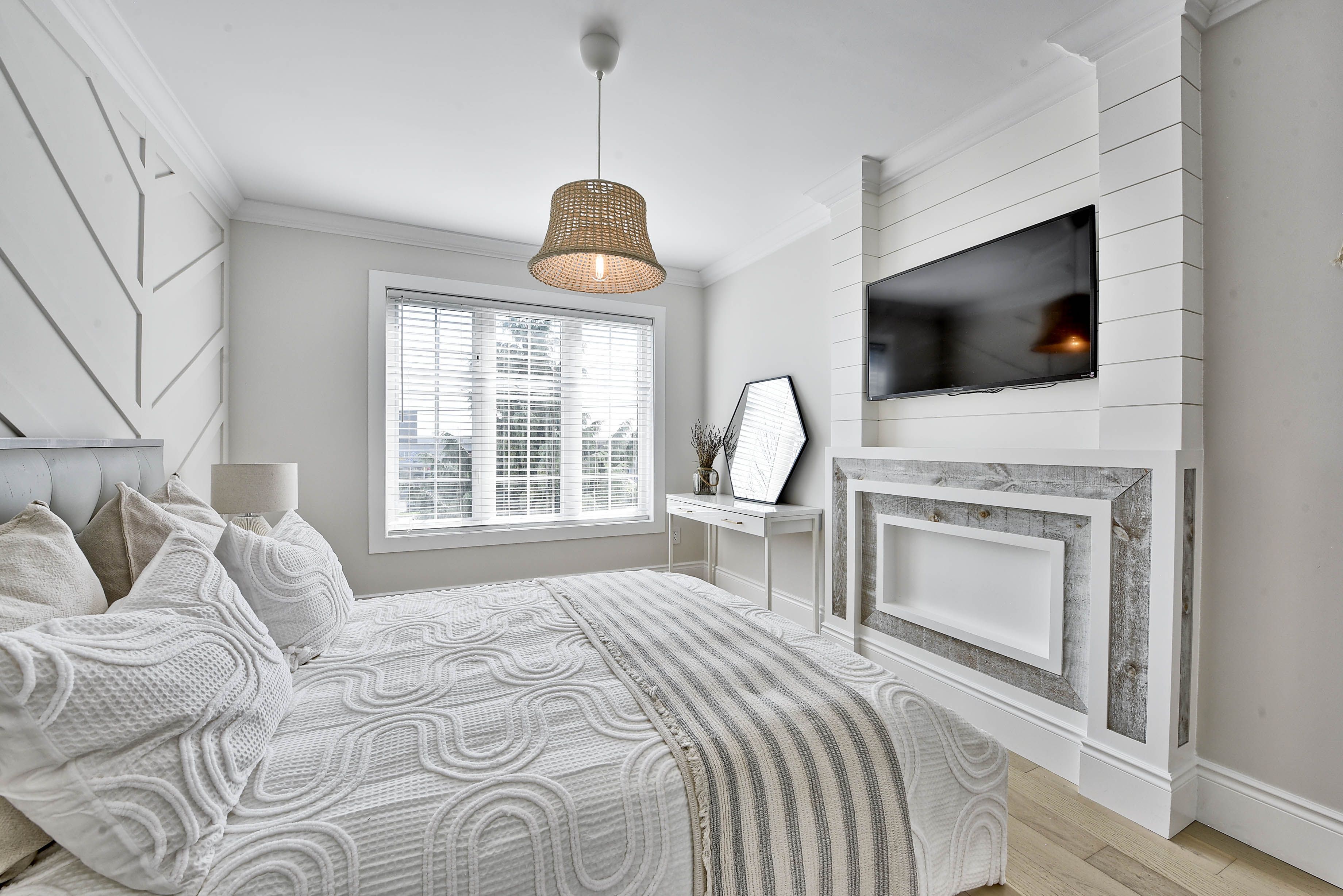 • Primary bedroom features a modern ensuite with heated floors and freestanding bath.