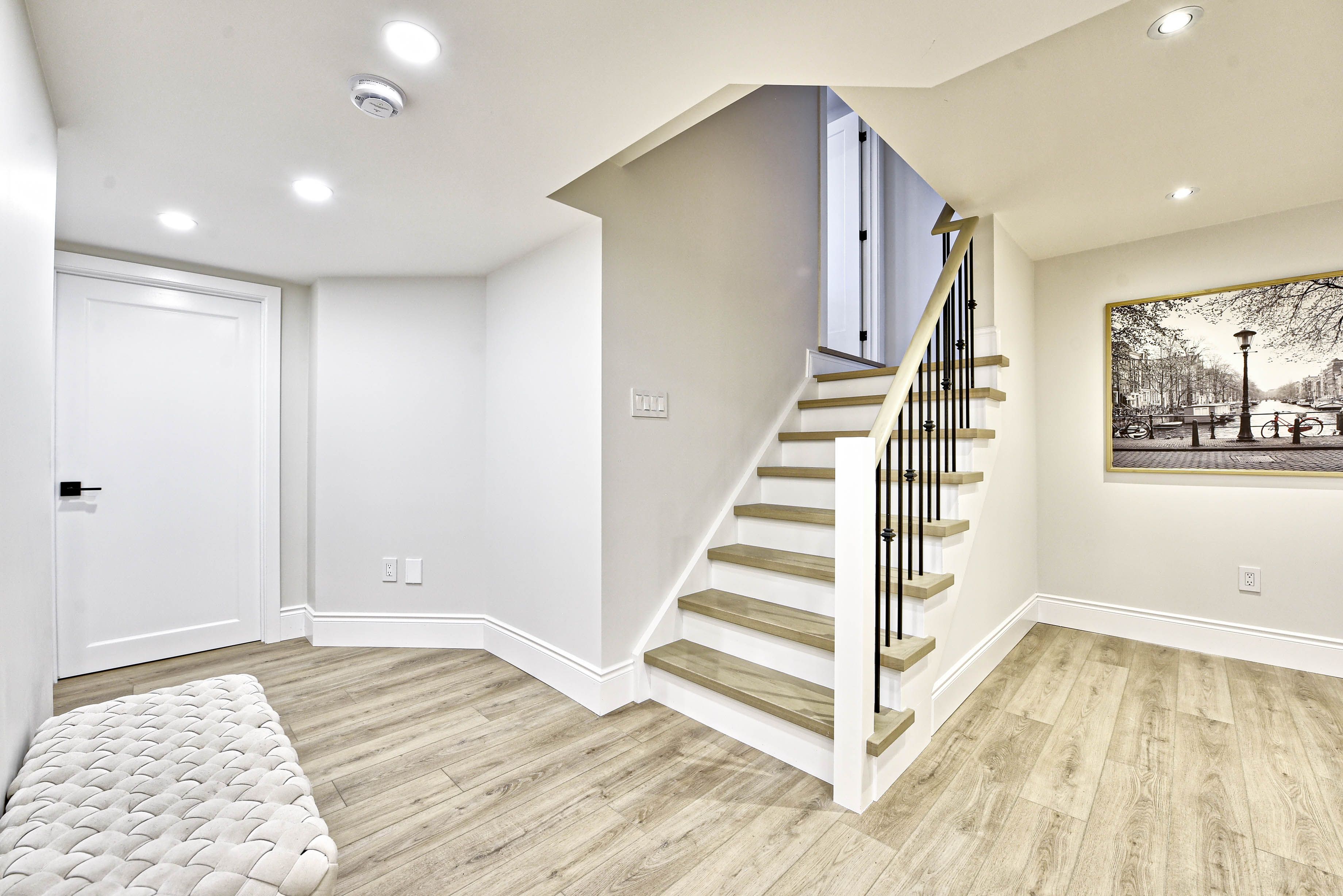 Welcome to 1 of a kind renovated throughout executive freehold town in great churchill meadow neighbourhood. This fully modern renovated town offer approx. 2000 sq. Feet of living space of modern sophistication. Around 200 k renovations include: new roof, kitchen, bathrooms, flooring, stairs, doors, pot lights, smooth ceiling throughout, finished basement w/ 3pcs bath and decorative wall details throughout the house, beautiful light fixtures. Almost every detail of this house has been thoughtfully upgraded. Extended kitchen with new modern cabinets, extended quartz island, premium white appliances, unique pot filler over the stove, garburator in the sink, porcelain flooring and backsplash. Primary bedroom offers fully renovated 4pcs modern ensuite with freestanding bath, separate shower, heated floor for you comfort. Electric fireplace and amazing decorative wall detail in primary bedroom offers exceptional atmosphere. Carpet free house with modern engineering floor on ground and 2ndlevel and good quality laminate floor in the basement. Basement finished with 3 pcs bath and rough in for wet bar/kitchenette. This is truly one of a kind house in the area with great location, close to great schools, highways, public transportation, shopping and more. 15 hour public parking on the street in front of the house.
