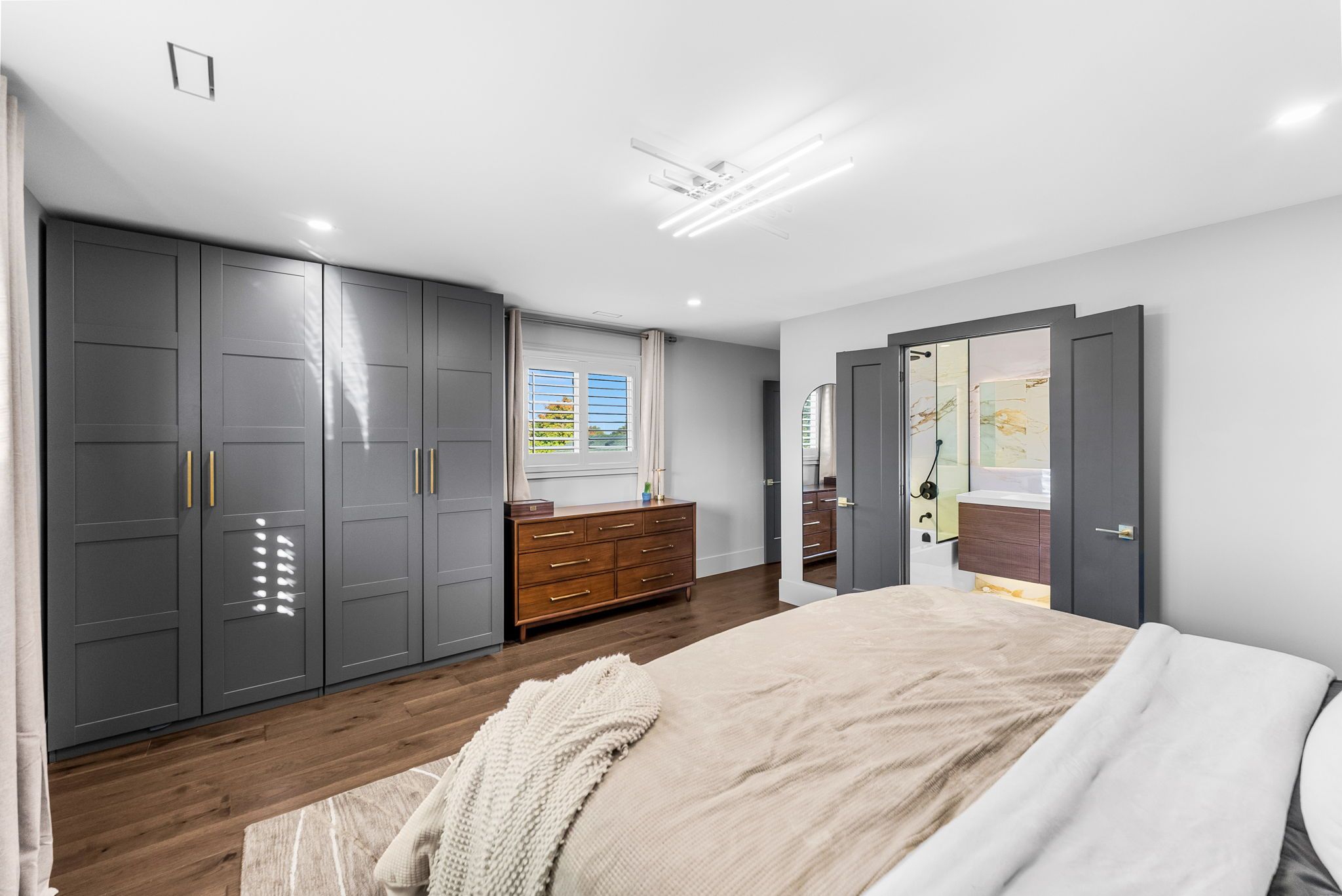 • Primary ensuite is a spa-like retreat with heated floors and modern fixtures.
