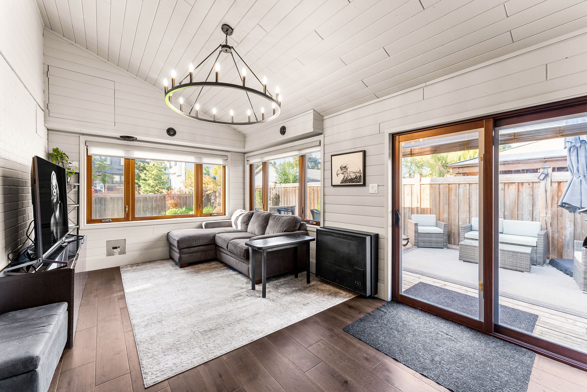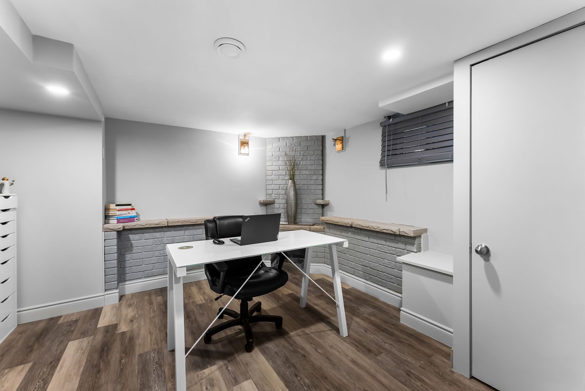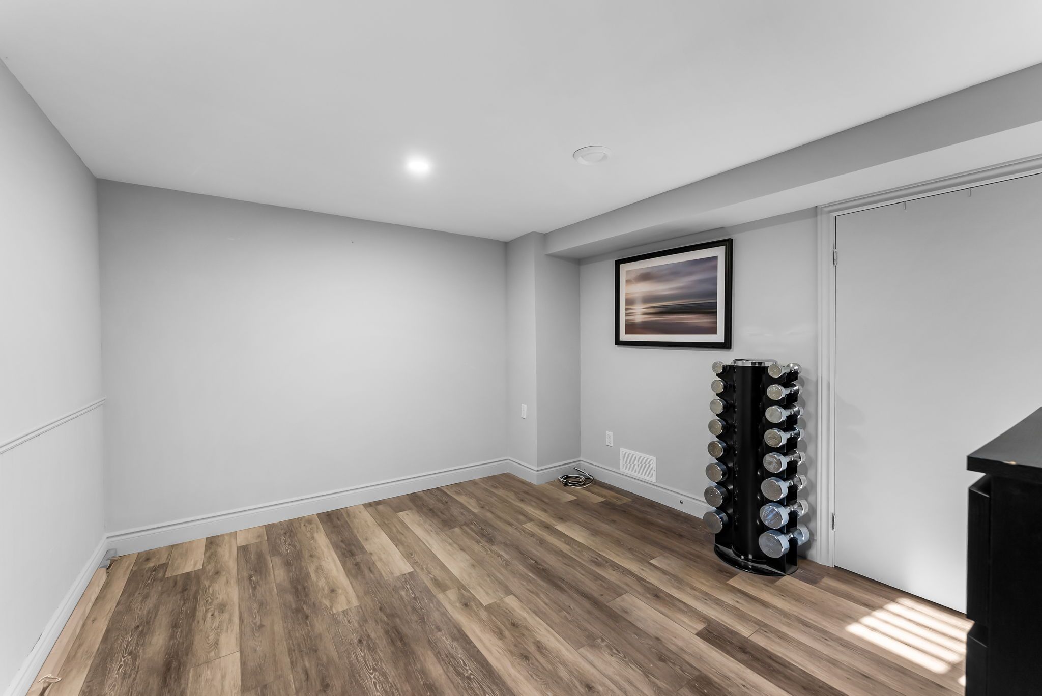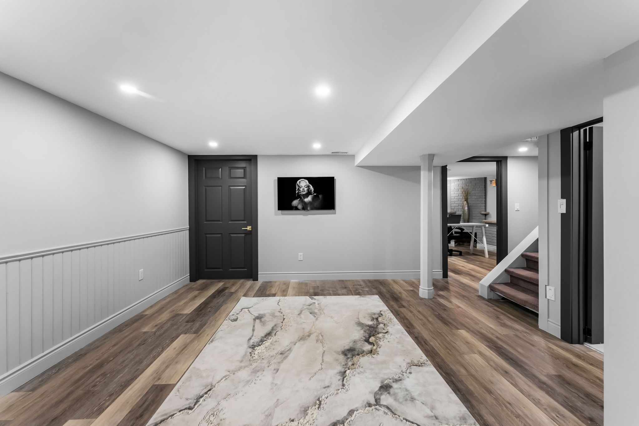 • Luxury engineered hardwood flooring and custom staircase enhance the stylish interior.