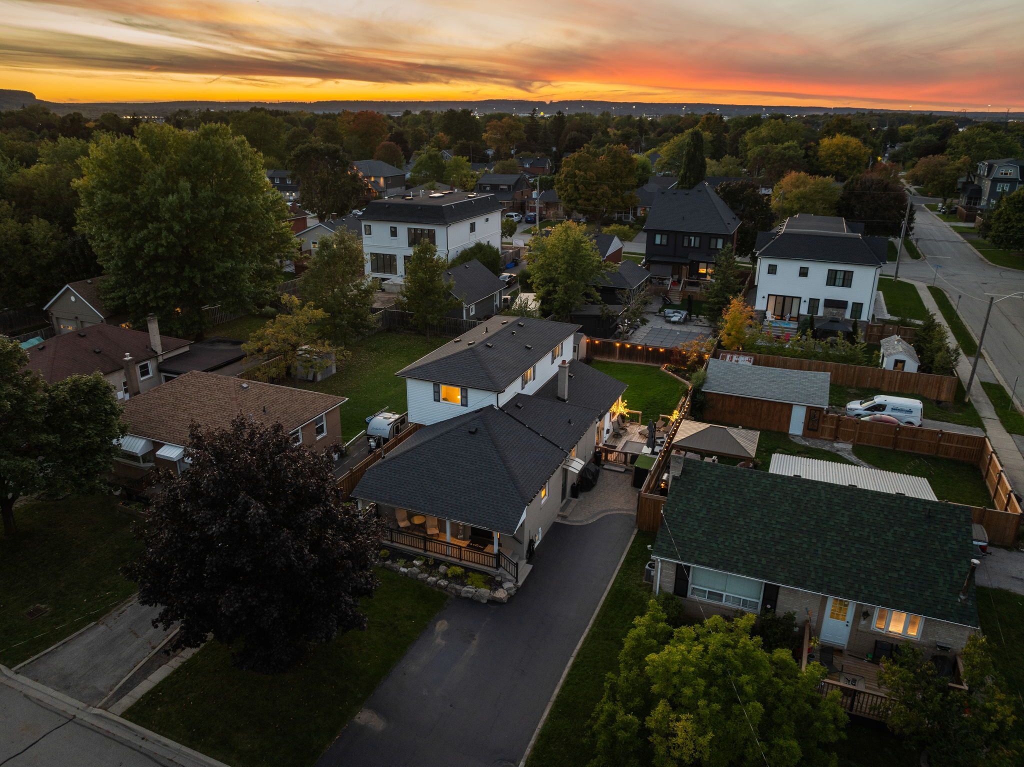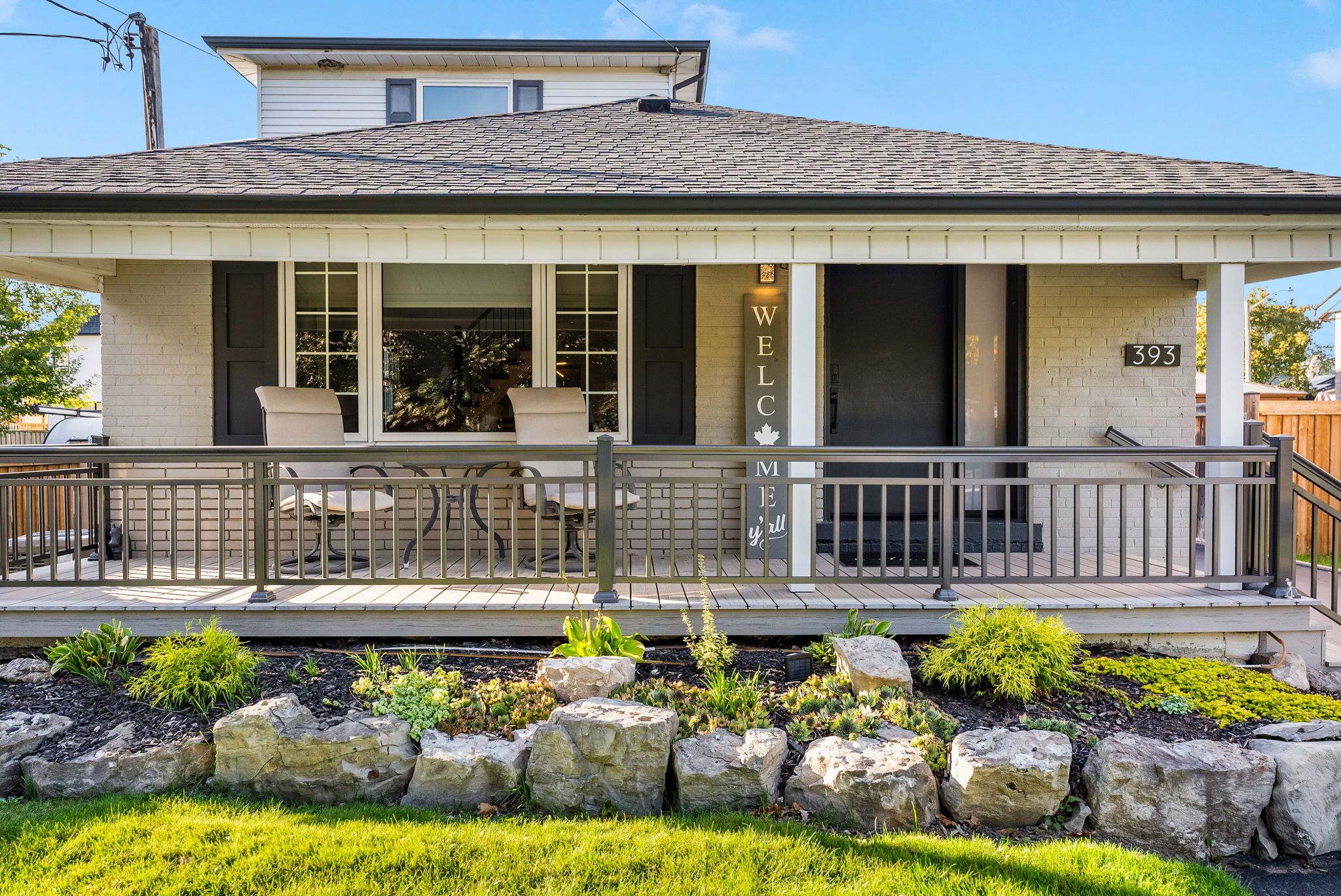 Team tiger proudly presents 393 george street, milton a stunning designer-inspired residence that blends luxury craftsmanship, modern comfort, and timeless sophistication in one of milton's most established neighbourhoods. Every detail has been meticulously curated to create a home that radiates style, function, and warmth. Step inside to discover luxury large-plank hickory engineered hardwood flooring (2023) that flows seamlessly throughout the main and upper levels, complemented by a custom hardwood-capped staircase with wrought iron railings (2025). The living area is anchored by a 56" continental linear gas fireplace framed with italian 24"x48" rebel porcelain tile, surrounded by custom built-in cabinetry with ambient lighting (2024) the perfect setting for elegant entertaining or quiet evenings at home. The primary ensuite redefines spa-like indulgence with heated italian porcelain floors, a floating vanity, backlit mirror, grohe wall-mounted toilet, custom glass shower, and vogt drava collection fixtures every element designed for refined relaxation. Additional bathrooms mirror this design quality with premium porcelain tile, floating vanities, textured accent walls, and modern backlit mirrors (2025). Enjoy effortless comfort with custom window treatments, motorized sunroom shades, upgraded 200-amp electrical (2024), beam sc375 central vacuum (2024), fusion 2 water softener (owned, 2024), and gas bbq connection. The roof (2020) and upgraded front porch (2022) add further peace of mind and curb appeal. The lower level offers a beautifully finished bathroom with custom glass shower, plus rough-ins for a laundry area and wet bar or kitchenette, offering endless potential for future expansion or in-law accommodations. Located steps from milton's charming downtown core, parks, schools, and amenities, this exceptional home combines high-end finishes with a warm, inviting atmosphere the hallmark of thoughtful design.