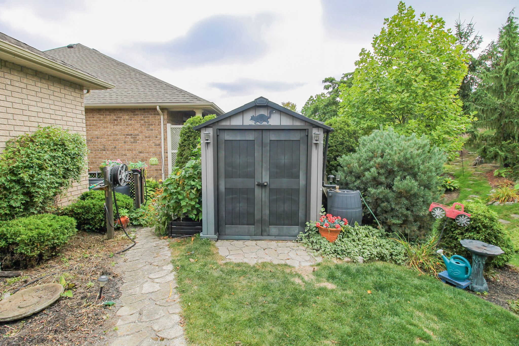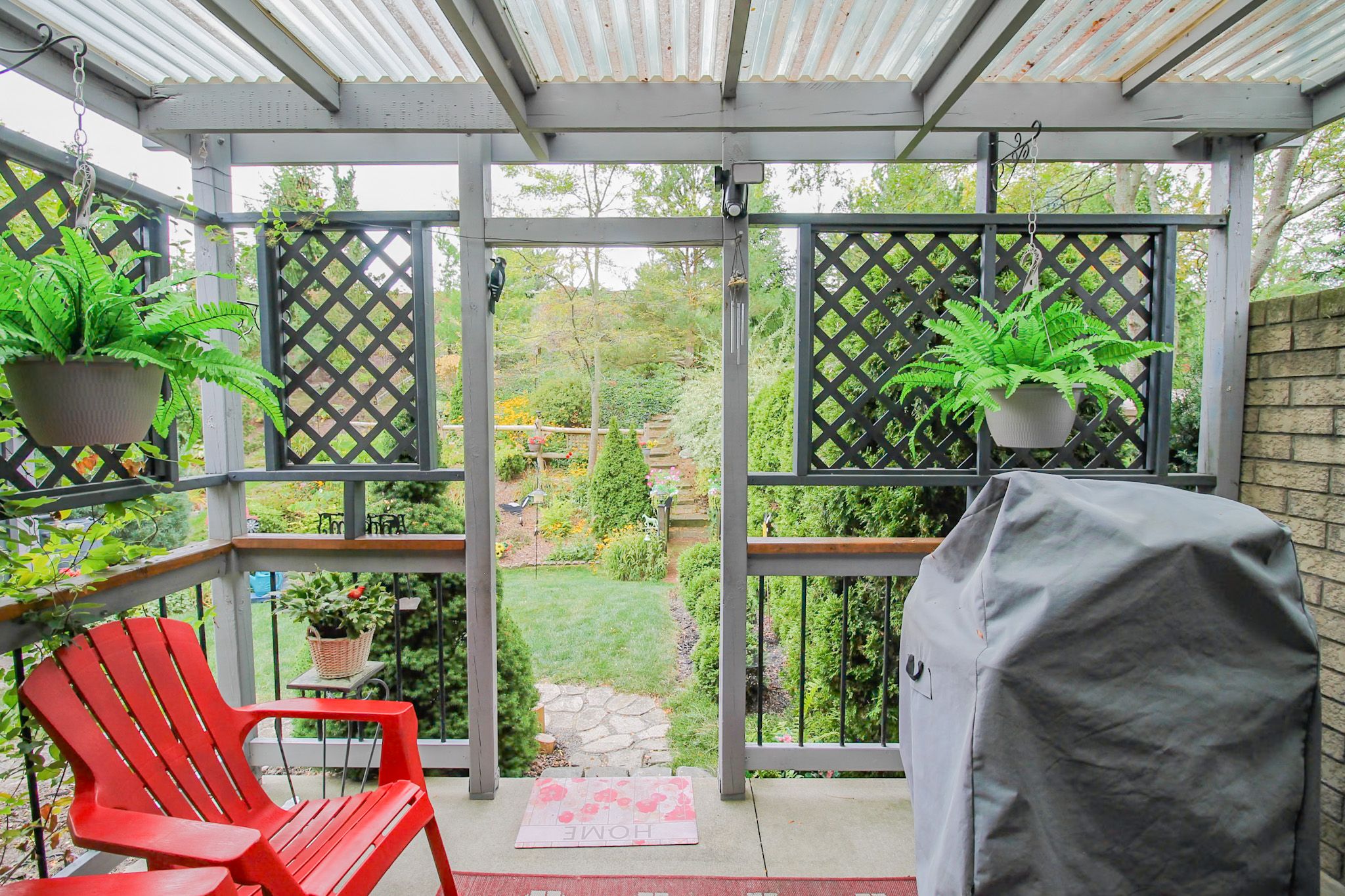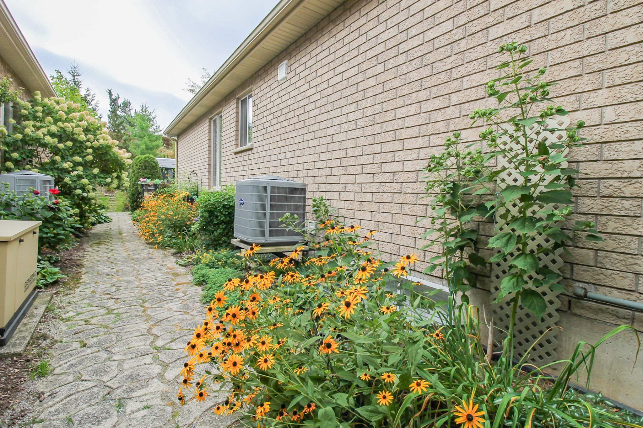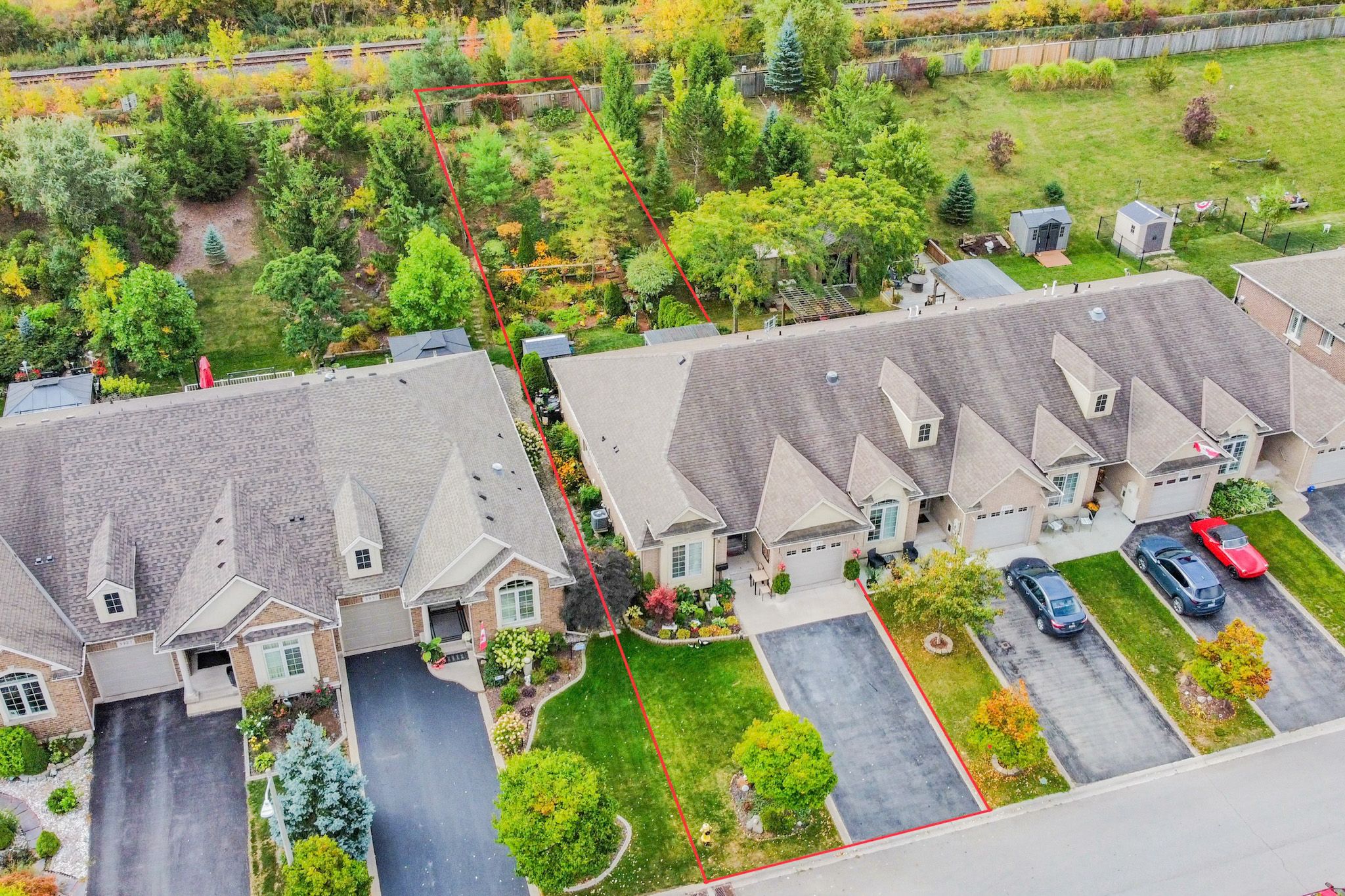 Executive end-unit freehold townhouse! This bungalow style townhouse was built in 2007 with a comfortable and functional design. Huge lot backs onto a train track, but you'd never know with the hill covered the sight and sounds. Instead, walk out to a true backyard oasis, full of variety of trees, plants, flowers, and garden structures. The view never gets old.. It's a nature-lover's dream! The house itself features 2+1 bedrooms, 2 bathrooms, open concept main floor area, finished basement recreation room & a handyman's workshop. Not to mention an attached single car garage. First bedroom is presently used as an office, but has a closet for multi-usage. Note the beautiful walnut flooring! Custom kitchen complete with stainless steel appliances, and built-in pantry closet. Open concept dining room & living room combo leading from the kitchen, a warm and bright space for the full family + guests. Build-in tv hook ups, gas fireplace, hardwood flooring, and direct access to covered back patio. Huge primary bedroom on the main floor, conveniently located next to the 4-piece bathroom. Stand-up freezer in the closet (included), also has hookups for a stackable laundry unit. Basement is fully finished with a carpeted recreation room featuring another built-in gas fireplace and extra large windows. 3rd bedroom generous in size, as well as a 3-piece bathroom. Basement laundry/mechanical room leads to a great workshop. 100amp breakers. Furnace & central air - 2021. Lots of value packed into the amazing property in stevensville. Great for a professional couples, retirees, or small family. Lots of furnishings and additional inclusions available.