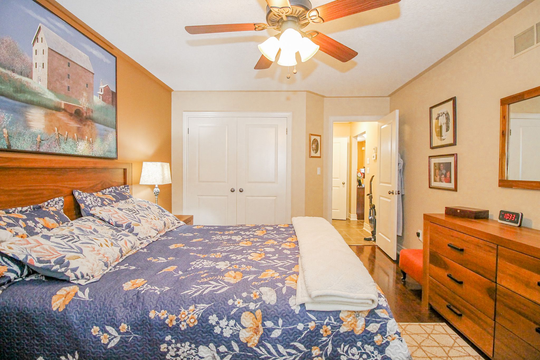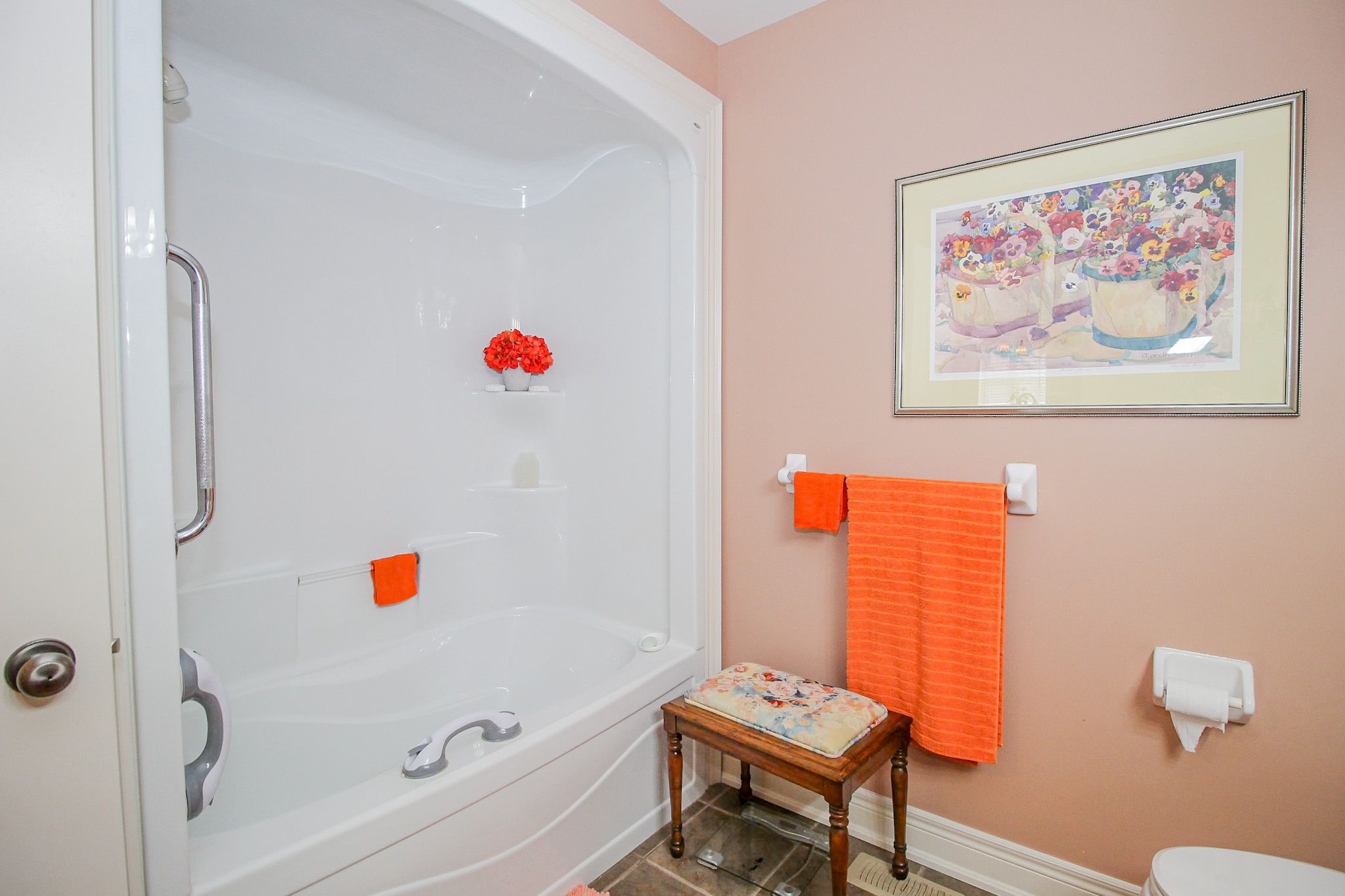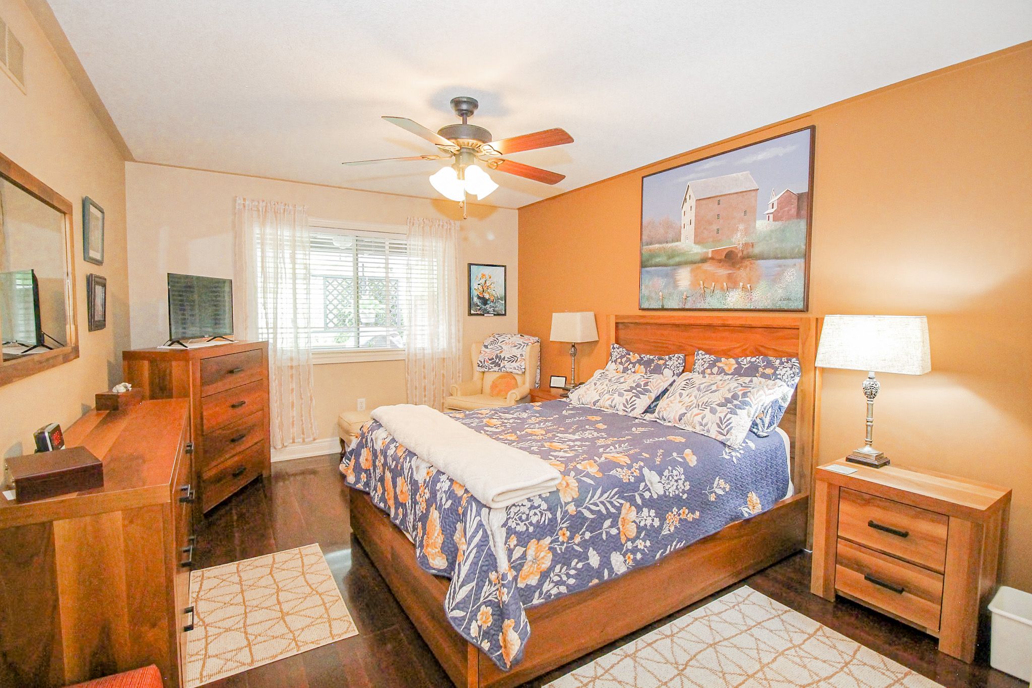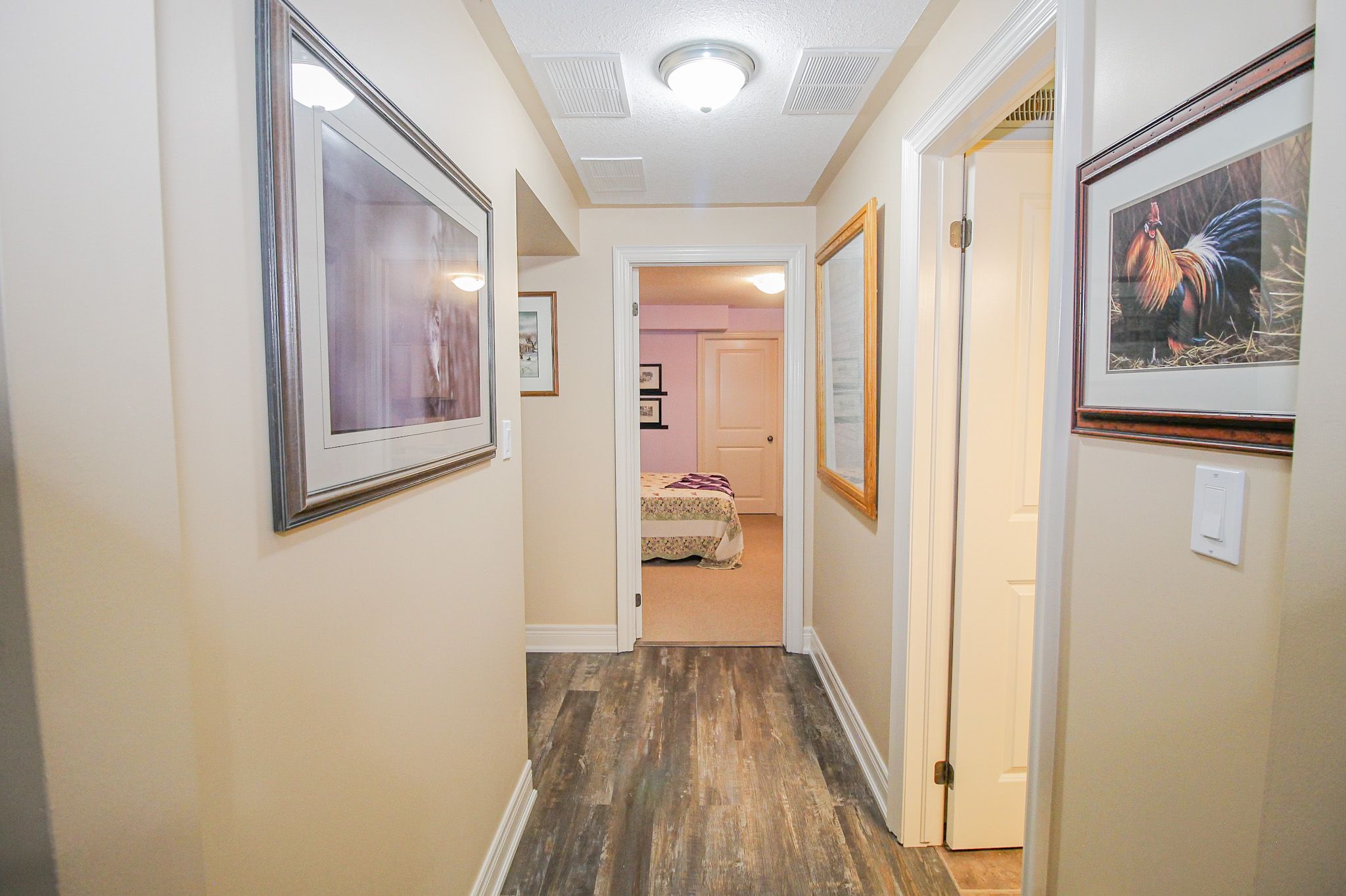 Executive end-unit freehold townhouse! This bungalow style townhouse was built in 2007 with a comfortable and functional design. Huge lot backs onto a train track, but you'd never know with the hill covered the sight and sounds. Instead, walk out to a true backyard oasis, full of variety of trees, plants, flowers, and garden structures. The view never gets old.. It's a nature-lover's dream! The house itself features 2+1 bedrooms, 2 bathrooms, open concept main floor area, finished basement recreation room & a handyman's workshop. Not to mention an attached single car garage. First bedroom is presently used as an office, but has a closet for multi-usage. Note the beautiful walnut flooring! Custom kitchen complete with stainless steel appliances, and built-in pantry closet. Open concept dining room & living room combo leading from the kitchen, a warm and bright space for the full family + guests. Build-in tv hook ups, gas fireplace, hardwood flooring, and direct access to covered back patio. Huge primary bedroom on the main floor, conveniently located next to the 4-piece bathroom. Stand-up freezer in the closet (included), also has hookups for a stackable laundry unit. Basement is fully finished with a carpeted recreation room featuring another built-in gas fireplace and extra large windows. 3rd bedroom generous in size, as well as a 3-piece bathroom. Basement laundry/mechanical room leads to a great workshop. 100amp breakers. Furnace & central air - 2021. Lots of value packed into the amazing property in stevensville. Great for a professional couples, retirees, or small family. Lots of furnishings and additional inclusions available.