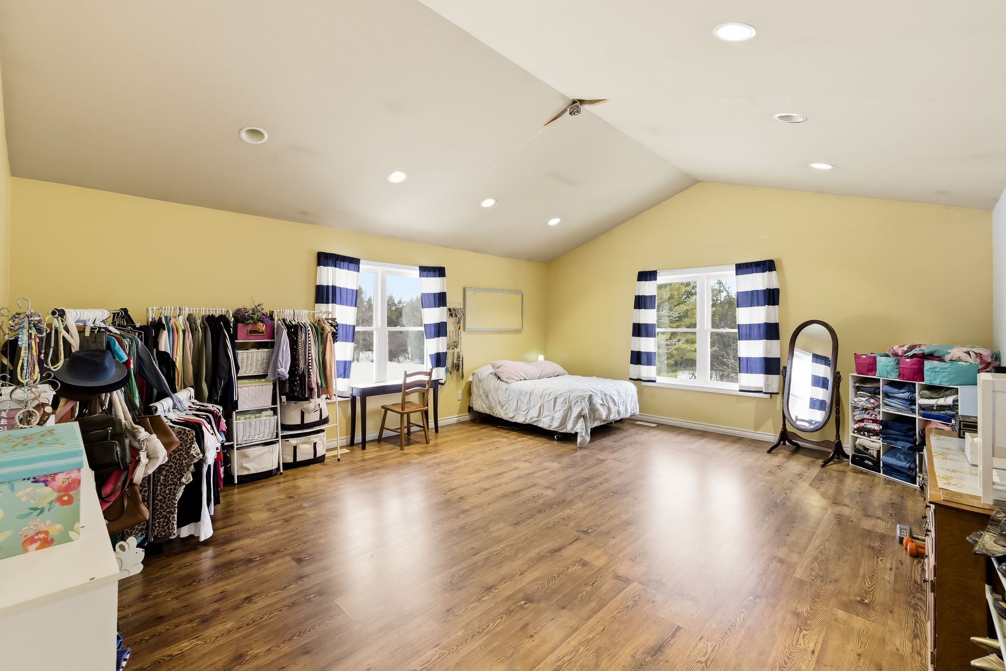 • Massive vaulted bonus room upstairs offers extra living space and potential.