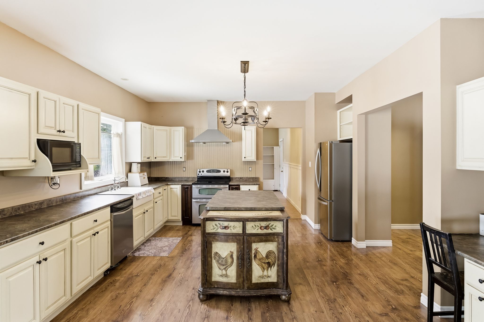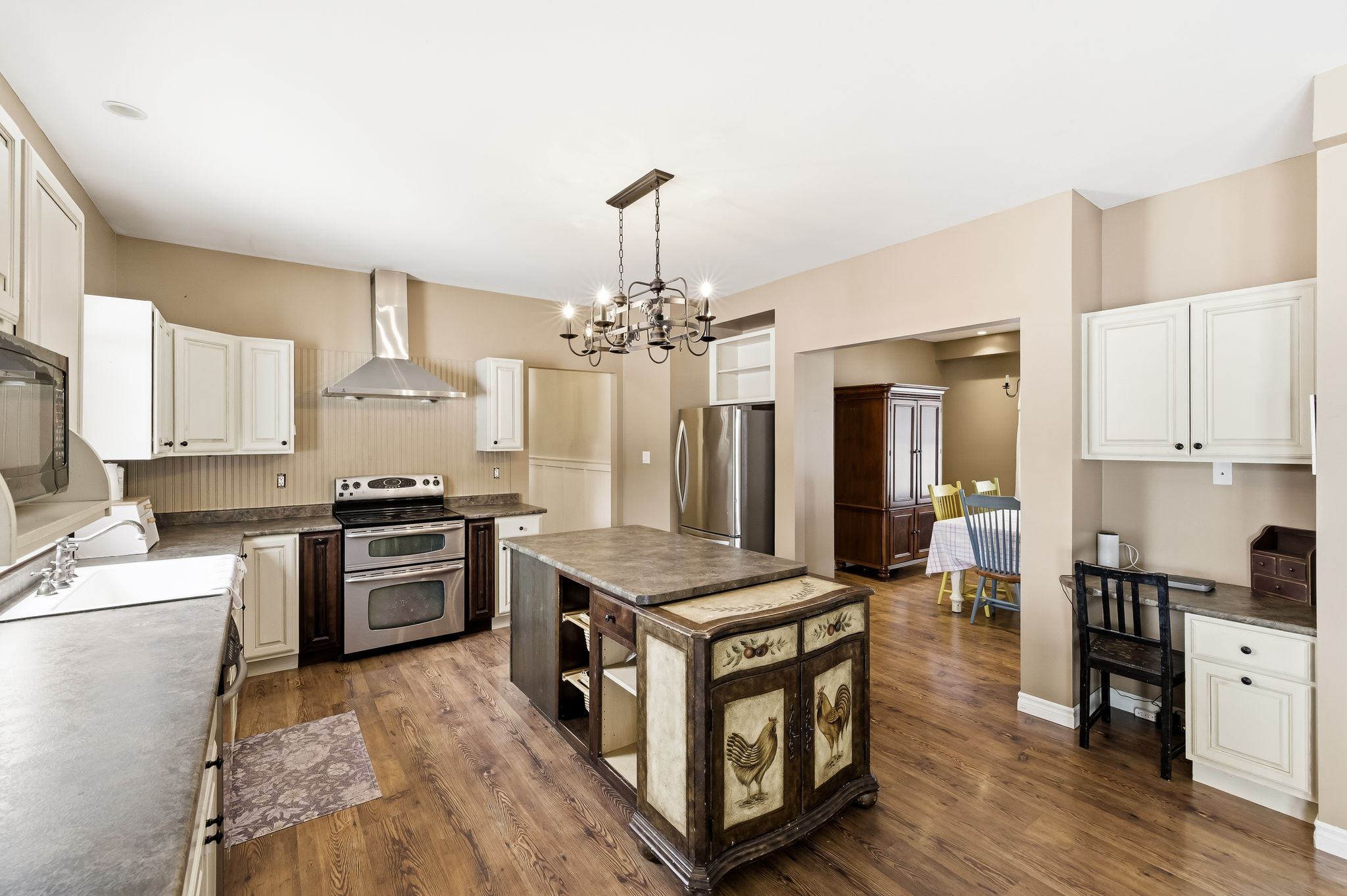 • Bright main floor features a large country kitchen and sun-filled living room.