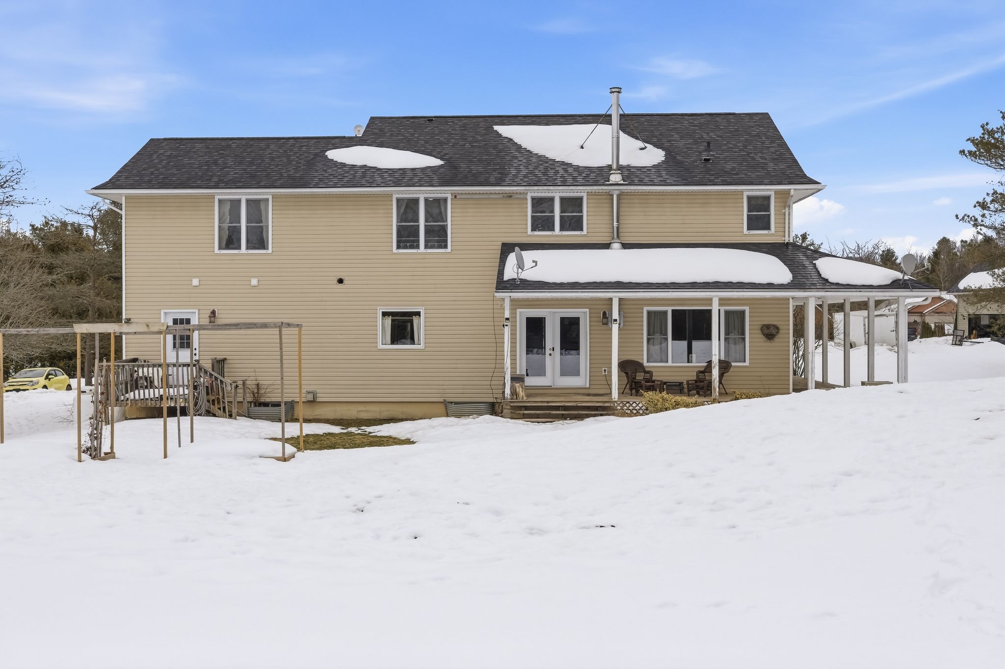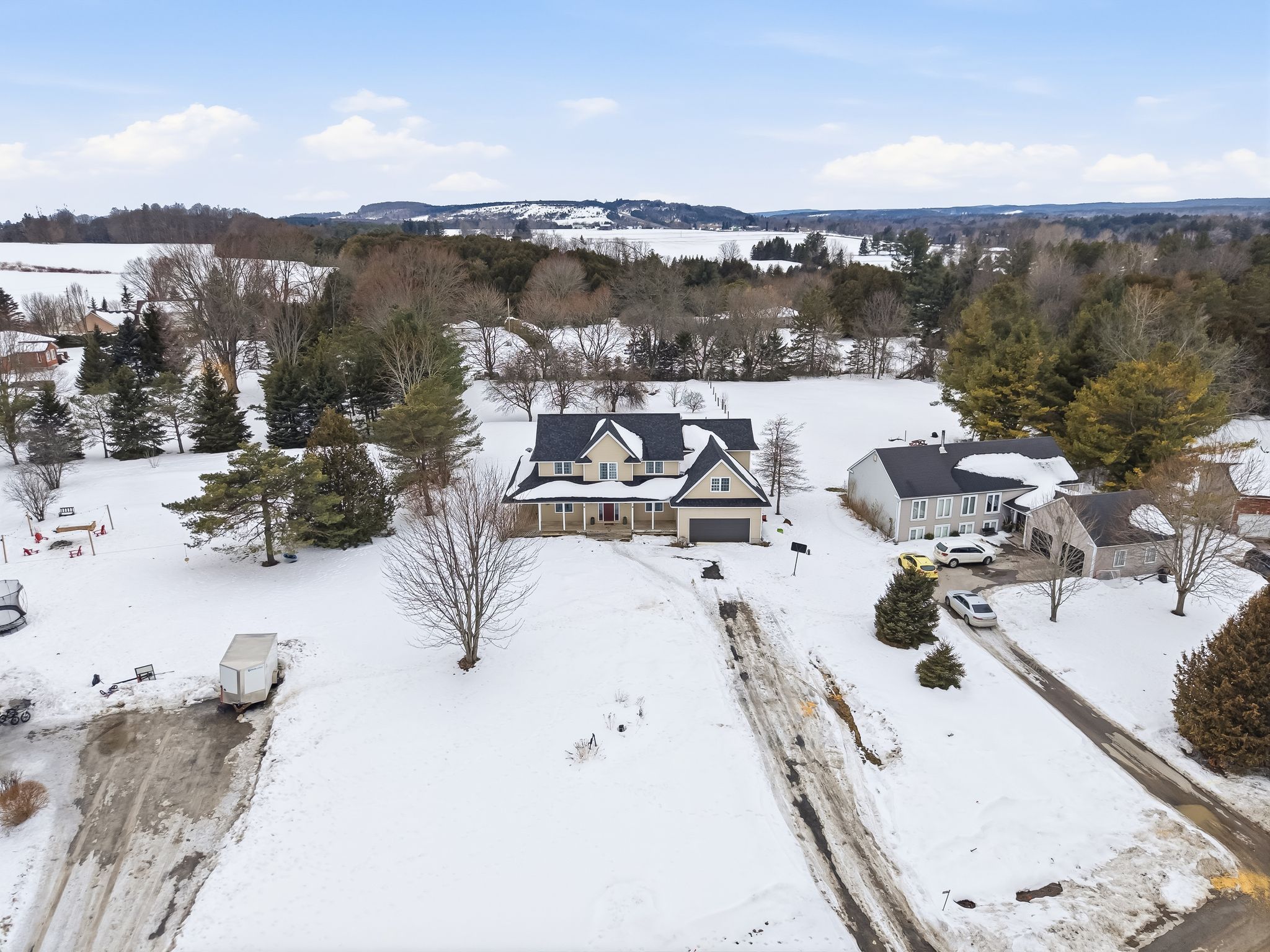Welcome to 3937 larose crescent in the sought-after garden hill community, where location, layout, and lot come together on nearly an acre of peaceful rural living. This spacious two storey home features a charming wraparound porch and attached double garage. The bright main floor centers around a large country kitchen with walkout to the back deck, flowing into the sun-filled living room. On this level, you'll also find a formal dining room, pantry, powder room, and a convenient laundry/mudroom with access to both the garage and backyard. A versatile bonus room completes this level and is perfect for a guest bedroom or executive home office. Upstairs offers generous space, including a primary bedroom with 4-piece ensuite, two additional large bedrooms, a second full bath with double vanity, and a massive vaulted bonus room ideal as an additional living area, playroom, or extra bedroom. An unfinished basement with high ceilings provides endless potential to create even more living space.