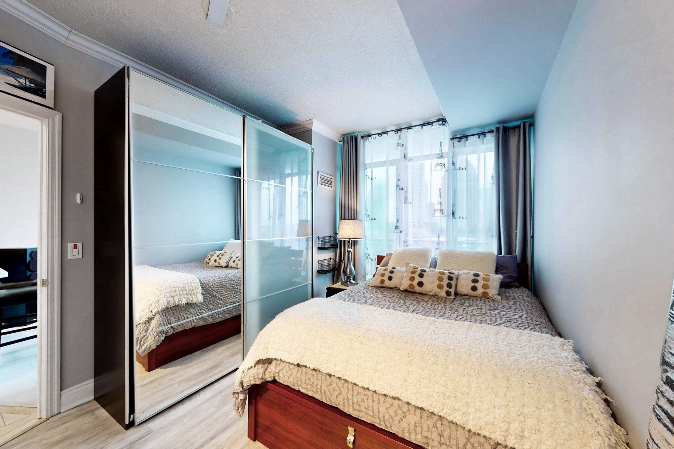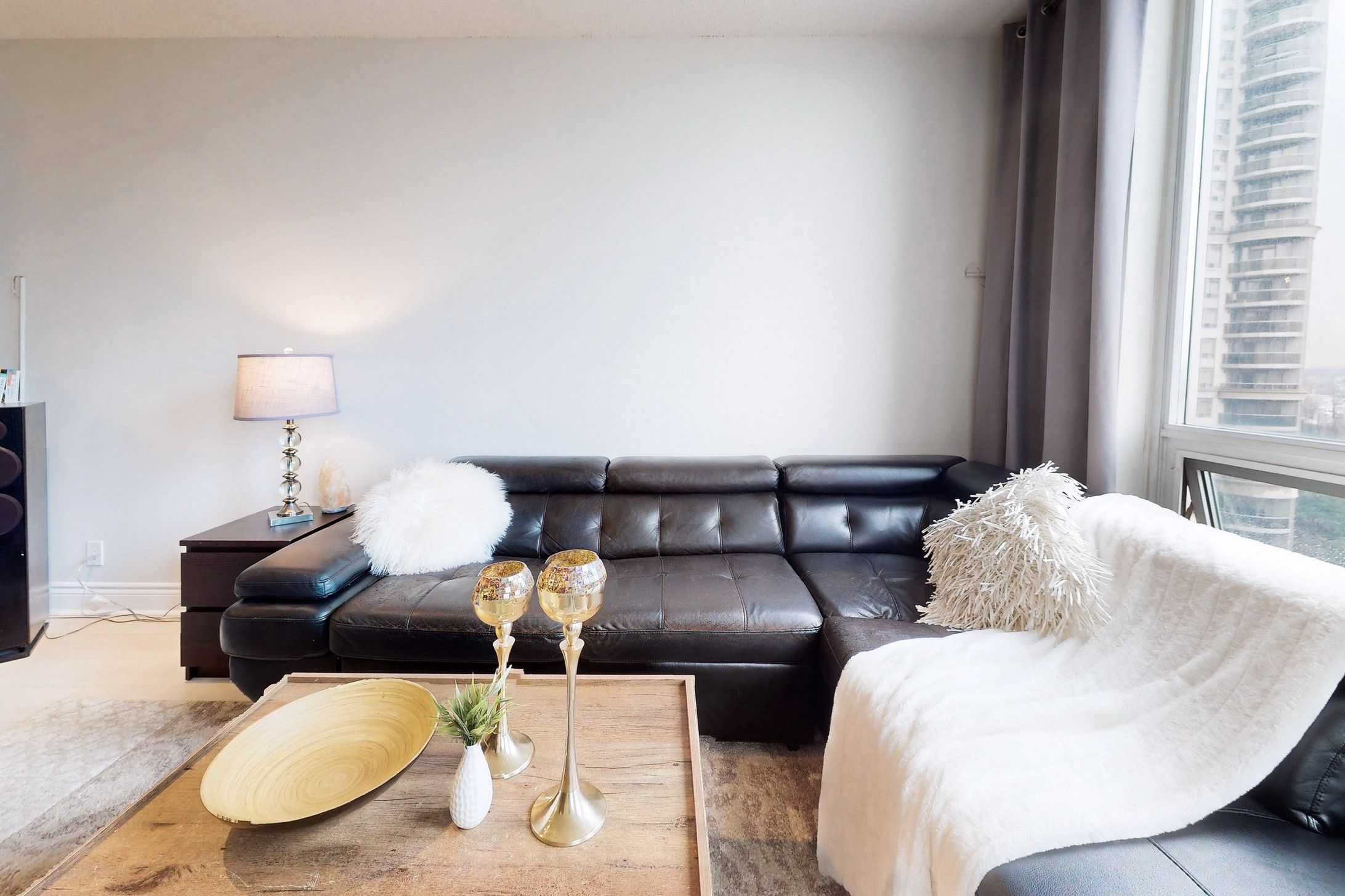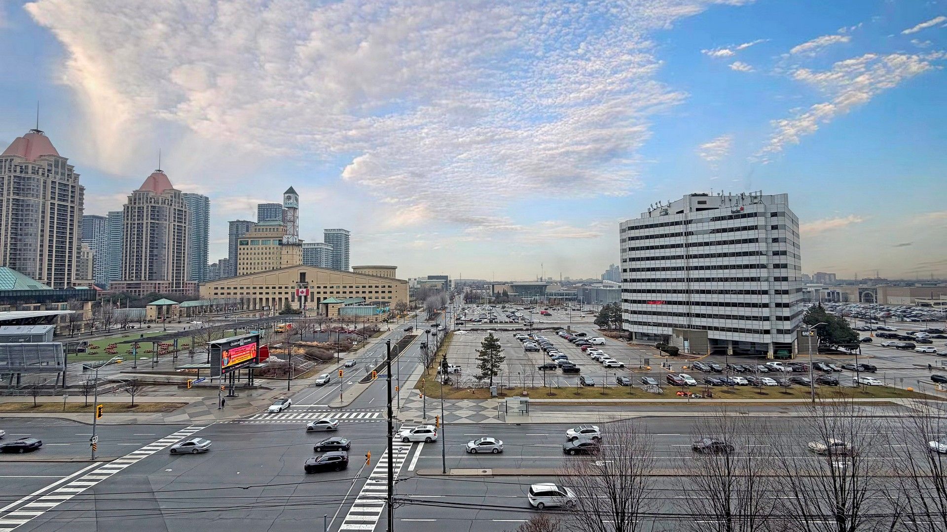 Rarely offered sophisticated 1-bedroom + 2 dens + 2 washrooms upgraded condominium apartment offering elevated urban living in the beautiful and elegant iconic city gate 1, ideally situated in the heart of premium downtown mississauga. This stunning 783sf suite features breathtaking, unobstructed views overlooking celebration square from both the living room and the spacious private balcony, along with a sleek modern design, highly functional open-concept layout, and soaring 9-foot ceilings. The fully renovated kitchen is thoughtfully designed with abundant storage space, quartz countertops, a breakfast bar, custom porcelain tile flooring, backsplash, and built-in modern graphite stainless steel appliances. The spacious primary bedroom includes a 4-piece ensuite, generous his-and-hers closets, an additional freestanding mirrored closet, and floor-to-ceiling windows with beautiful views. A large open den provides the perfect space for a home office or can serve as a dining area for family and entertaining. A secondary, separate and spacious enclosed den with a closet offers flexible space ideal for a second bedroom. Two bathrooms and a convenient walk-in laundry room complete this exceptional suite. Residents of city gate 1 enjoy a professionally managed building with premium amenities like an indoor swimming pool, sauna, game, exercise, meeting and party rooms, guest suites and 24-hour concierge and security, all within walking distance to square one shopping centre, celebration square, mississauga central library, ymca, sheridan college, and the living arts centre, as well as parks, dining, entertainment, and public transit nearby.*** very reasonable condo fee also includes hydro, internet and cable tv ***