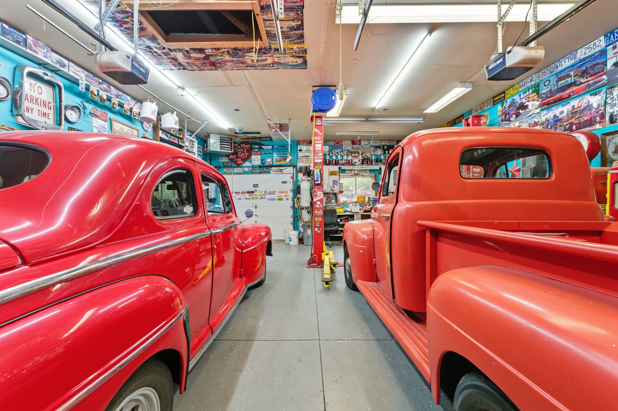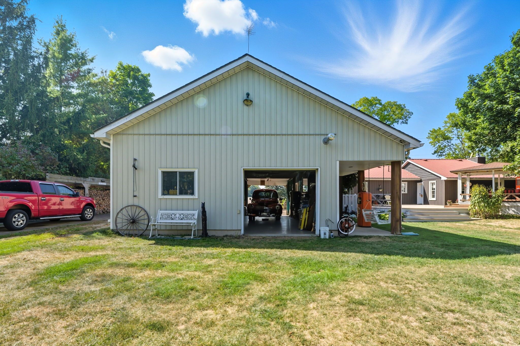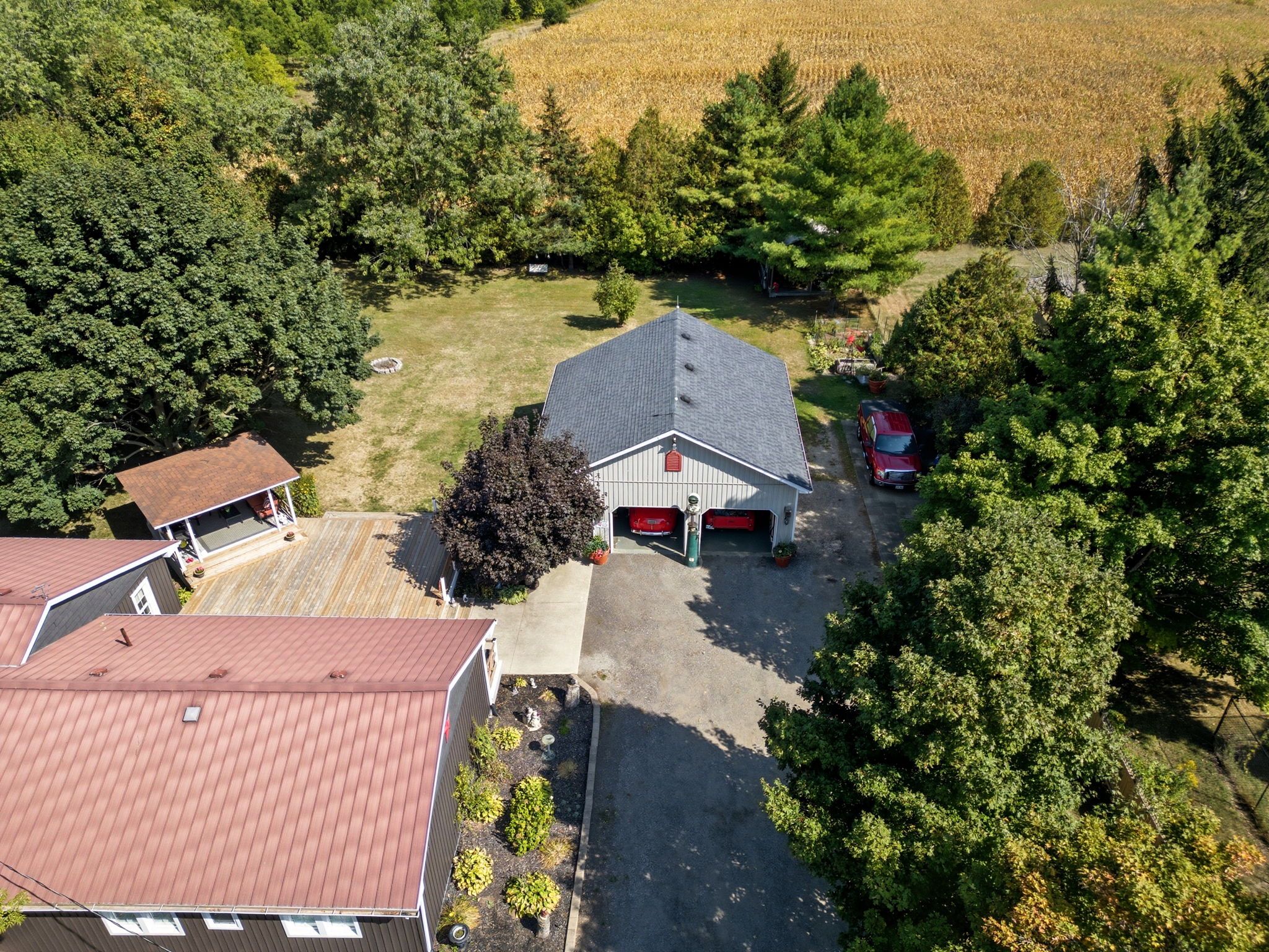 • Heated double car garage with versatile workspace for hobbyists.