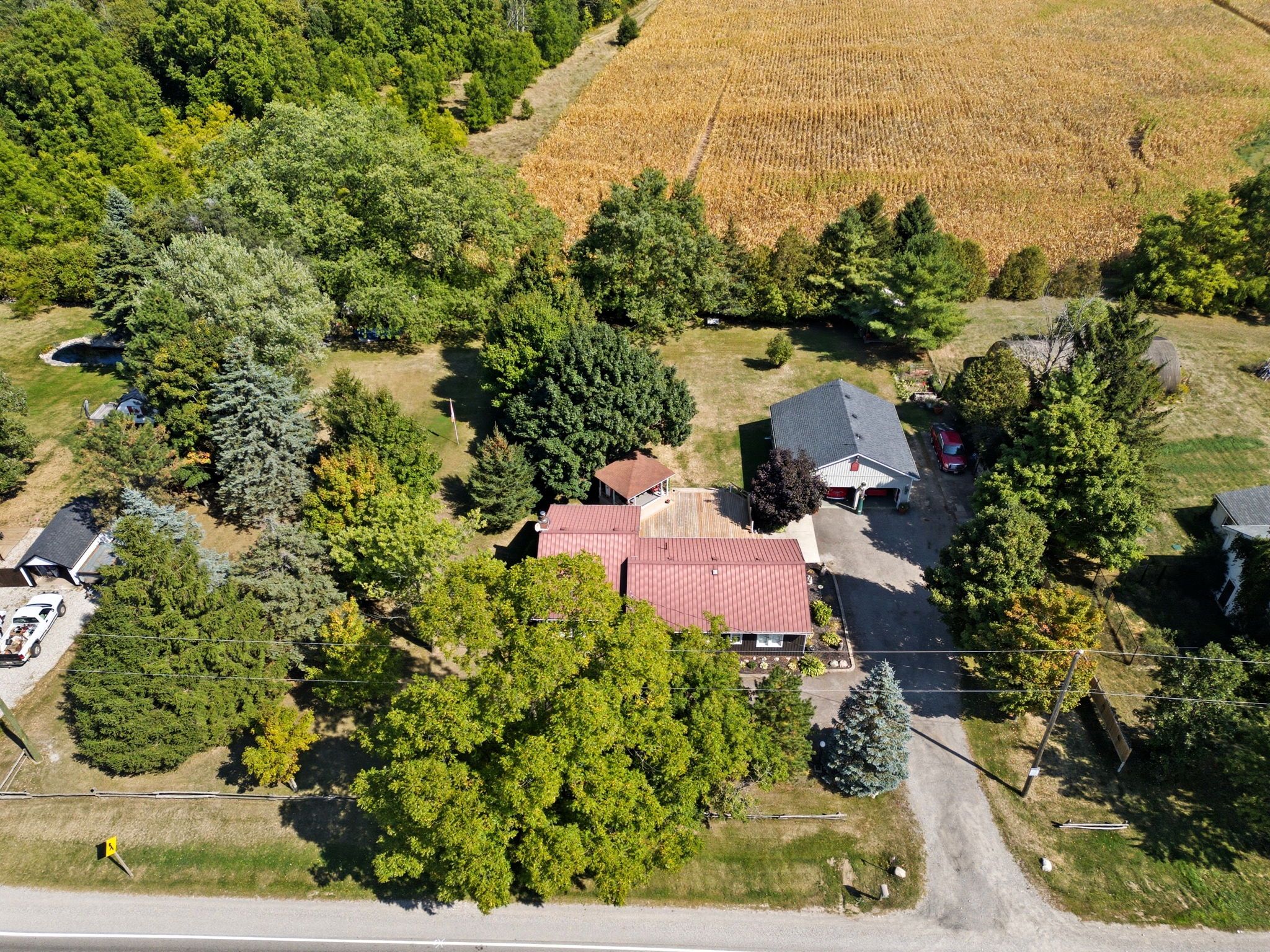 Welcome to 394 bishopgate, brantford a charming rural retreat set on a picturesque 1-acre lot. This immaculately maintained 2-bedroom bungalow exudes pride of ownership at every turn, blending comfort, functionality, and character to create the perfect place to call home. Step inside and you'll find warm pine floors throughout, adding natural beauty and rustic charm to the living spaces. The cozy fireplace, ducted to both the bedrooms and basement, provides efficient warmth and an inviting atmosphere. The home also features a spacious 4-piece bathroom, complete with a soaker standalone tub and separate shower, offering both elegance and relaxation. Outdoors, enjoy a rare and expansive deck ideal for entertaining friends and family or simply unwinding while taking in the peaceful country surroundings. One of the standout features of this property is the detached 26' x 30' heated double car garage, complete with three bay doors, and wired with 220 service a dream setup for hobbyists, mechanics, or anyone who needs a versatile workspace. All this, just minutes from brantford's city amenities, offering the best of both worlds rural tranquility and modern convenience. With its mix of rural serenity and thoughtful updates, 394 bishopgate offers more than just a home its a lifestyle.