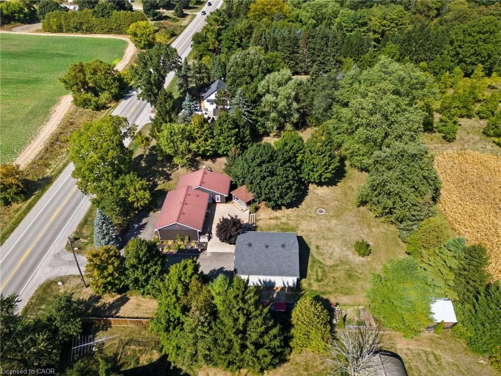 Welcome to 394 bishopgate, brantford a charming rural retreat set on a picturesque 1-acre lot. This immaculately maintained 2-bedroom bungalow exudes pride of ownership at every turn, blending comfort, functionality, and character to create the perfect place to call home. Step inside and you'll find warm pine floors throughout, adding natural beauty and rustic charm to the living spaces. The cozy fireplace, ducted to both the bedrooms and basement, provides efficient warmth and an inviting atmosphere. The home also features a spacious 4-piece bathroom, complete with a soaker standalone tub and separate shower, offering both elegance and relaxation. Outdoors, enjoy a rare and expansive deck ideal for entertaining friends and family or simply unwinding while taking in the peaceful country surroundings. One of the standout features of this property is the detached 26' x 30' heated double car garage, complete with three bay doors, and wired with 220 service a dream setup for hobbyists, mechanics, or anyone who needs a versatile workspace. All this, just minutes from brantford's city amenities, offering the best of both worlds rural tranquility and modern convenience. With its mix of rural serenity and thoughtful updates, 394 bishopsgate offers more than just a home its a lifestyle.