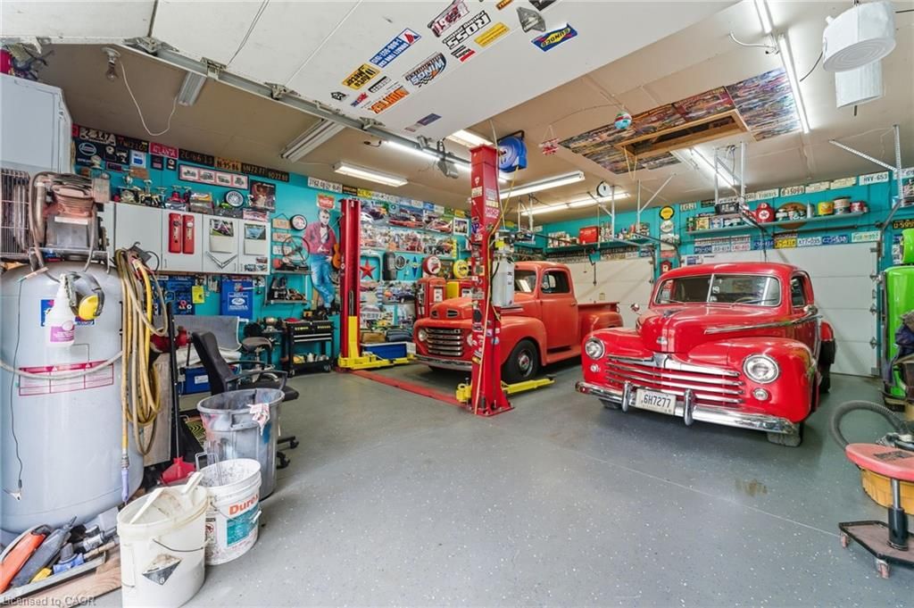 • Heated double car garage with multiple bays, great for hobbyists.