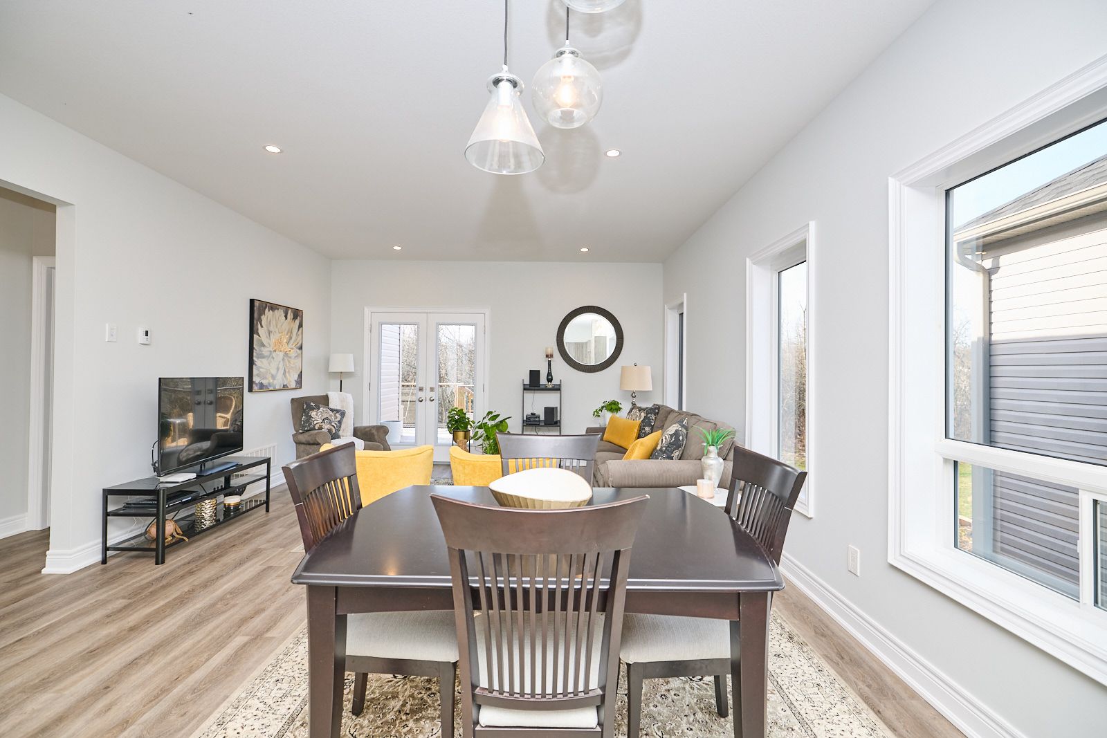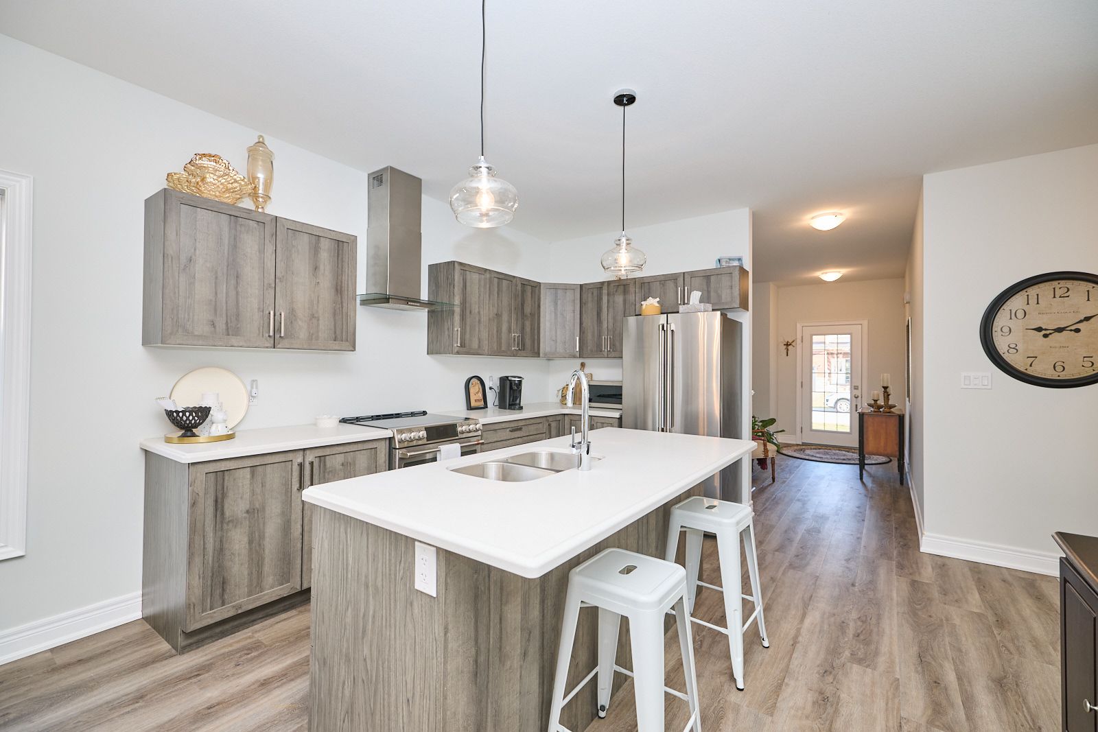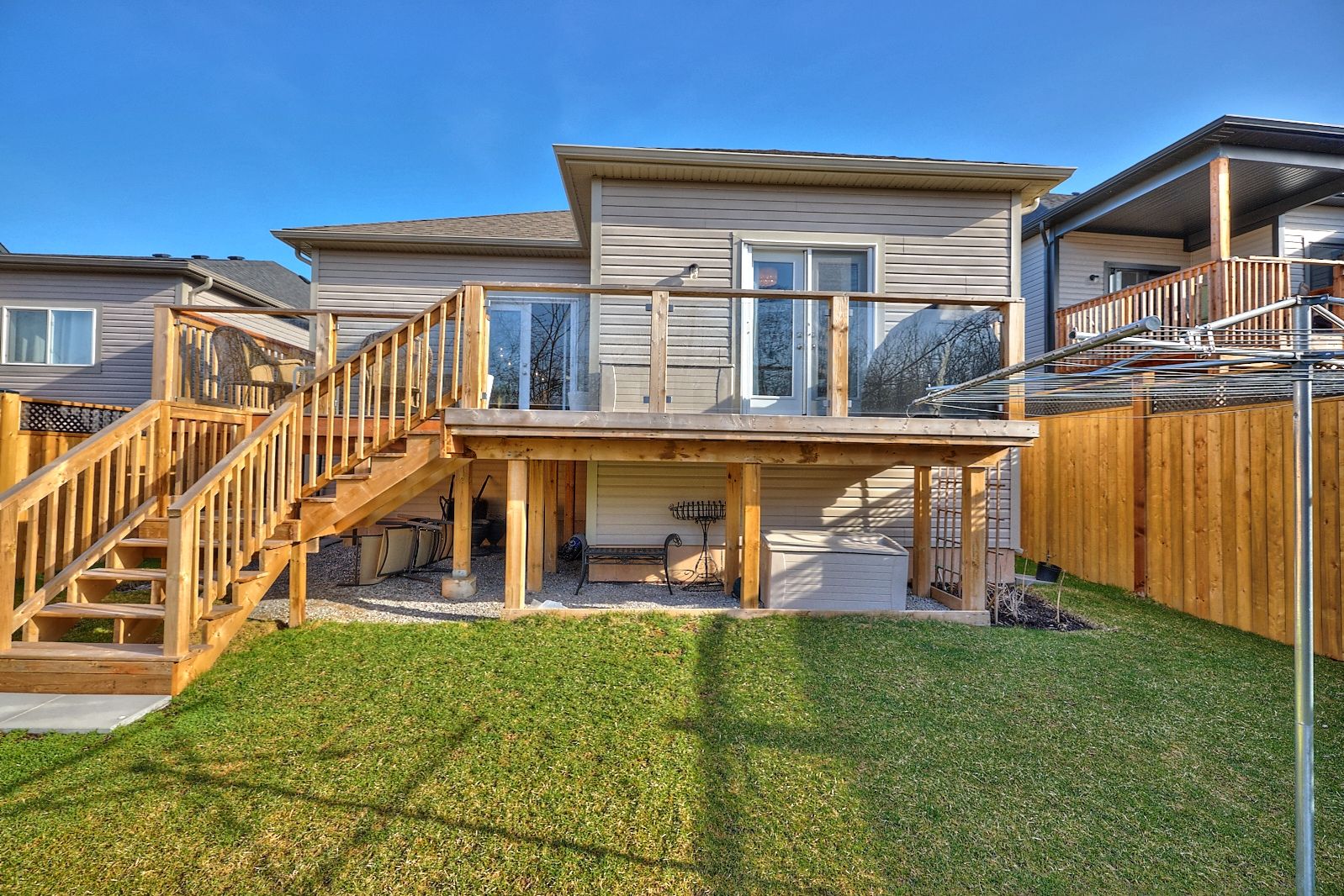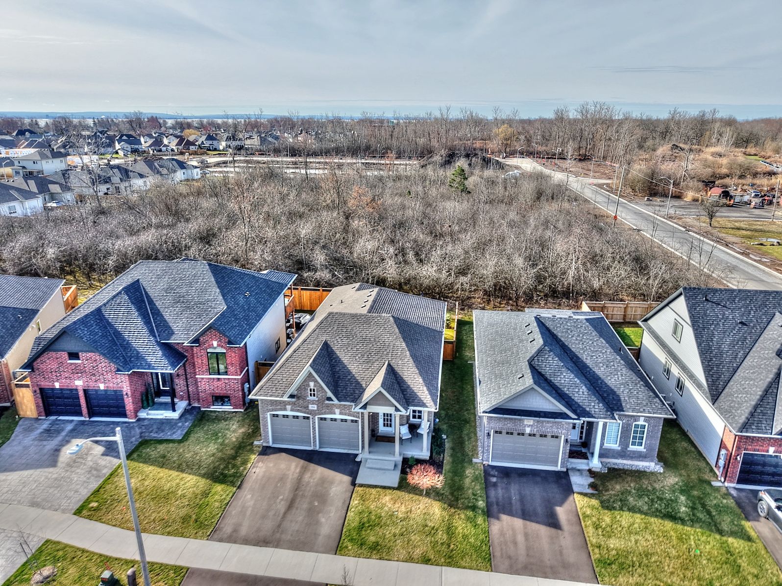 394 hummel crescent offers an inviting blend of style, functionality, and low-maintenance living in fort erie's desirable lakeshore community. This modern 1,396 sq. Ft. Bungalow is designed with a bright, open-concept layout that seamlessly connects the living, dining, and kitchen areas ideal for both everyday life and entertaining. The spacious great room features large windows and patio doors leading to the elevated rear deck, filling the space with natural light and offering a relaxed indoor-outdoor flow. The main floor offers two well-sized bedrooms and two full bathrooms. The primary bedroom includes a walk-in closet, a sleek 3-piece ensuite, and private access to the back deck. The second bedroom features soft carpeting, a large window, and ample closet space. The main 4-piece bathroom is tastefully finished with a tub and shower unit and conveniently located for guests. The kitchen boasts quartz countertops, a large centre island, stainless steel appliances, and pot lighting, making it a central gathering spot. A full laundry room with a convenient man door from the garage, a window, laundry sink, and closet adds practicality to the main floor. The unfinished basement provides plenty of storage and future development potential, with egress windows and a bathroom rough-in already in place. Outside, enjoy a covered front porch, double driveway, and attached garage with remote entry, offering space for three vehicles. The fenced backyard includes an upper-level deck, perfect for relaxing or hosting friends. Other noteworthy upgrades include central air conditioning, furnace, upgraded hardwood flooring on the stairs to the basement, a full glass front door, living room pot lights, and two lights over the kitchen island. Located minutes from the qew, local parks, trails, and shopping, this home is an ideal fit for anyone seeking comfort, convenience, and modern living in a peaceful neighbourhood.