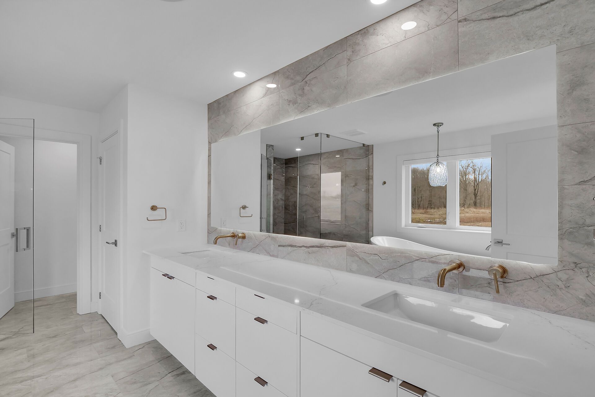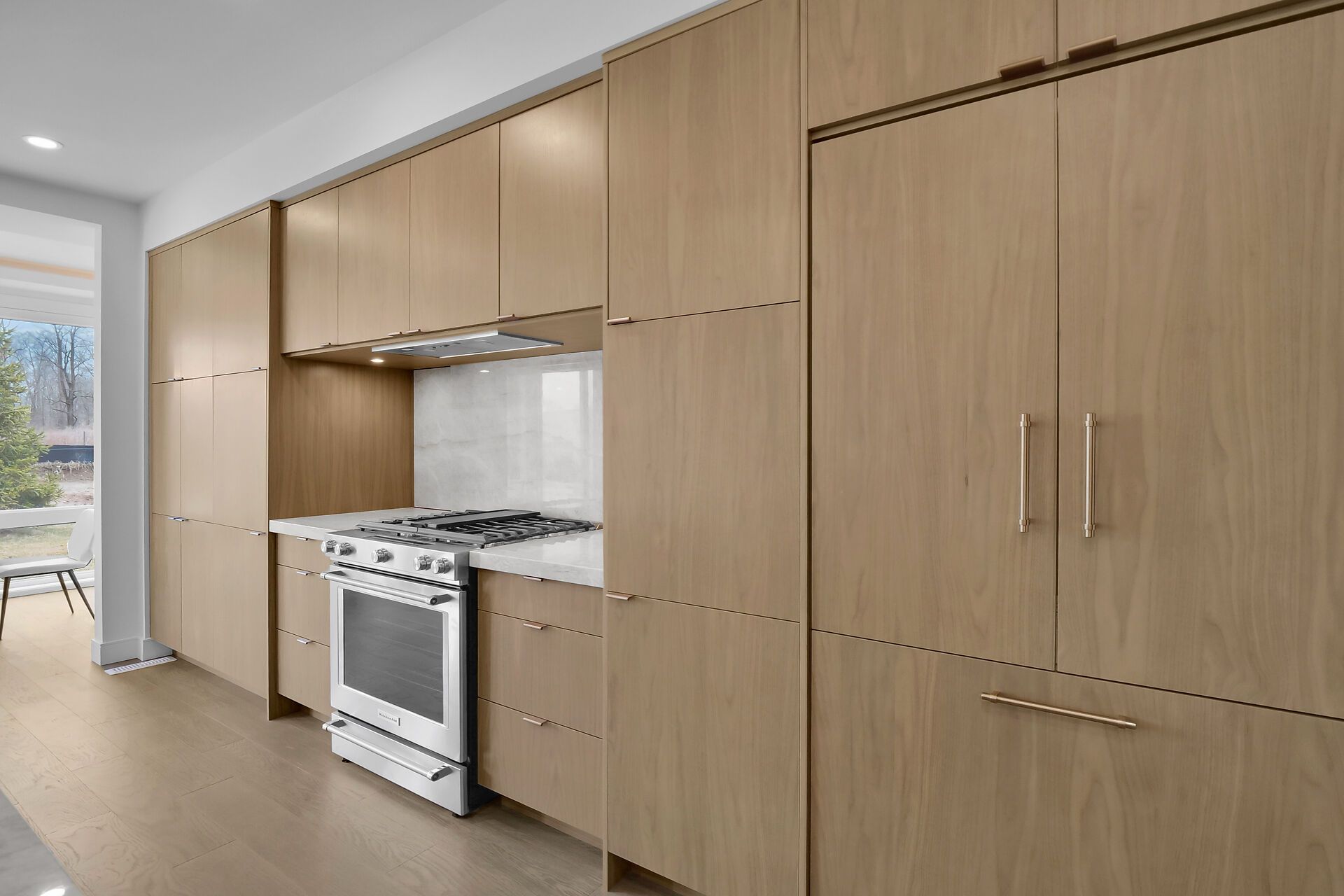• Luxurious kitchen with custom cabinetry and premium quartz countertops.