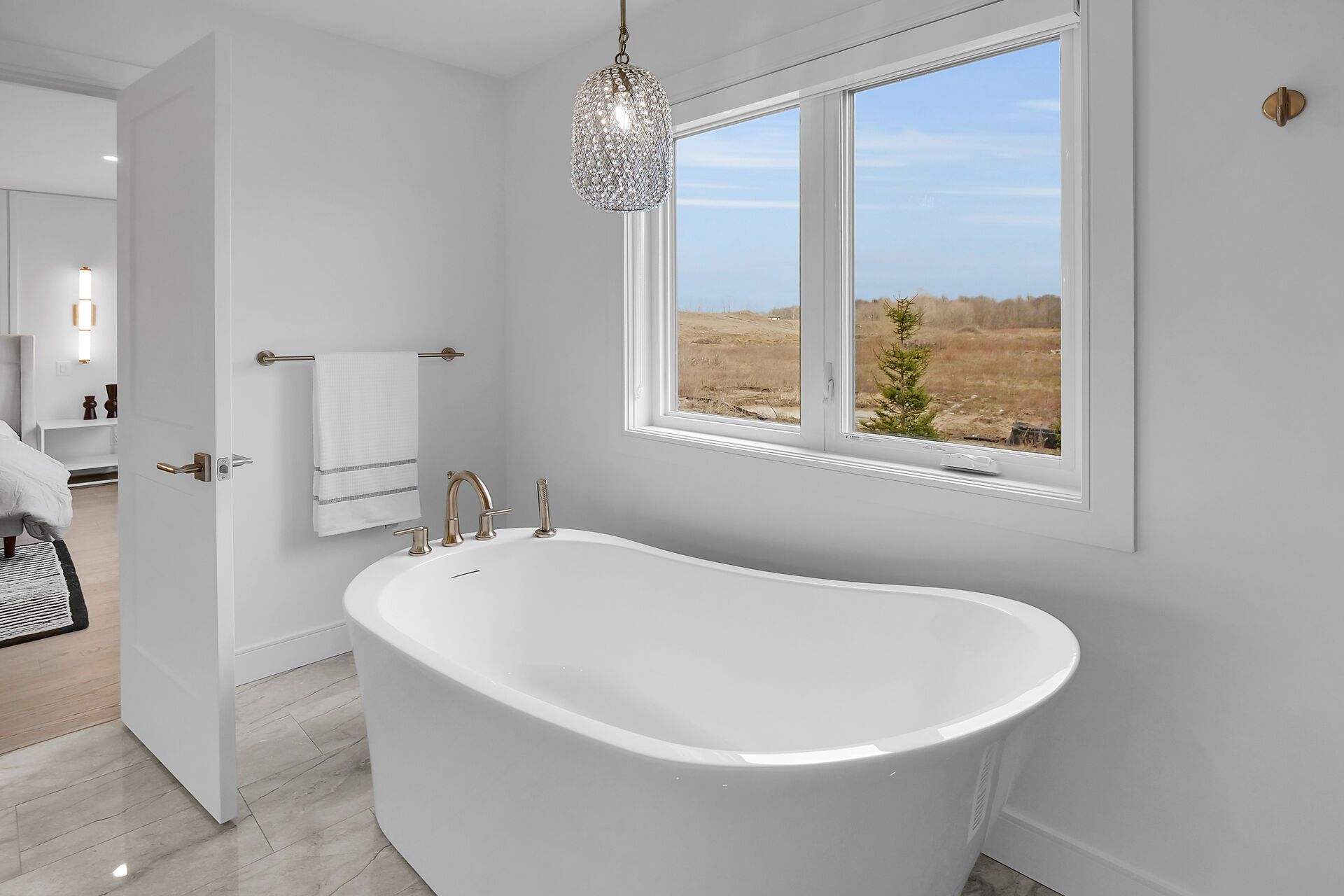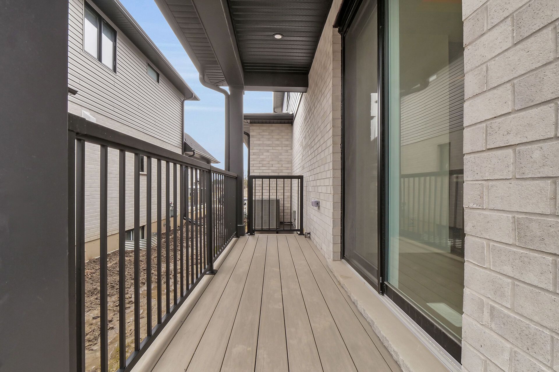 Welcome to forest homes 2,528 sq ft model home of premium living space in the sought-after heathwoods community. Come in and be greeted by a spacious and light-filled foyer that seamlessly flows into the open-concept living area. At the heart of the home is the luxurious kitchen, where custom cabinetry meets premium quartz countertops. The large central island, complete with a breakfast bar, is perfect for both entertaining and casual meals. Adjacent to the kitchen is the expansive family room, bathed in natural light as well as the dining room with a convenient patio slider, leading out to the covered back deck. Upstairs, you'll find four generously sized bedrooms, accompanied by two well-appointed bathrooms. A jack & jill style bathroom connects two of the bedrooms, adding a functional and stylish touch. The primary suite is a true sanctuary, featuring a spacious walk-in closet and a luxurious 6-piece ensuite. Here, indulge in a beautifully tiled shower with a glass enclosure, a large bath, double sinks, and elegant quartz countertops. The upper level also includes the added convenience of an in-house laundry room. Outside, the stamped paver stone driveway leads to a double car garage with direct access to the home. This property blends modern design with thoughtful details, creating the perfect space to call home. Make it yours today!