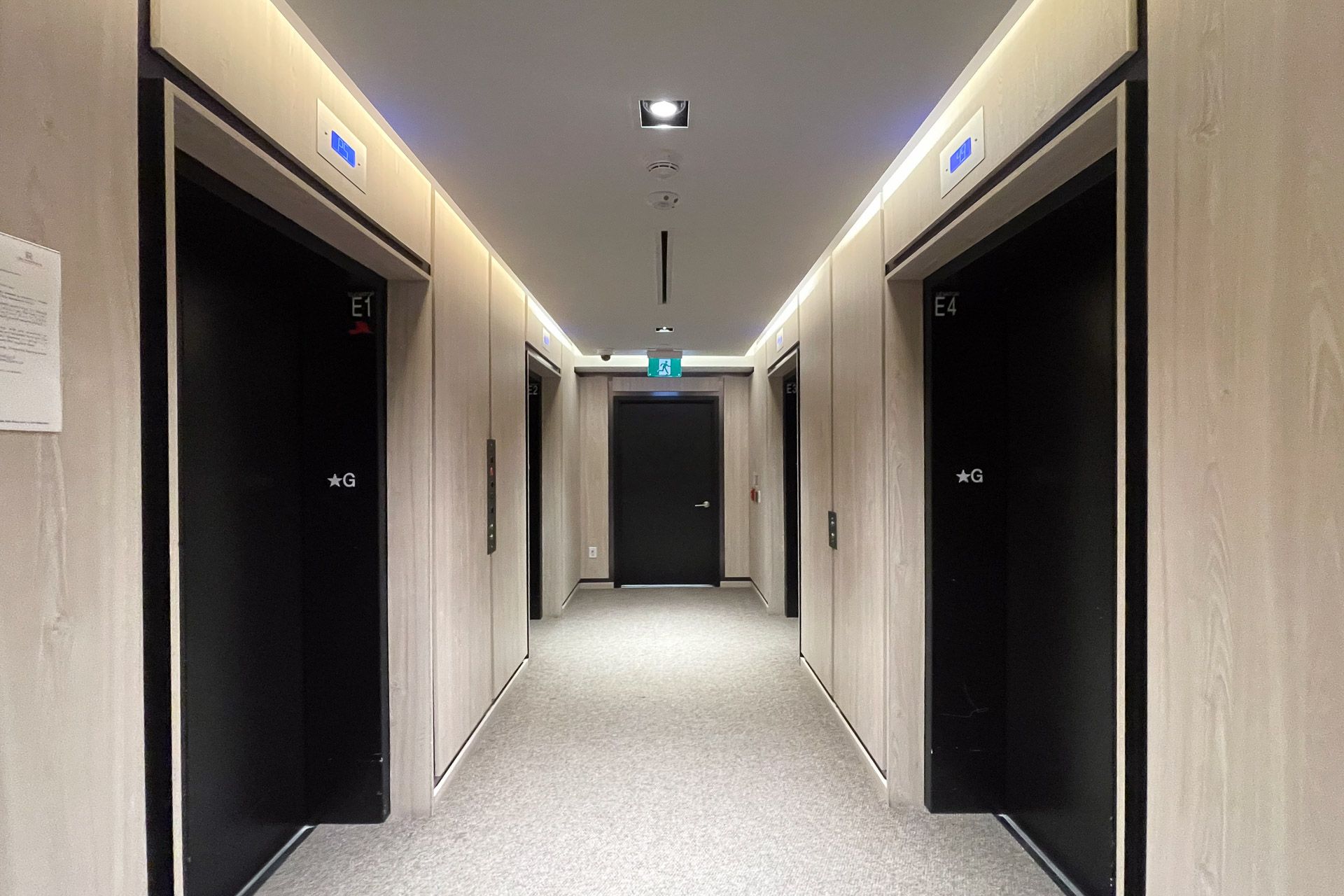 • Amenities include an indoor pool, fitness center, and rooftop terrace.