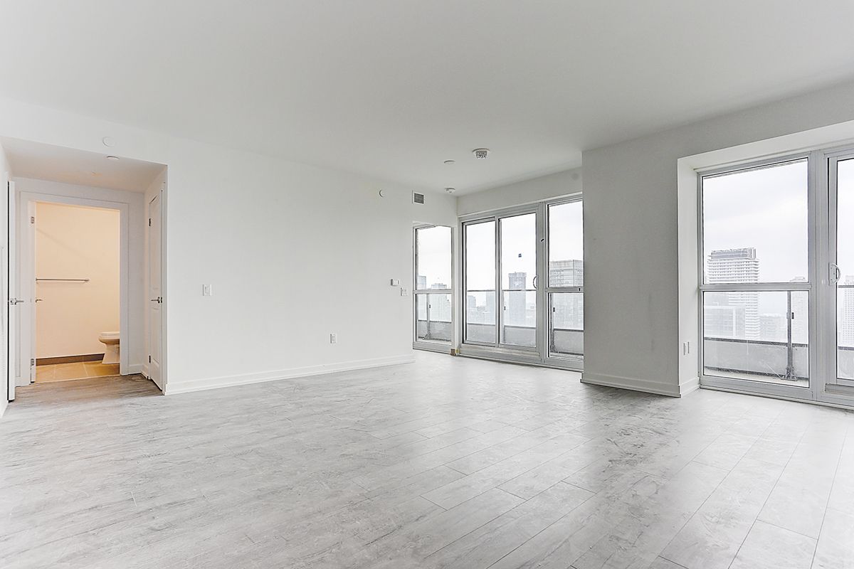 • Floor-to-ceiling windows provide stunning views of the city and Lake Ontario.