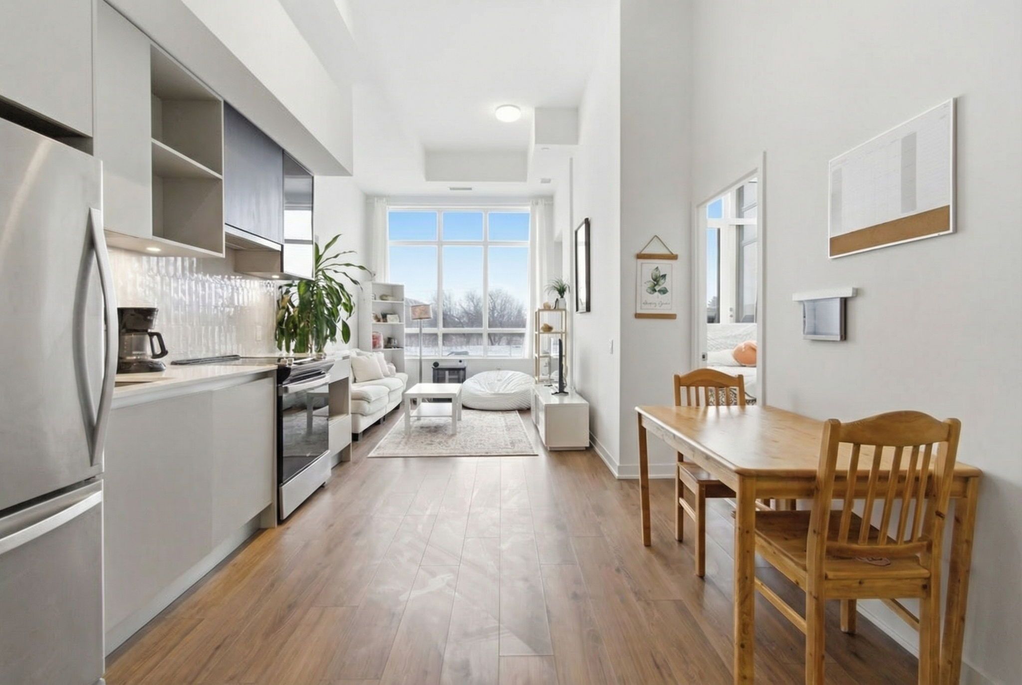 Step into a vibrant north oakville lifestyle. This beautifully designed 2-bedroom, 2-bathroom condo comes with 1 parking space and 1 locker - offering the perfect balance of style, comfort, and convenience for modern professionals, young families, or downsizers seeking a low-maintenance lifestyle. Featuring a functional open-concept layout, this south facing suite is filled with natural light and showcases elegant finishes throughout. A rare 11 feet high ceiling creates an extra open and inviting space! Step out onto the private balcony to enjoy fresh air and bbq with gas hook connection ready for use. The spacious primary bedroom includes a private ensuite and ample closet space, while the second bedroom offers flexibility as a guest room, home office, or growing family space. A second full bathroom adds everyday convenience and privacy. Ideally located close to top-rated schools, parks, shopping, restaurants, and everyday amenities. Quick access to major highways, oakville trafalgar memorial hospital, public transit and go station(s) makes commuting to toronto, and surrounding areas effortless.