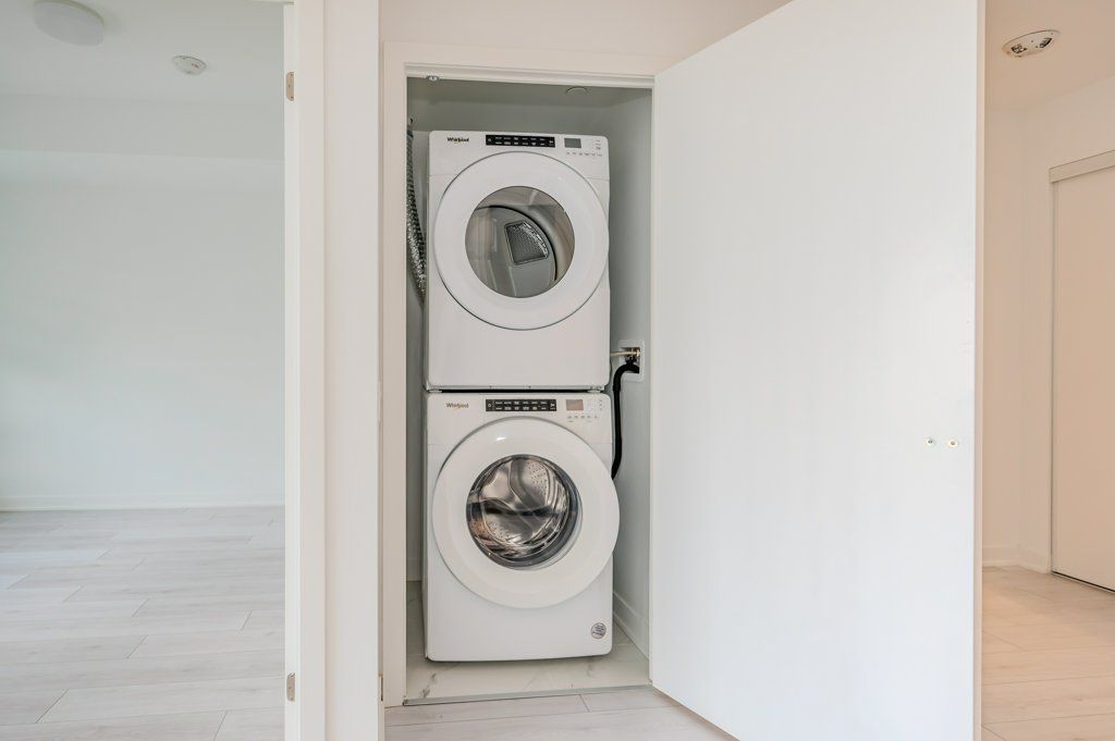 Wonderful urban rental opportunity at distrikt trailside 2. 0! Stylish one-bedroom, one bathroom rental in a vibrant master-planned community! Surrounded by shopping and dining, parks, and scenic nature trails, this prime location also offers exceptional commuter convenience with easy access to public transit and major highways. Inside, a thoughtfully designed open-concept layout seamlessly connects the kitchen and living area. The modern kitchen showcases quartz countertops, designer backsplash, soft-close cabinetry, and stainless steel appliances. The spacious living room extends to a private north-facing balcony through sliding doors, creating the ideal spot to enjoy your morning coffee or unwind in the evening. The bedroom offers a walk-in closet, while the spa-inspired four-piece bathroom boasts a designer vanity with quartz countertop. Throughout the unit, you'll find 9' ceilings, durable laminate flooring, and practical details such as privacy locks on both the bedroom and bathroom doors. Additional highlights include in-suite laundry with a full-sized whirlpool washer and dryer, individually controlled heating and cooling for year-round comfort, secure underground parking, and a dedicated storage locker. Residents enjoy access to premium amenities, including a grand lobby with 24-hour concierge service, a luxury resident lounge, party/meeting room, fully equipped fitness centre, and a yoga/pilates studio. Additional conveniences include bike storage, visitor parking, and an outdoor terrace complete with bbqs and comfortable seating areas. Rent includes high-speed internet, water, building insurance, common elements, and parking - offering exceptional value. Experience modern living in a dynamic, connected community at distrikt trailside 2. 0.