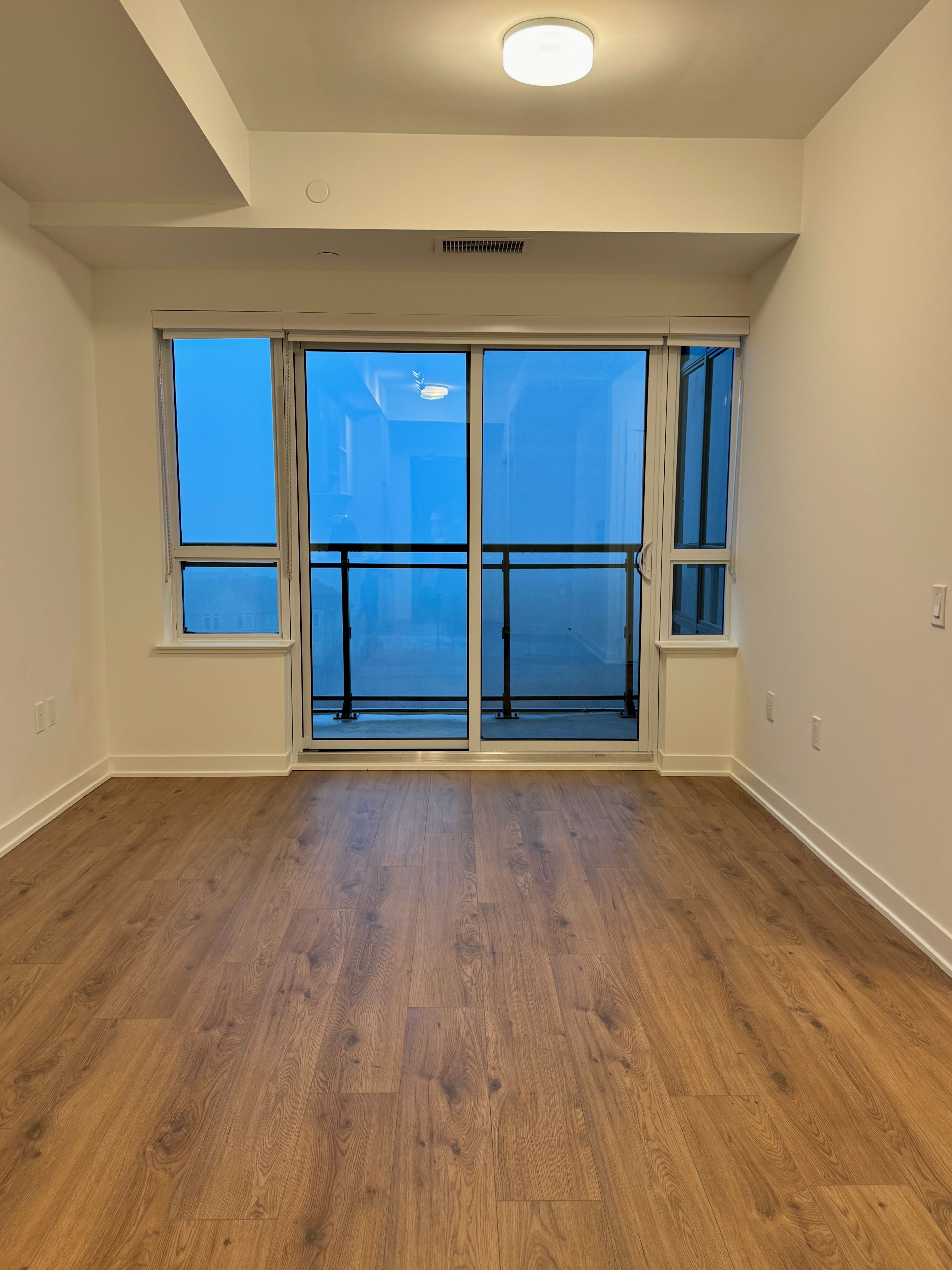 • Open concept living with hardwood flooring and floor-to-ceiling windows.
