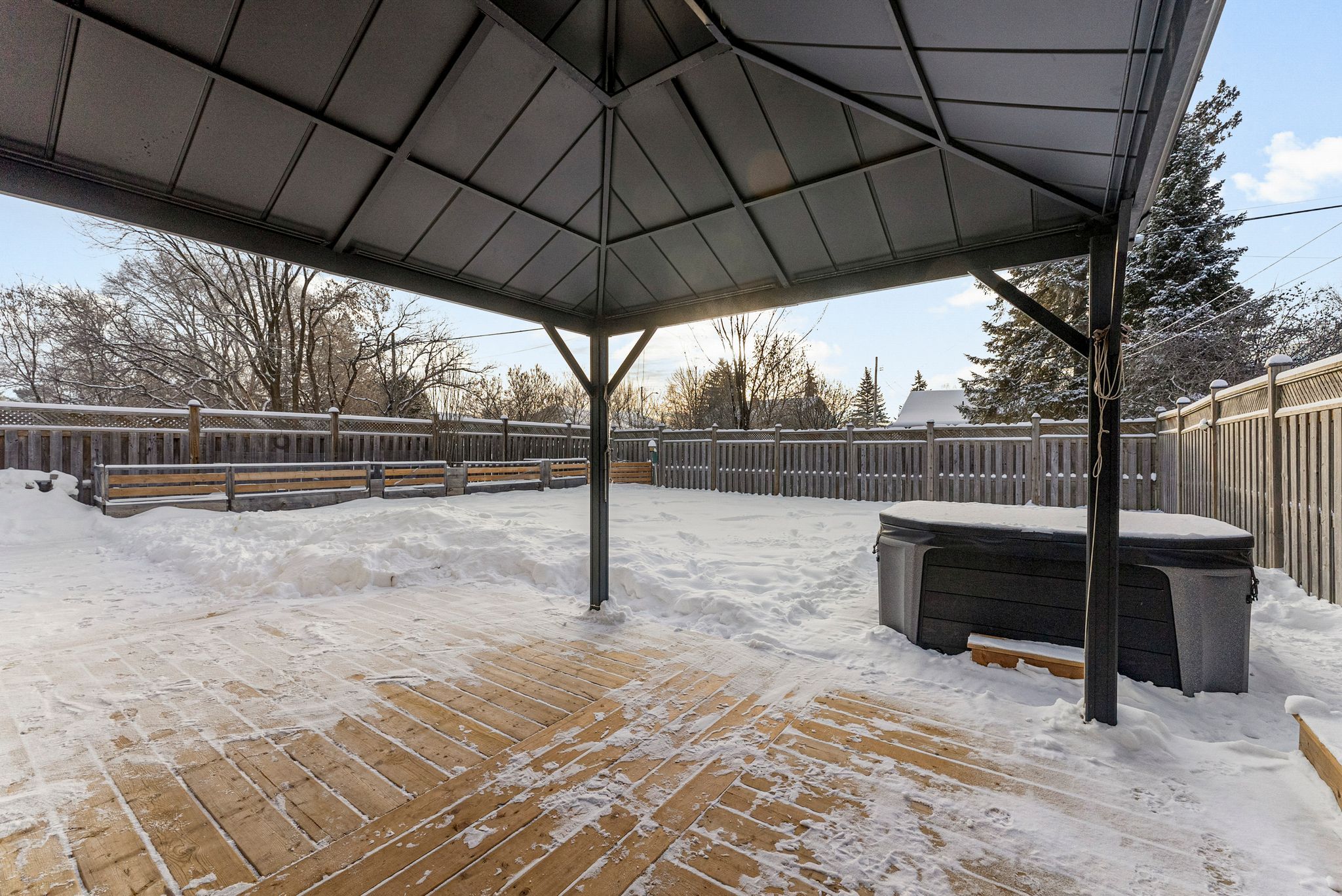 • New deck with gazebo and hot tub, perfect for year-round entertaining.