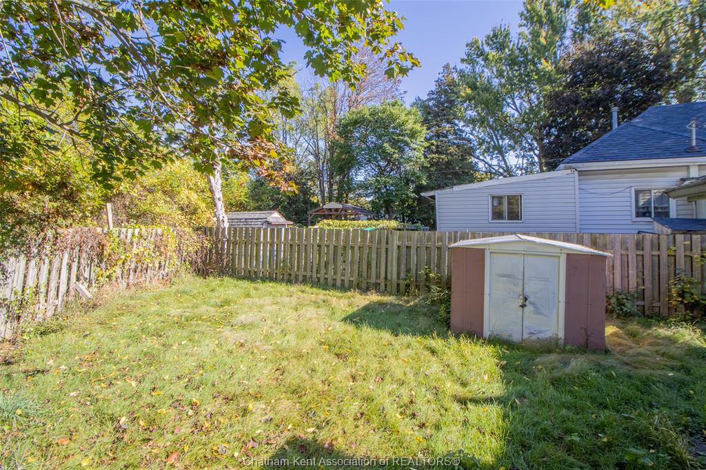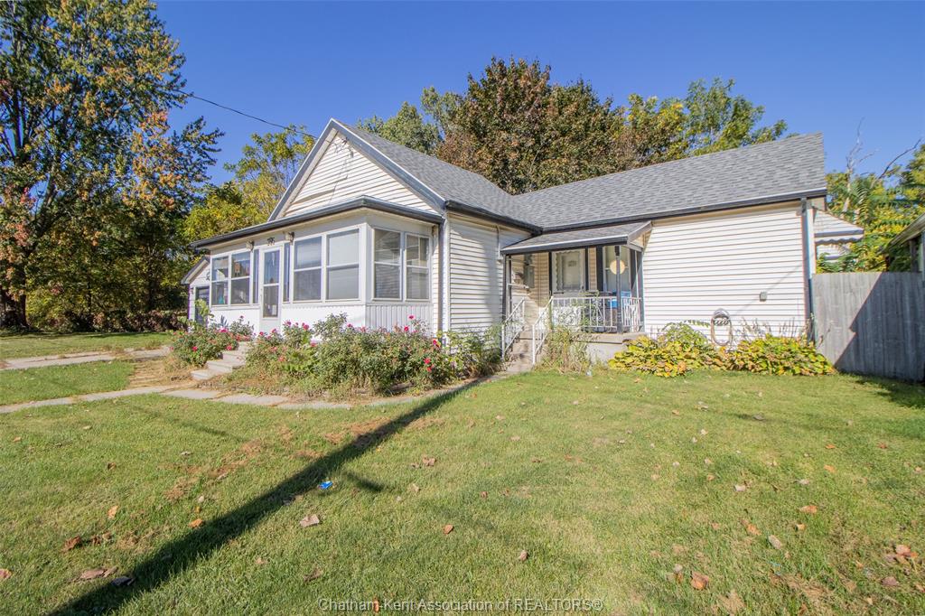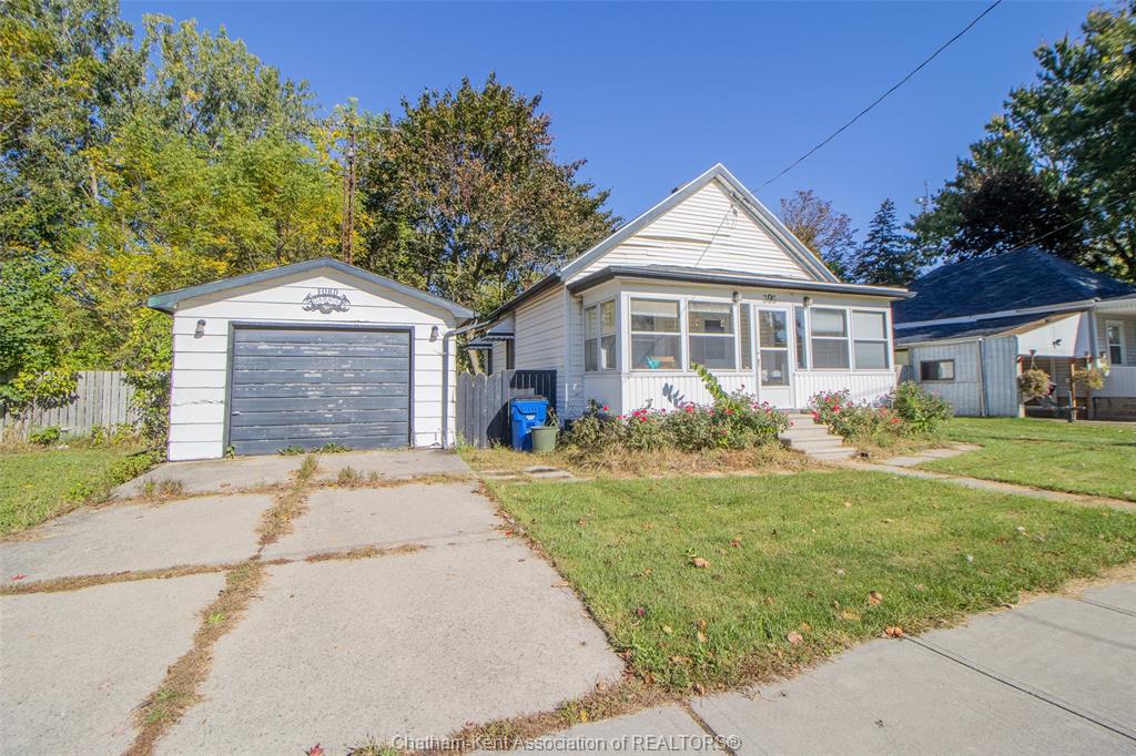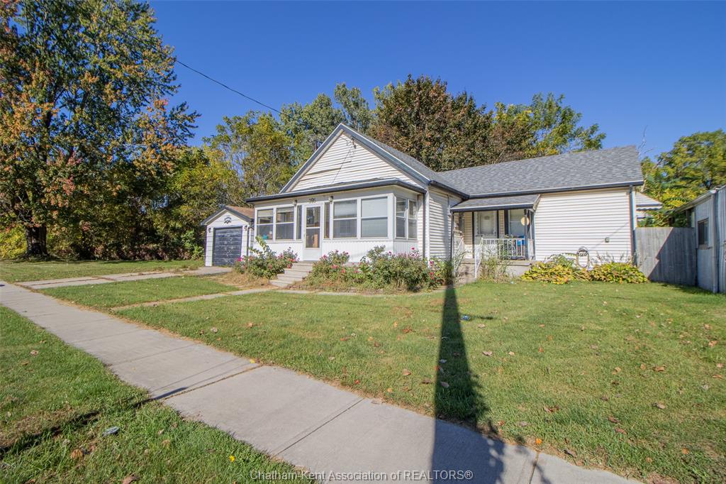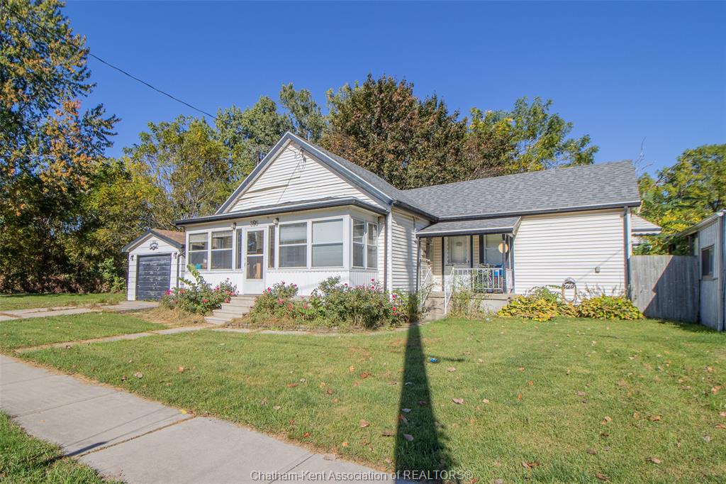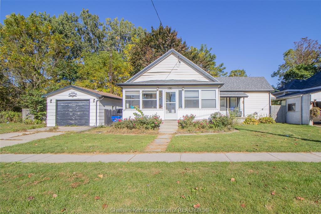 Welcome to 395 park street a charming and cozy bungalow full of character, located in a mature chatham neighbourhood. Step inside to an inviting open-concept layout that feels bright and spacious, with a comfortable flow from the living area to the kitchen and dining space. The kitchen, updated about three years ago, features an island that’s perfect for cooking, gathering, or enjoying your morning coffee. The bedroom offers a peaceful retreat, while the large bathroom includes a relaxing soaker tub and a cleverly tucked-away laundry area for added convenience. Enjoy the sunshine from the cheerful three-season front porch, or unwind on the large back deck overlooking a generous yard — great for gardening or spending time outdoors. The roof was replaced approximately seven years ago, and the furnace and a/c are about nine years old. The hot water tank is a rental. Windows have not been updated. Being sold in as is condition, this home offers warmth, functionality, and plenty of potential to make it your own. Conveniently close to parks, schools, shopping, and local amenities. Completing the property is a detached garage that offers valuable storage and workspace options, ideal for parking or personal projects. 72 hours irrevocable on all offers.