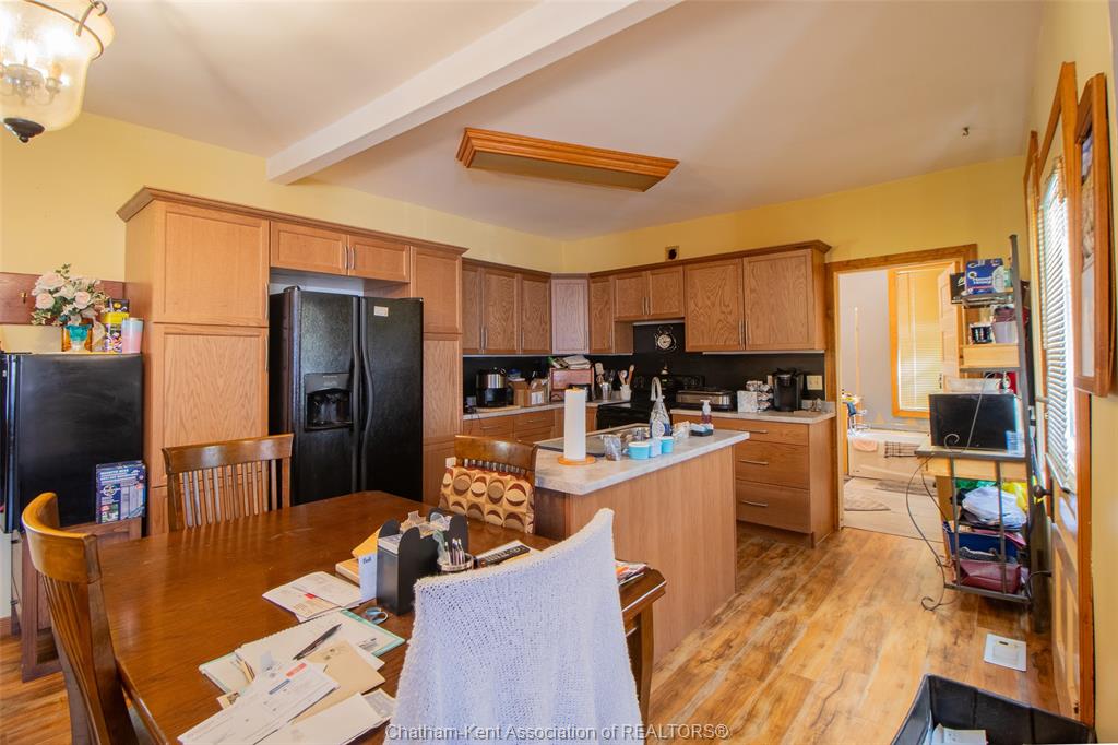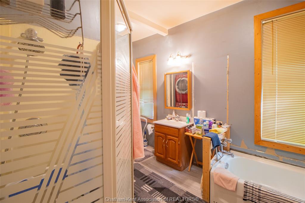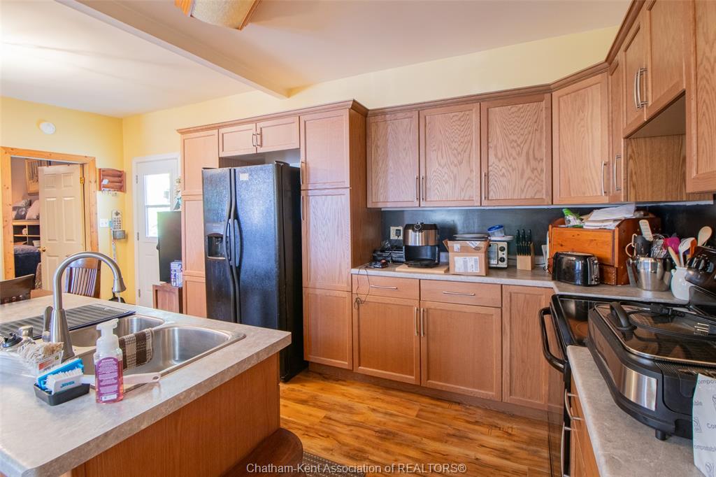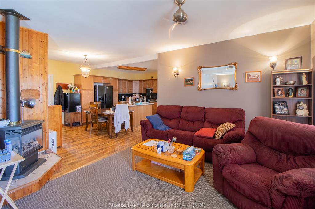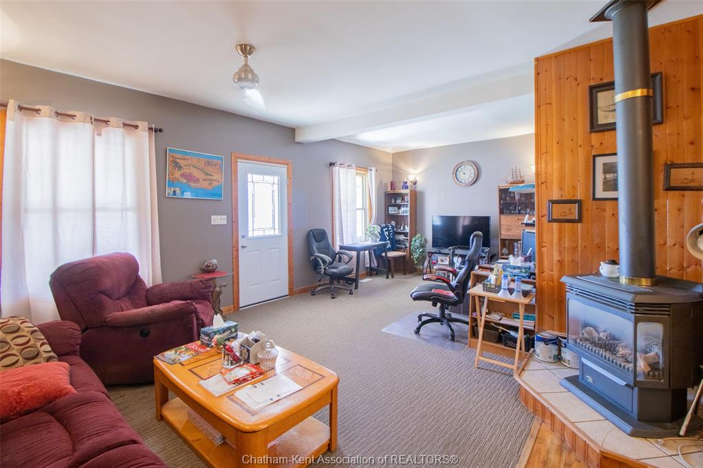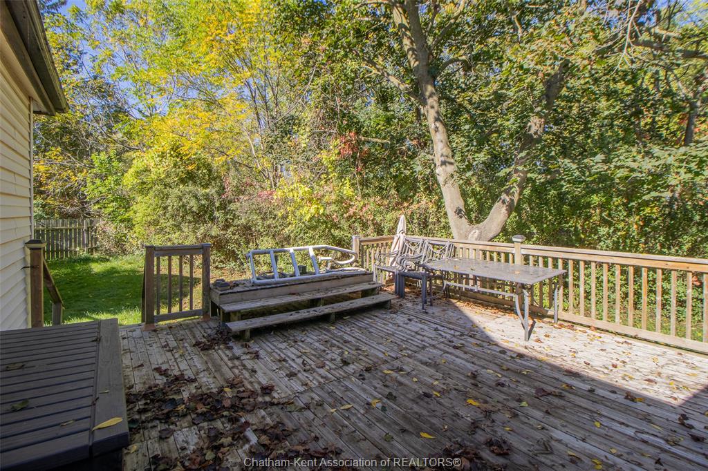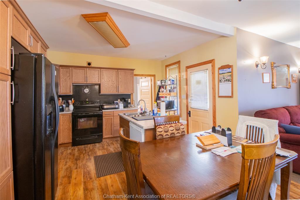 Welcome to 395 park street a charming and cozy bungalow full of character, located in a mature chatham neighbourhood. Step inside to an inviting open-concept layout that feels bright and spacious, with a comfortable flow from the living area to the kitchen and dining space. The kitchen, updated about three years ago, features an island that’s perfect for cooking, gathering, or enjoying your morning coffee. The bedroom offers a peaceful retreat, while the large bathroom includes a relaxing soaker tub and a cleverly tucked-away laundry area for added convenience. Enjoy the sunshine from the cheerful three-season front porch, or unwind on the large back deck overlooking a generous yard — great for gardening or spending time outdoors. The roof was replaced approximately seven years ago, and the furnace and a/c are about nine years old. The hot water tank is a rental. Windows have not been updated. Being sold in as is condition, this home offers warmth, functionality, and plenty of potential to make it your own. Conveniently close to parks, schools, shopping, and local amenities. Completing the property is a detached garage that offers valuable storage and workspace options, ideal for parking or personal projects. 72 hours irrevocable on all offers.